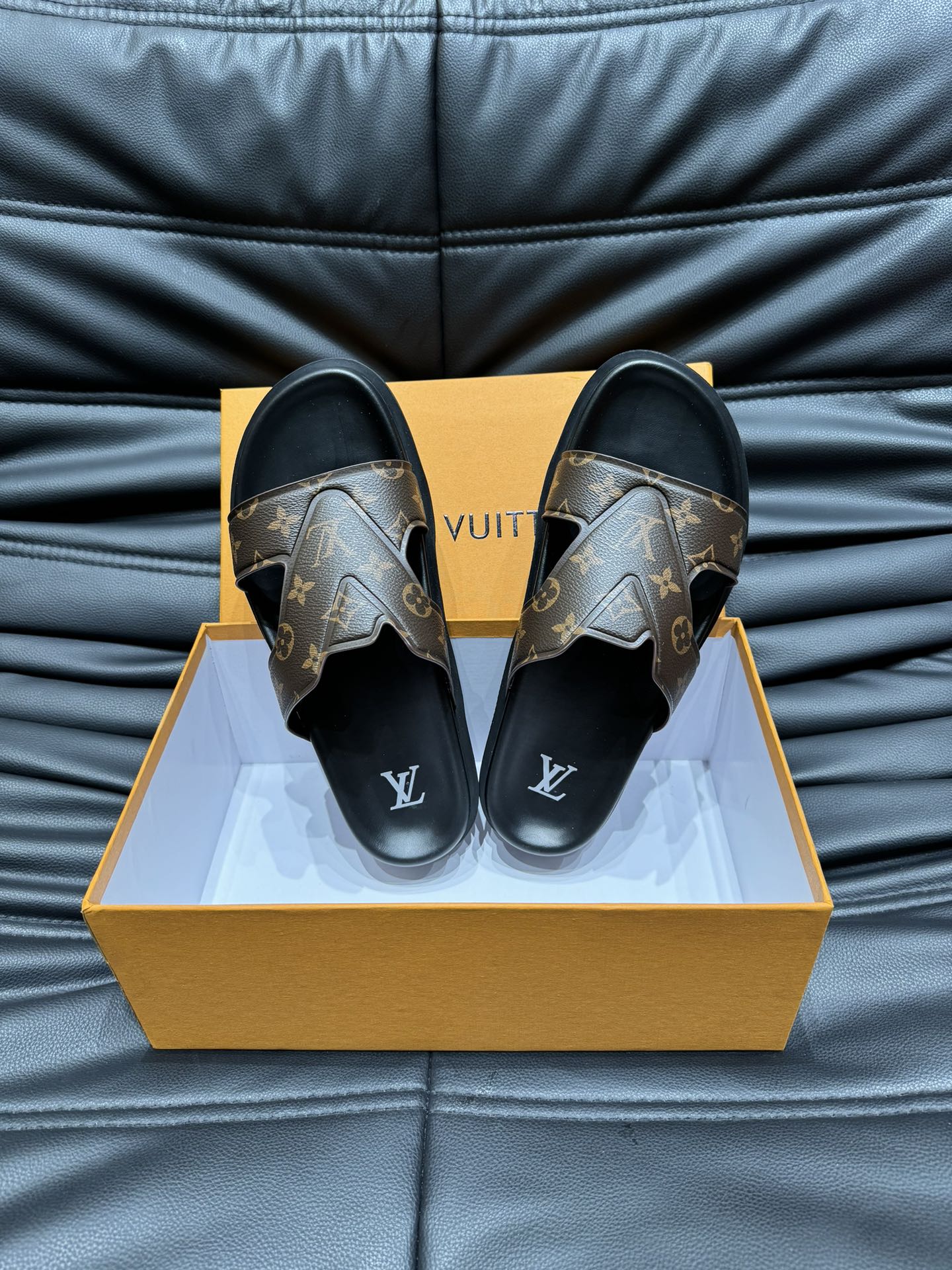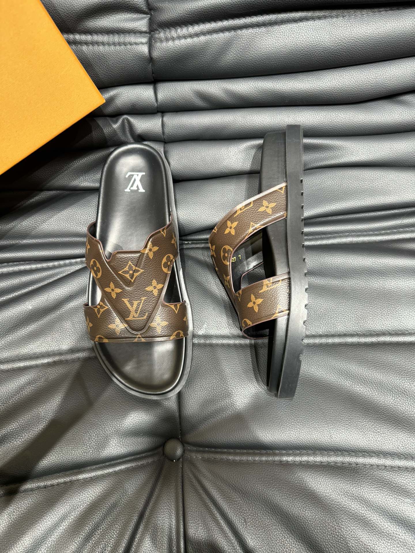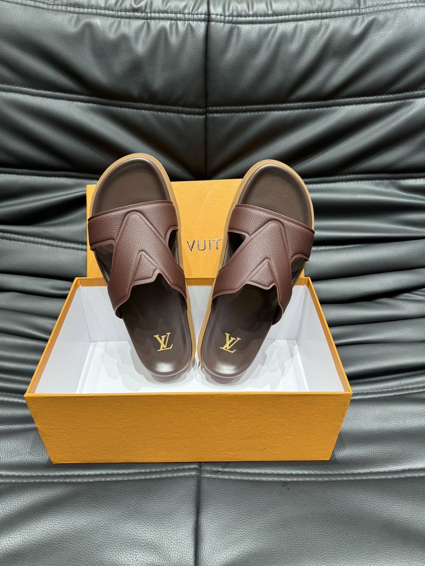 LV THONG SLIPPER IN CHOCOLATE BROWN MONOGRAM CALFSKIN