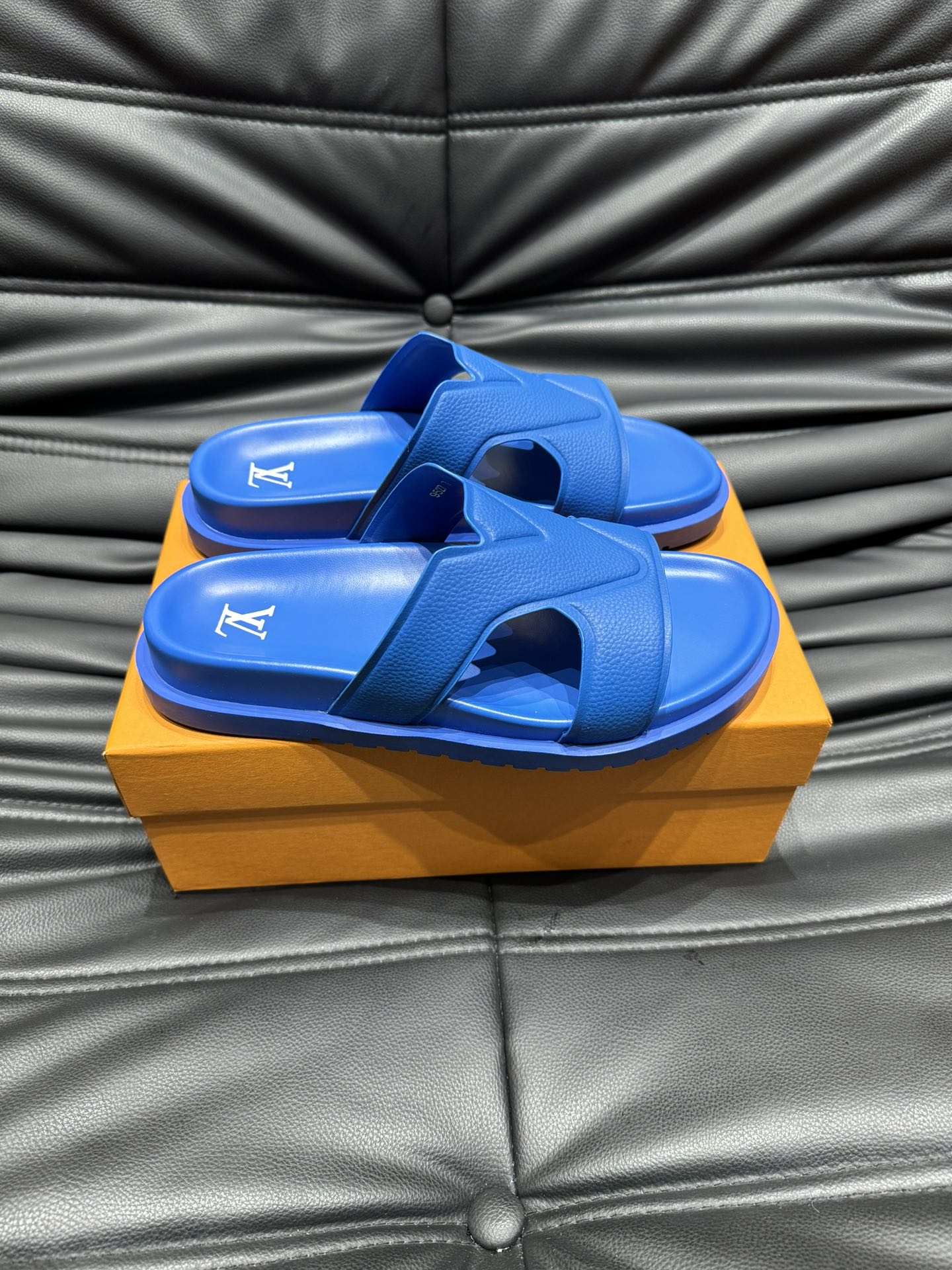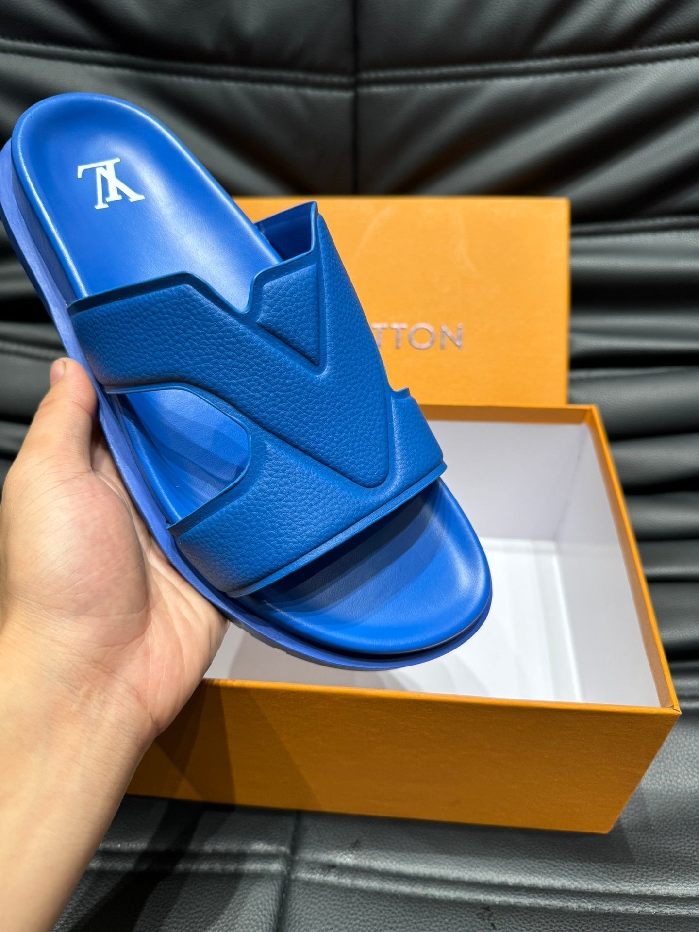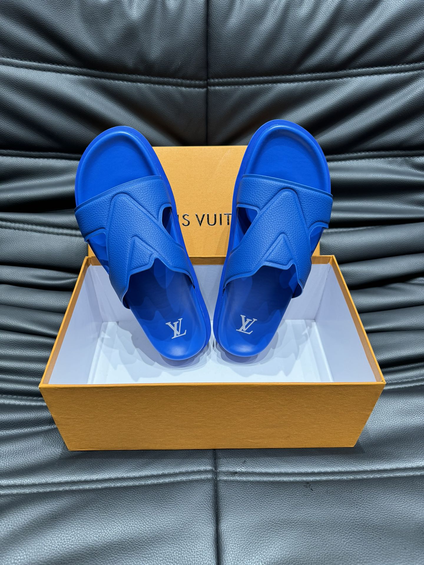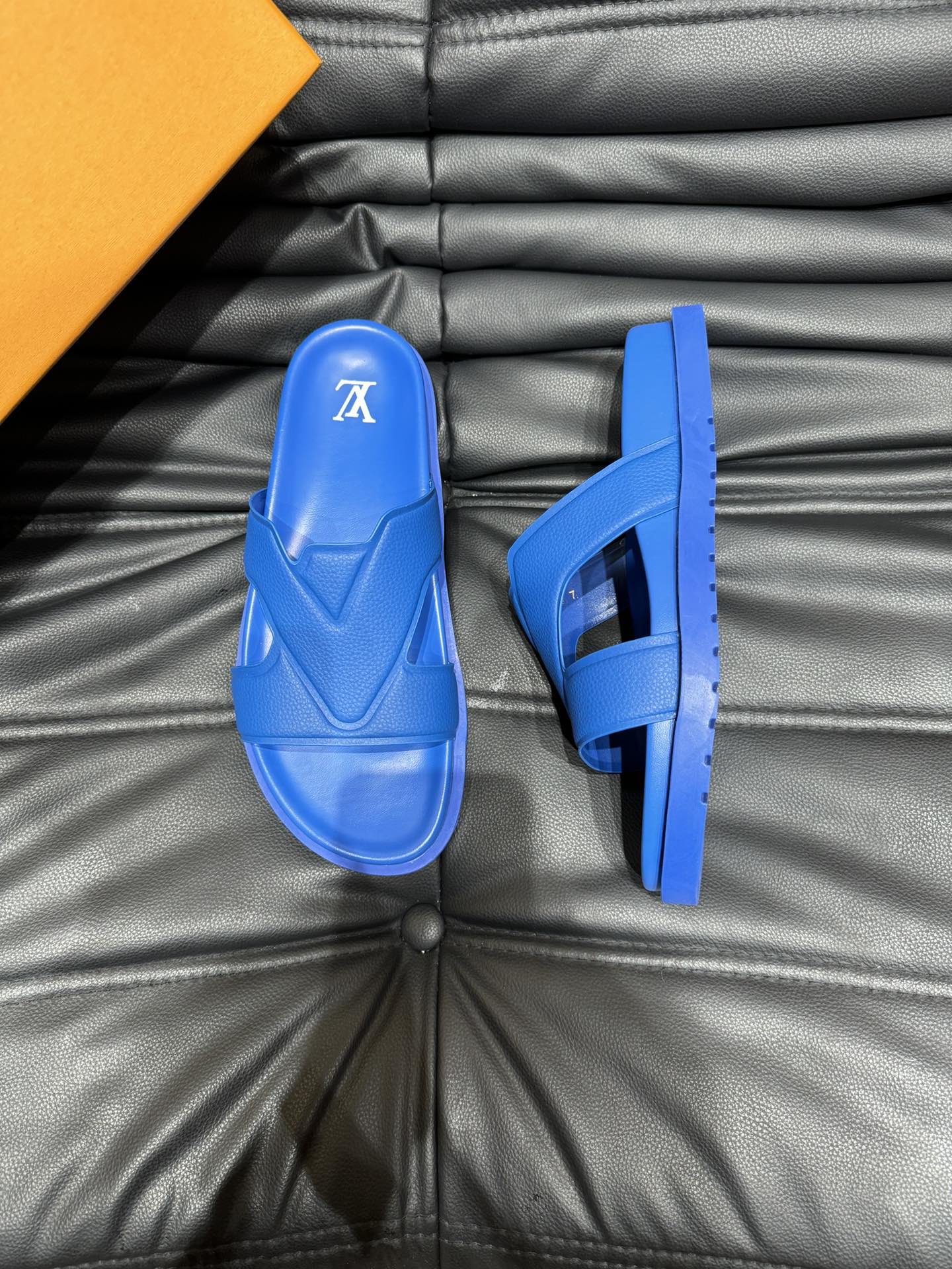 LV SLIPPERS IN COBALT BLUE MONOGRAM CALFSKIN