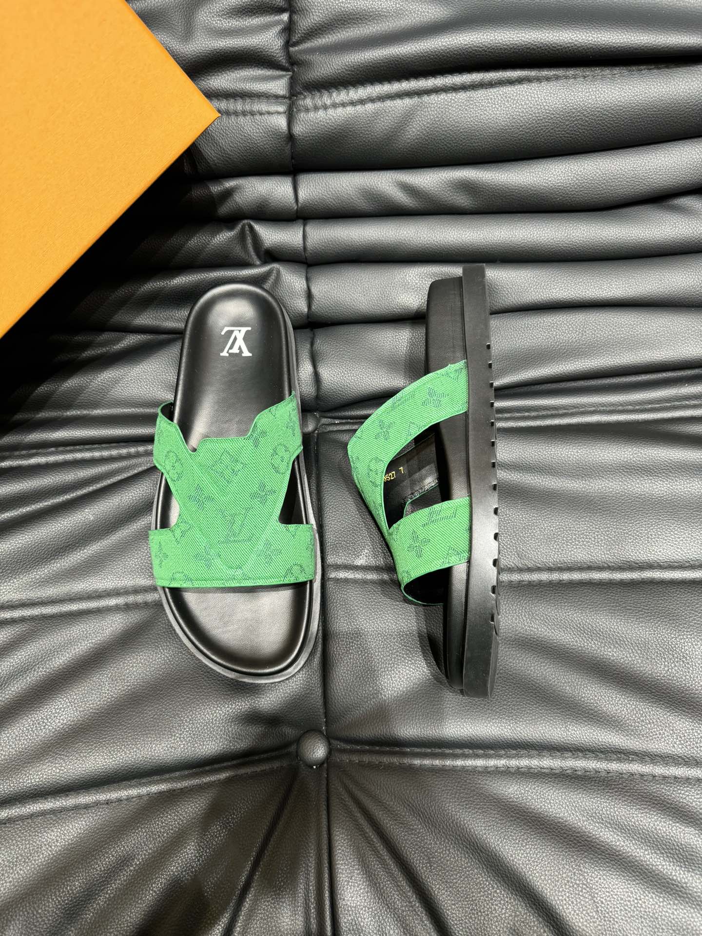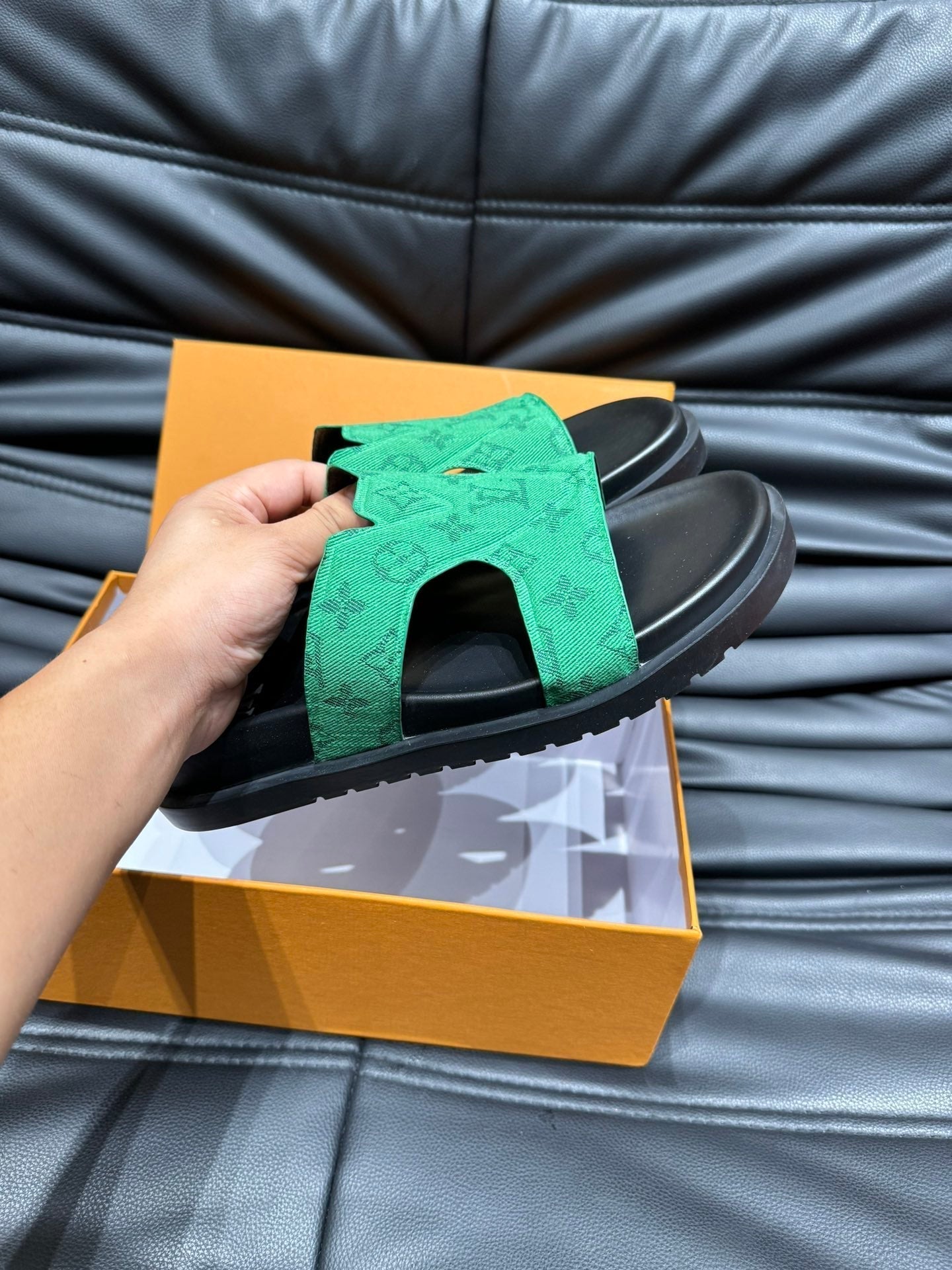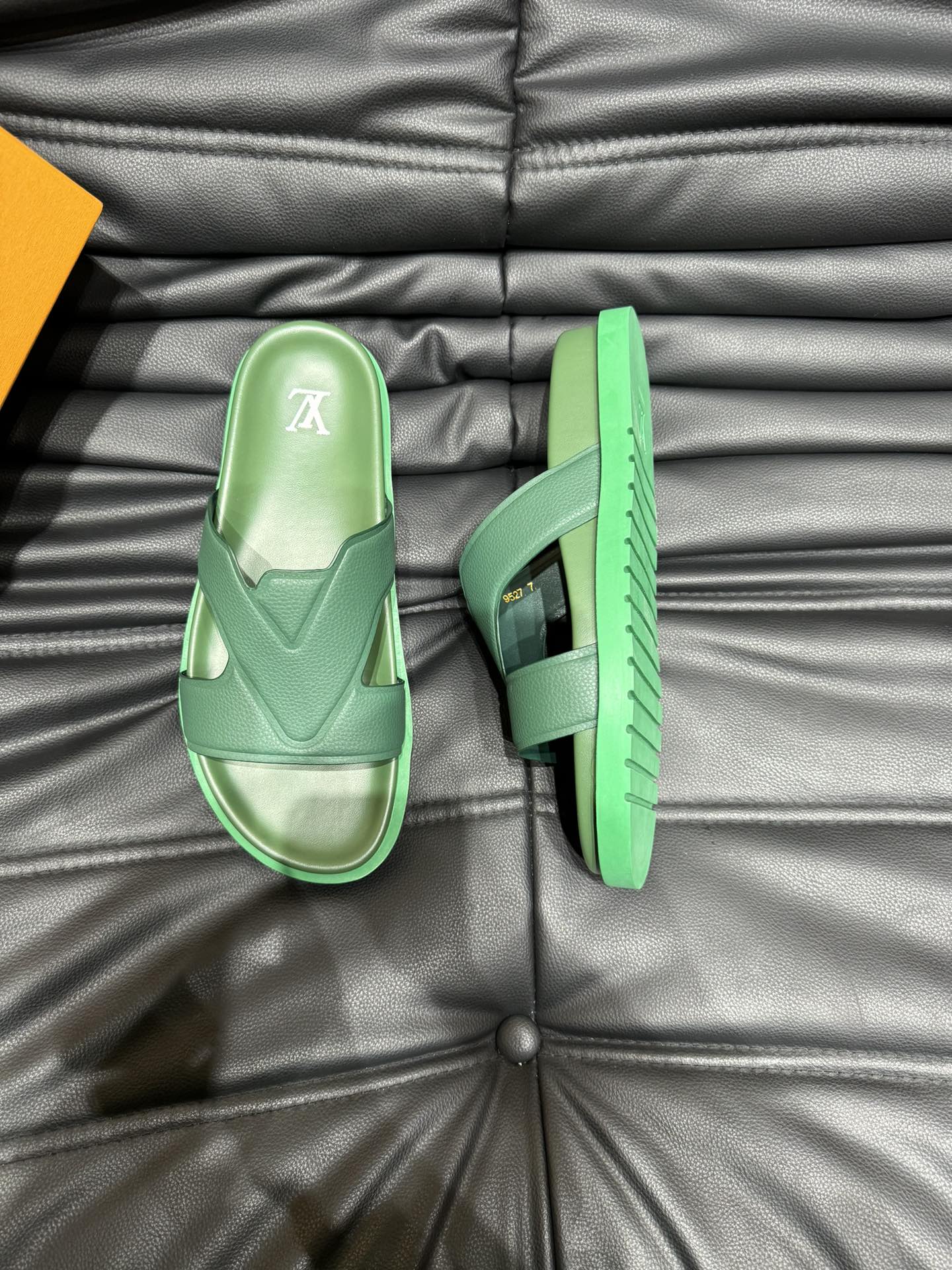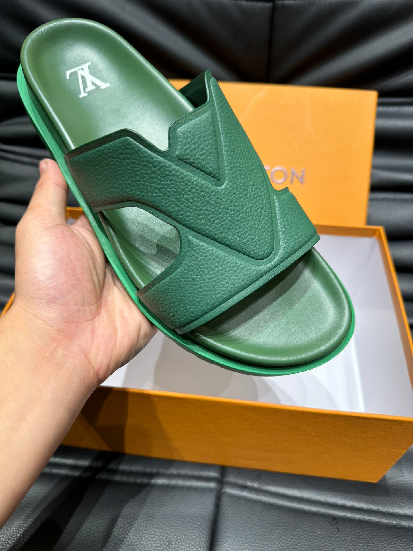 LV THONG SLIPPER IN SHAMROCK GREEN MONOGRAM CALFSKIN