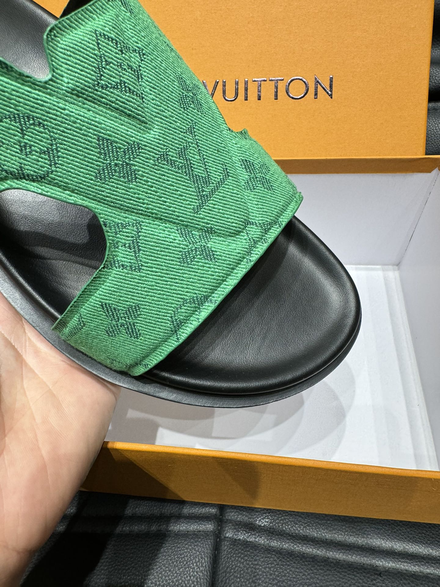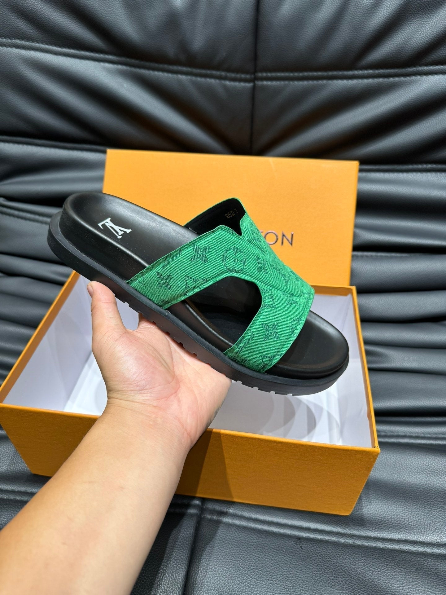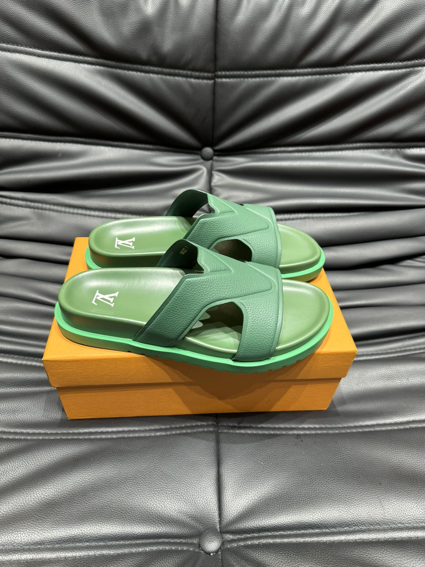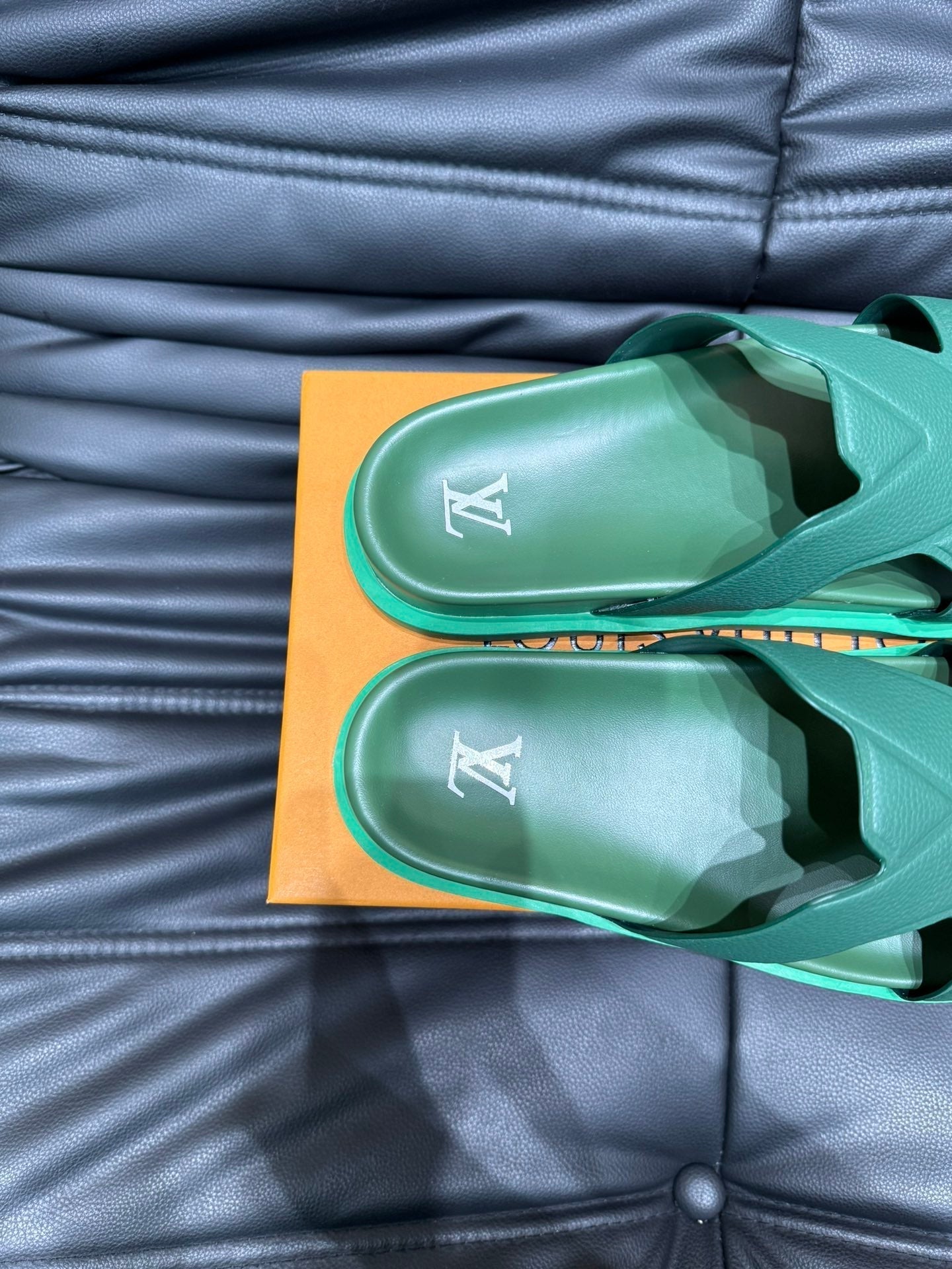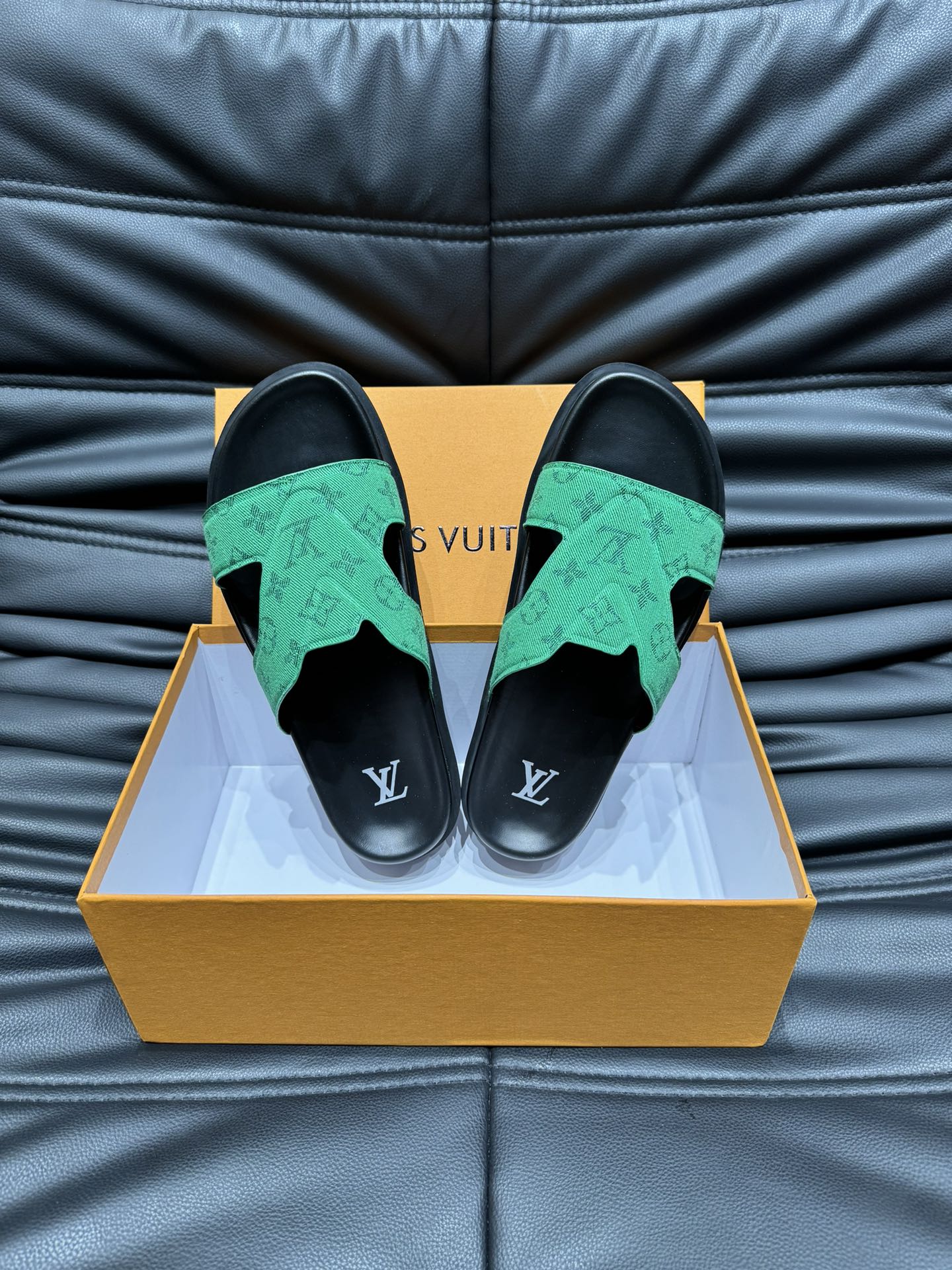 LV THONG SLIPPER IN SHAMROCK GREEN MONOGRAM CALFSKIN