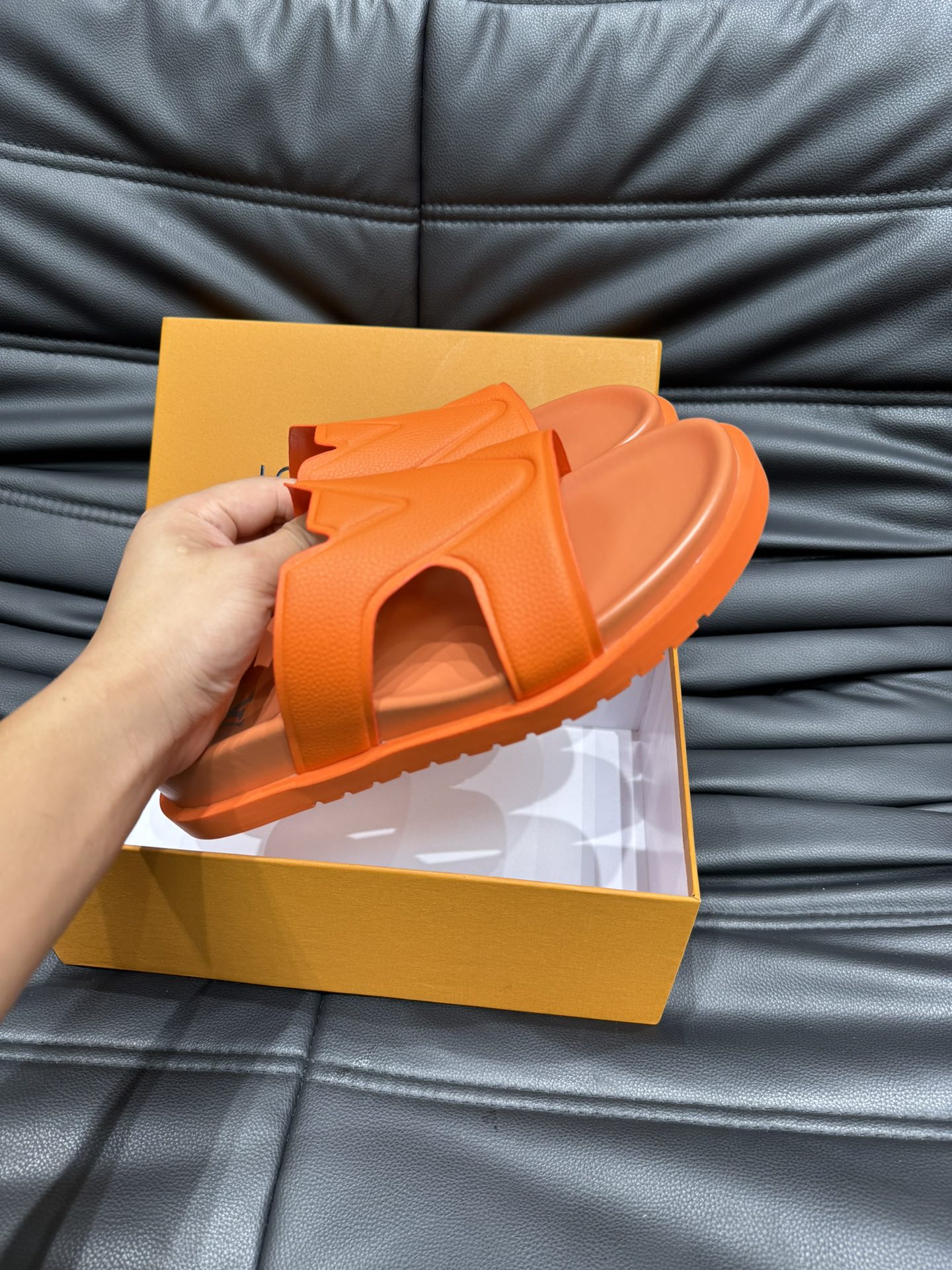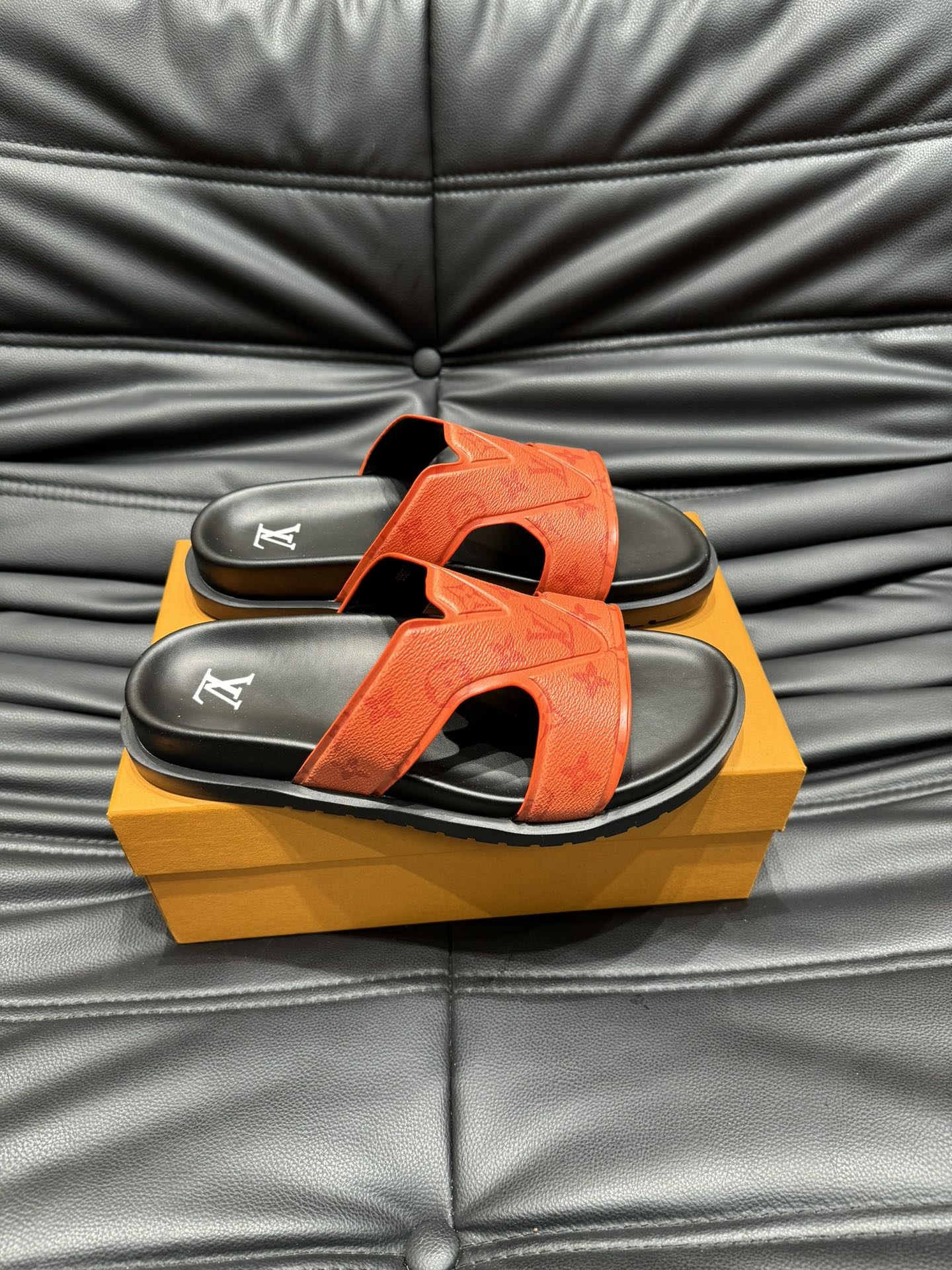 LV SLIPPERS IN CARROT ORANGE MONOGRAM CALFSKIN