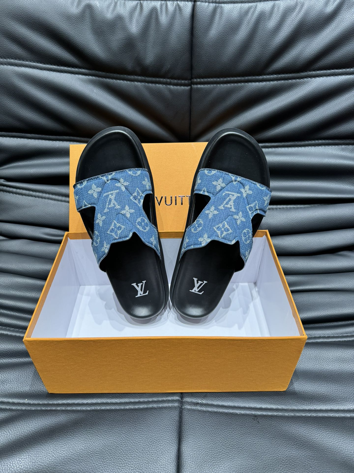 LV THONG SLIPPER IN NAVY BLUE MONOGRAM CALFSKIN