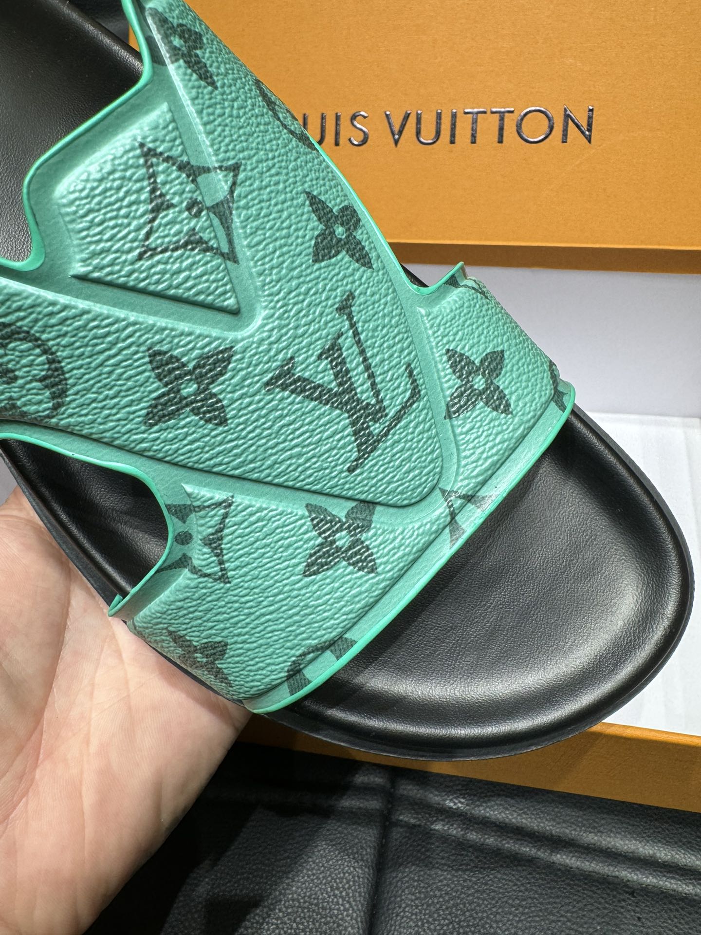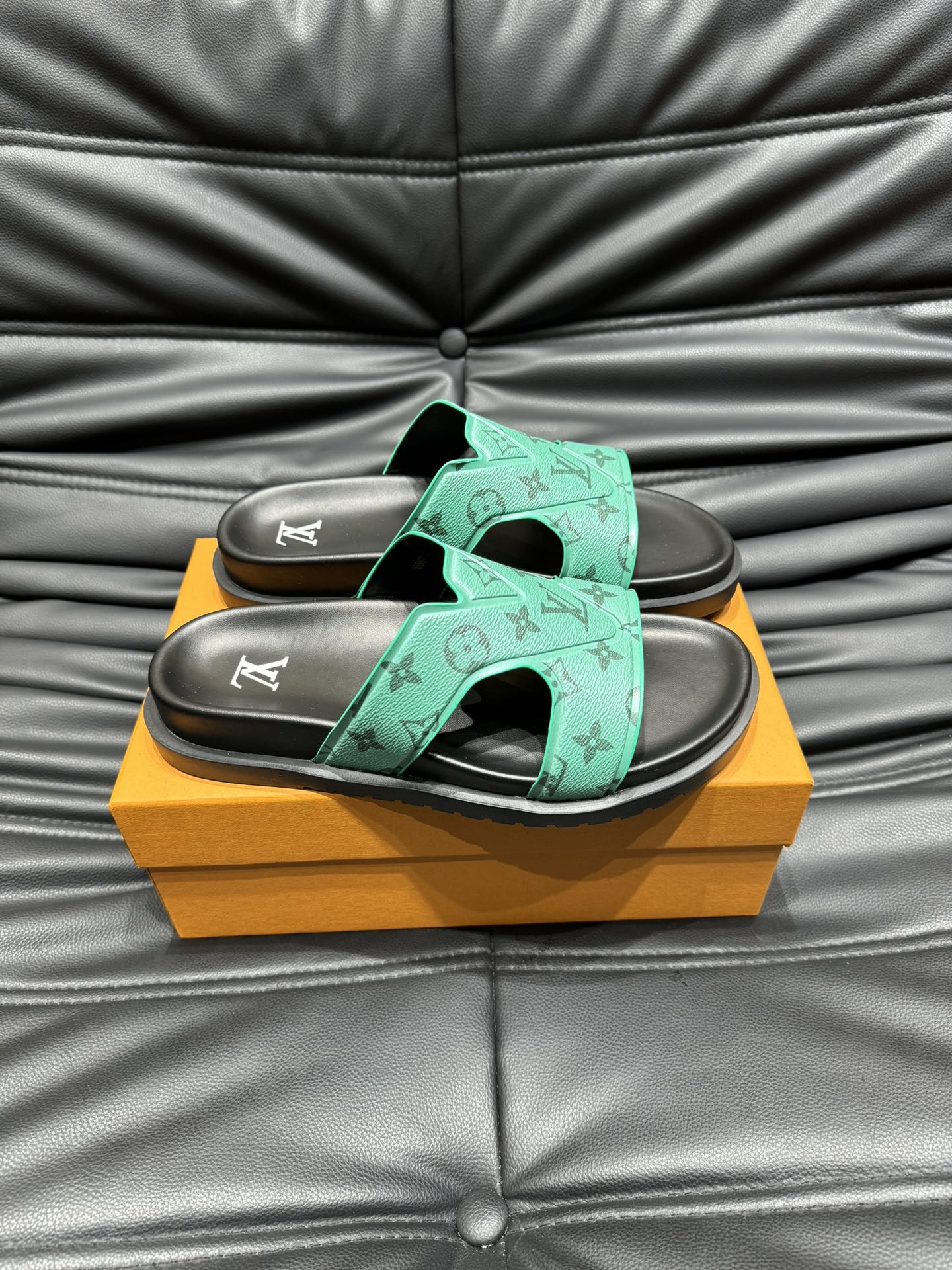 LV OASIS MULE IN SEA GREEN MONOGRAM CALFSKIN