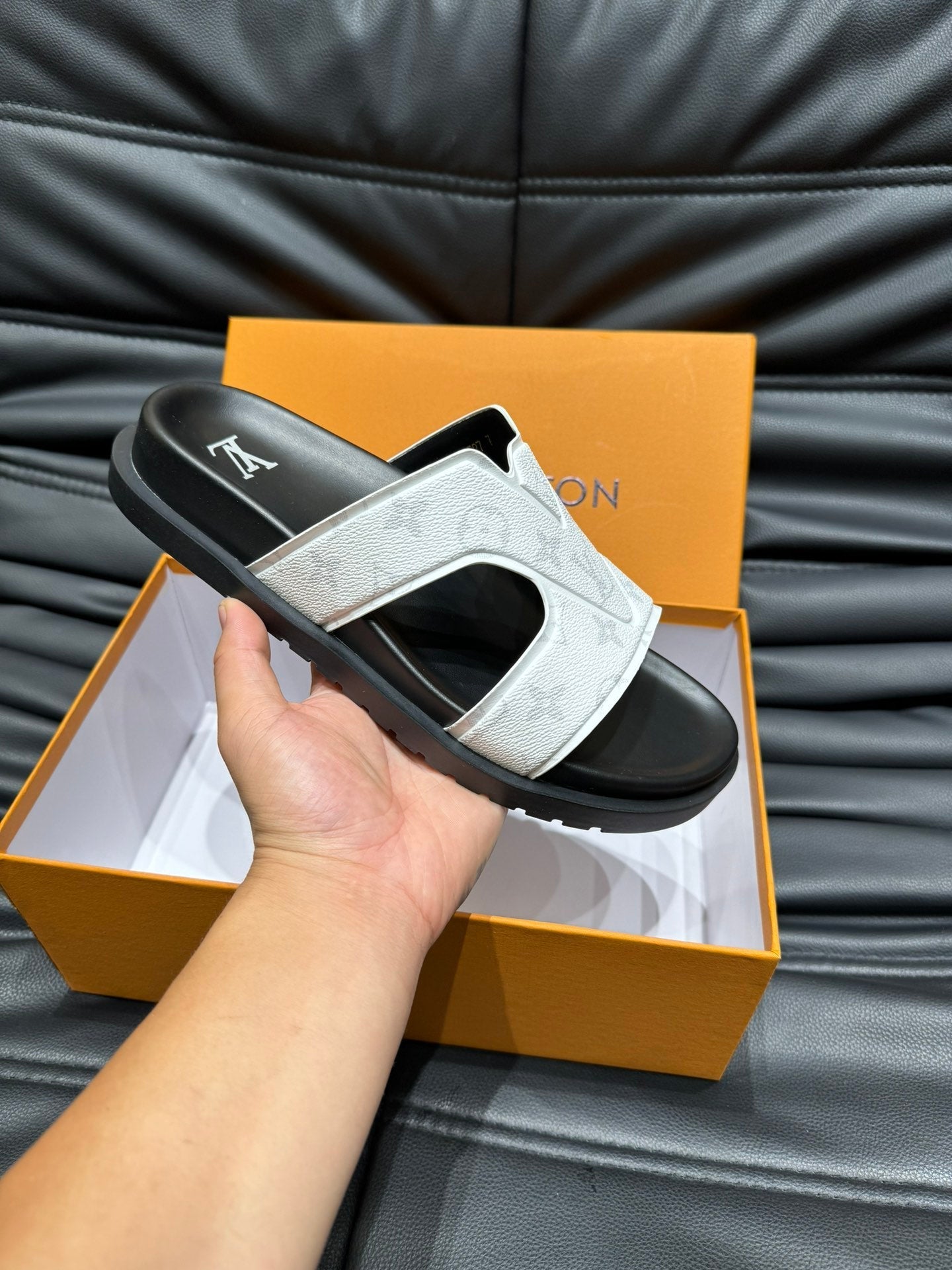 LV OASIS MULE IN WHITE MONOGRAM CALFSKIN