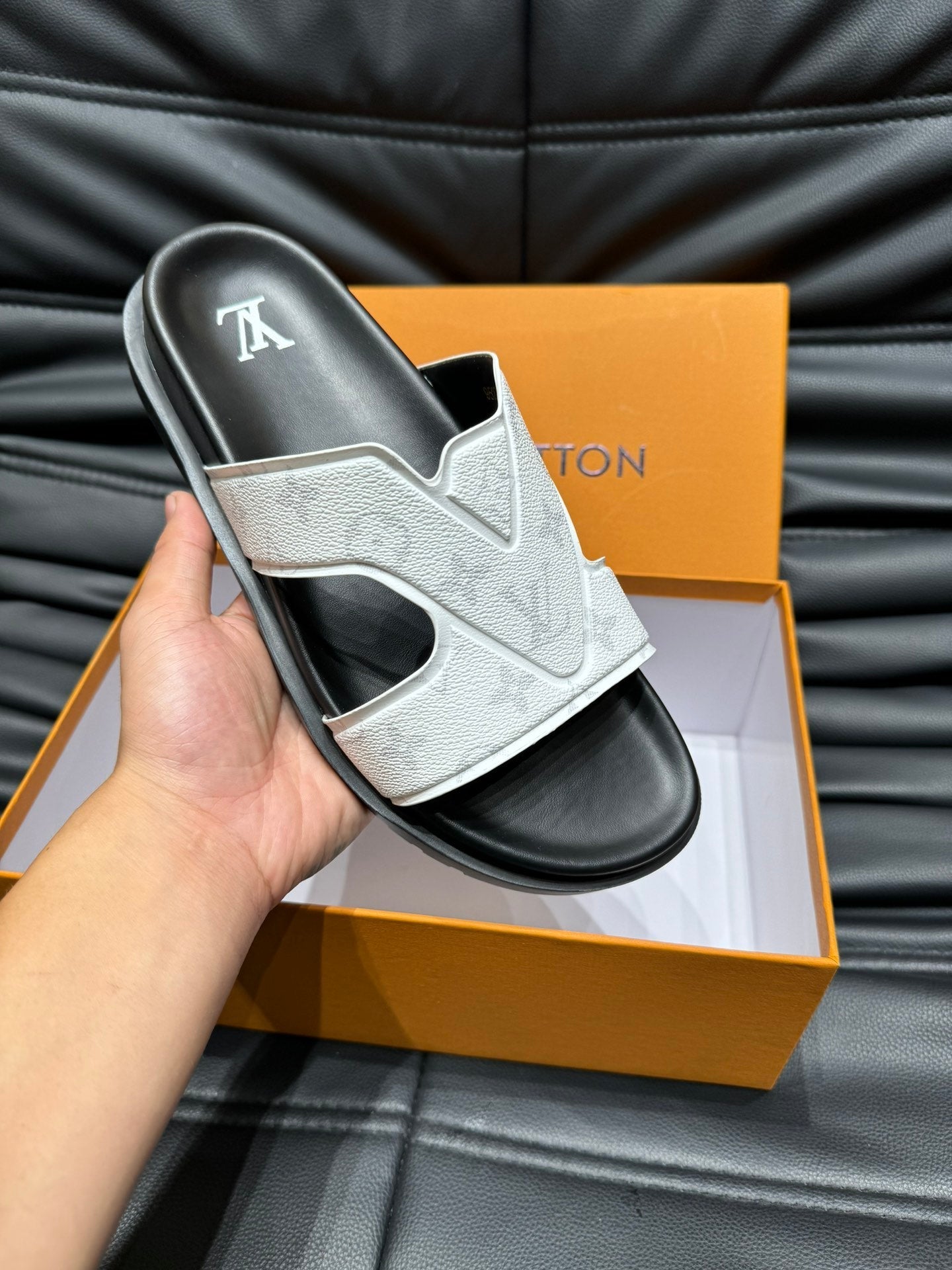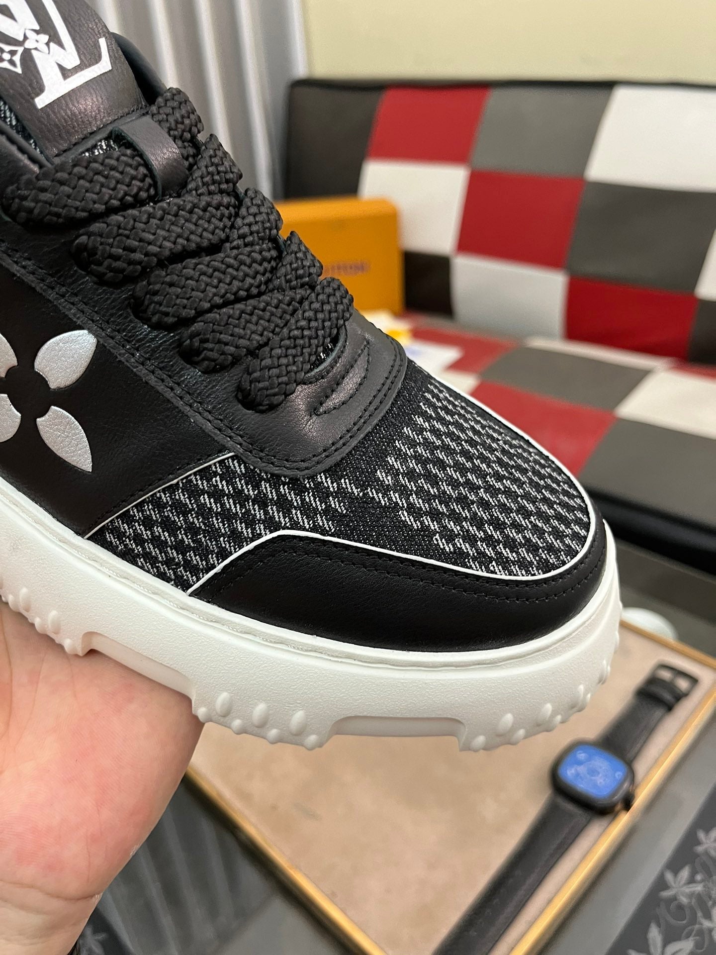 LV SNEAKER WHITE MIX BLACK EMBOSSED CALFSKIN