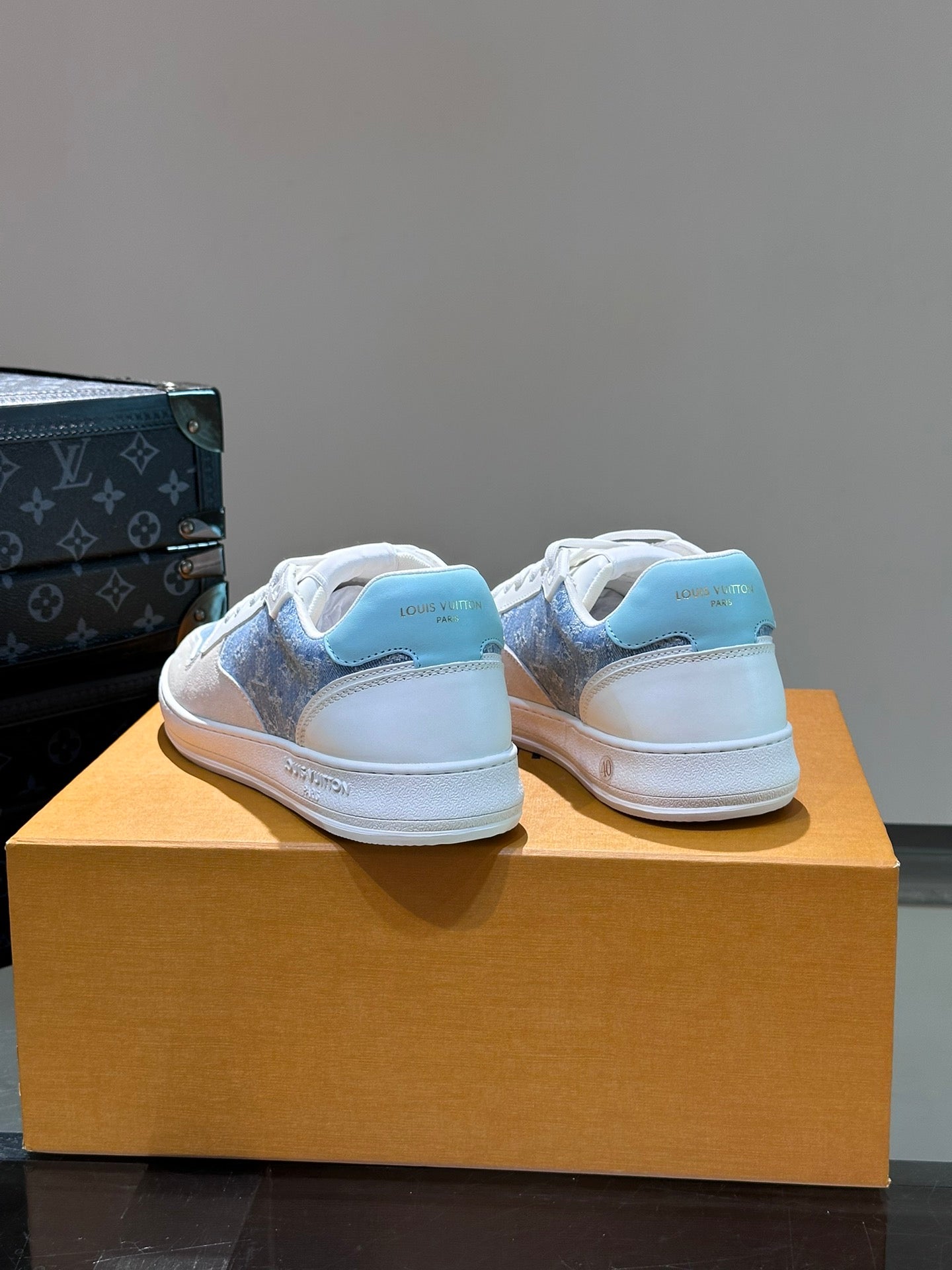 LV SNEAKER WHITE SUEDE CALFSKIN MIX BLUE DENIM