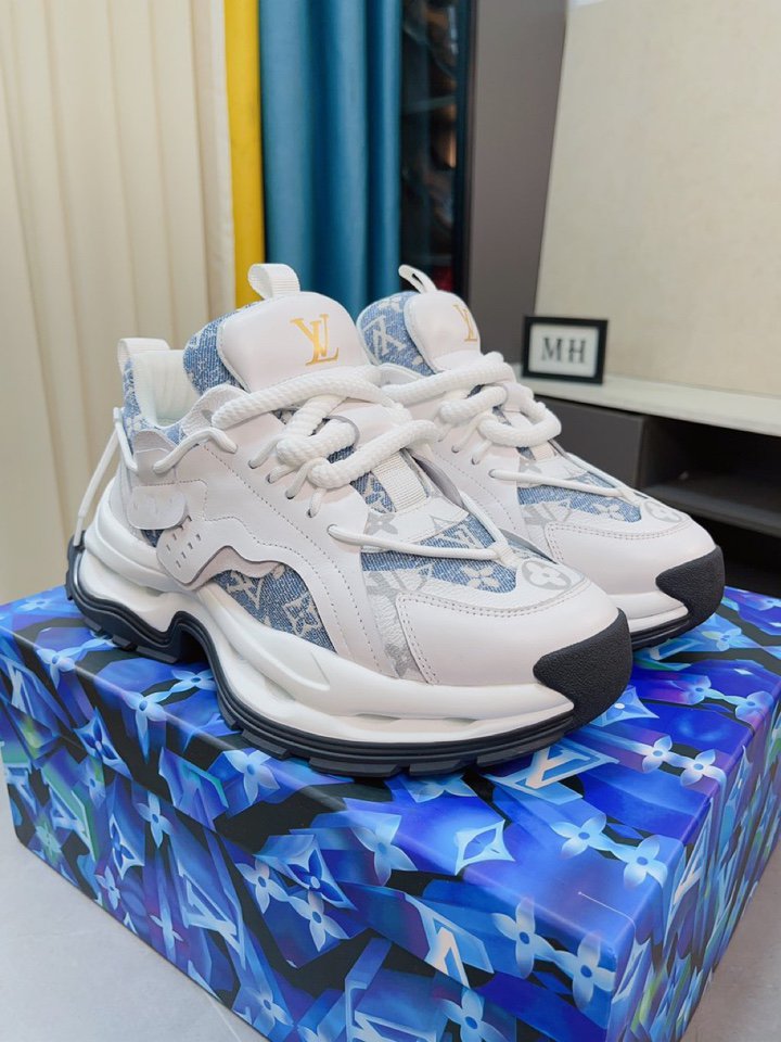 LV VELCRO SLIPPERS IN LIGHT BLUE MONOGRAM DENIM