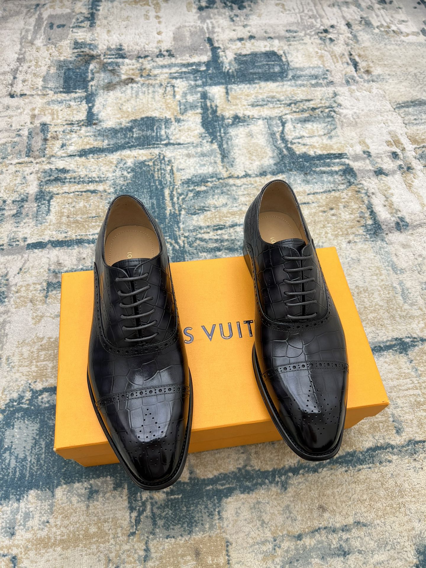 LV LACE-UP SHOES IN BROWN CROCODILE CALFSKIN
