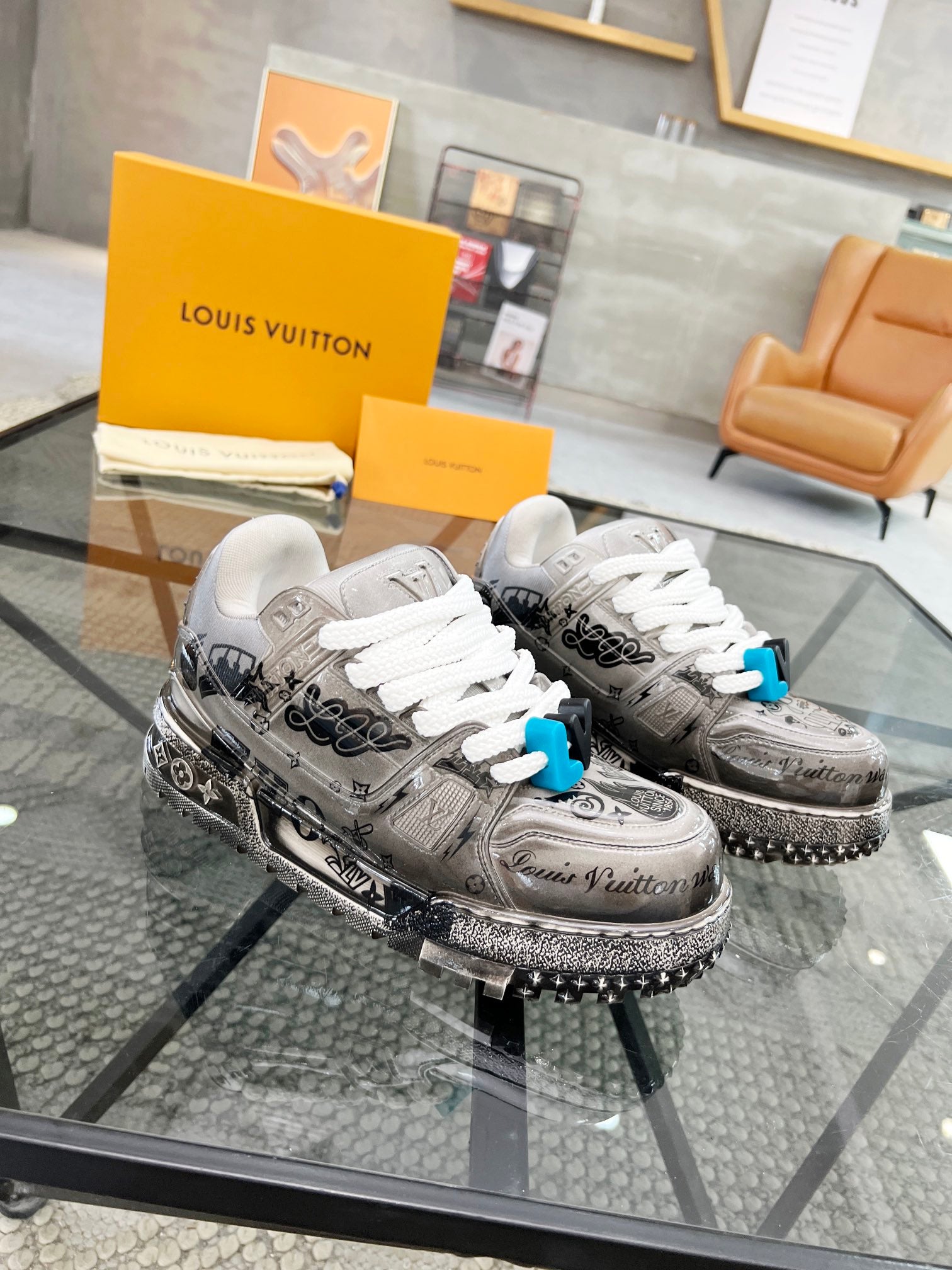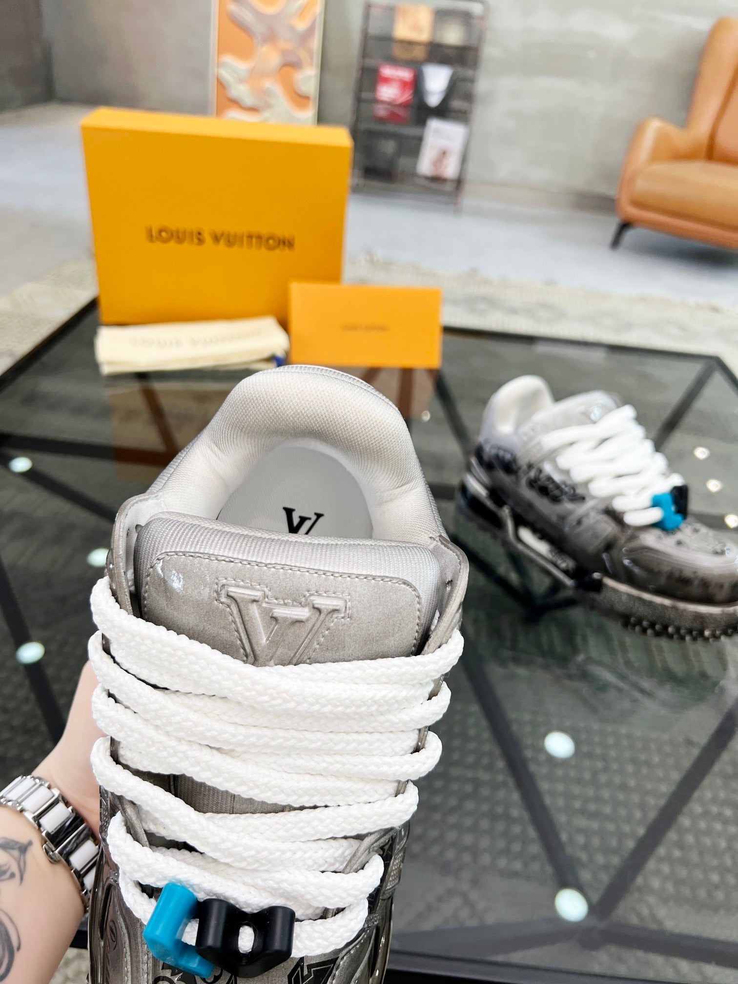 LV TRAINER SHOES IN WHITE MIX GREY EMBOSSED LAMBSKIN