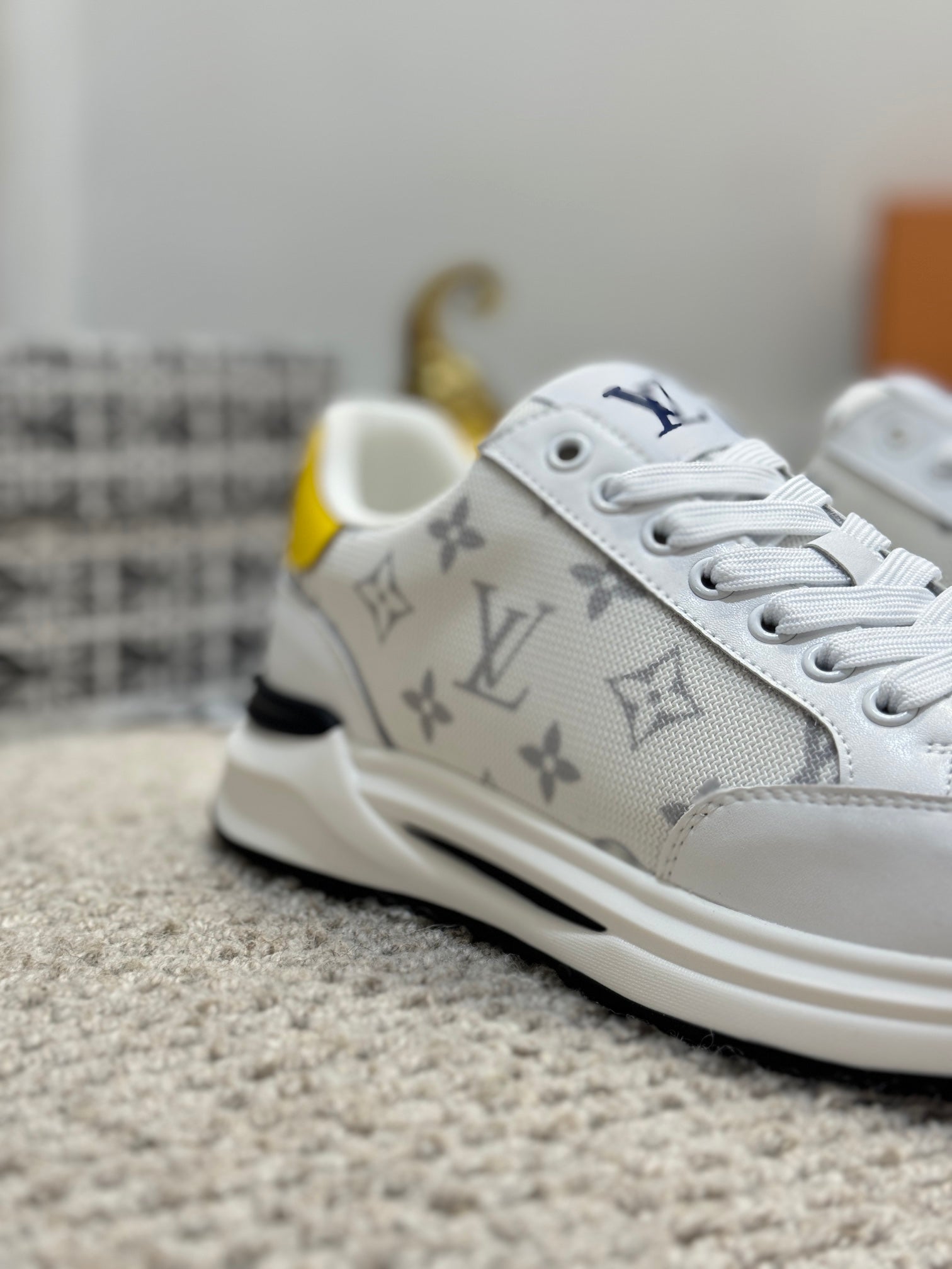 LV CLASSIC TRAINER SHOES IN WHITE MONOGRAM CALFKSIN AND SUEDE
