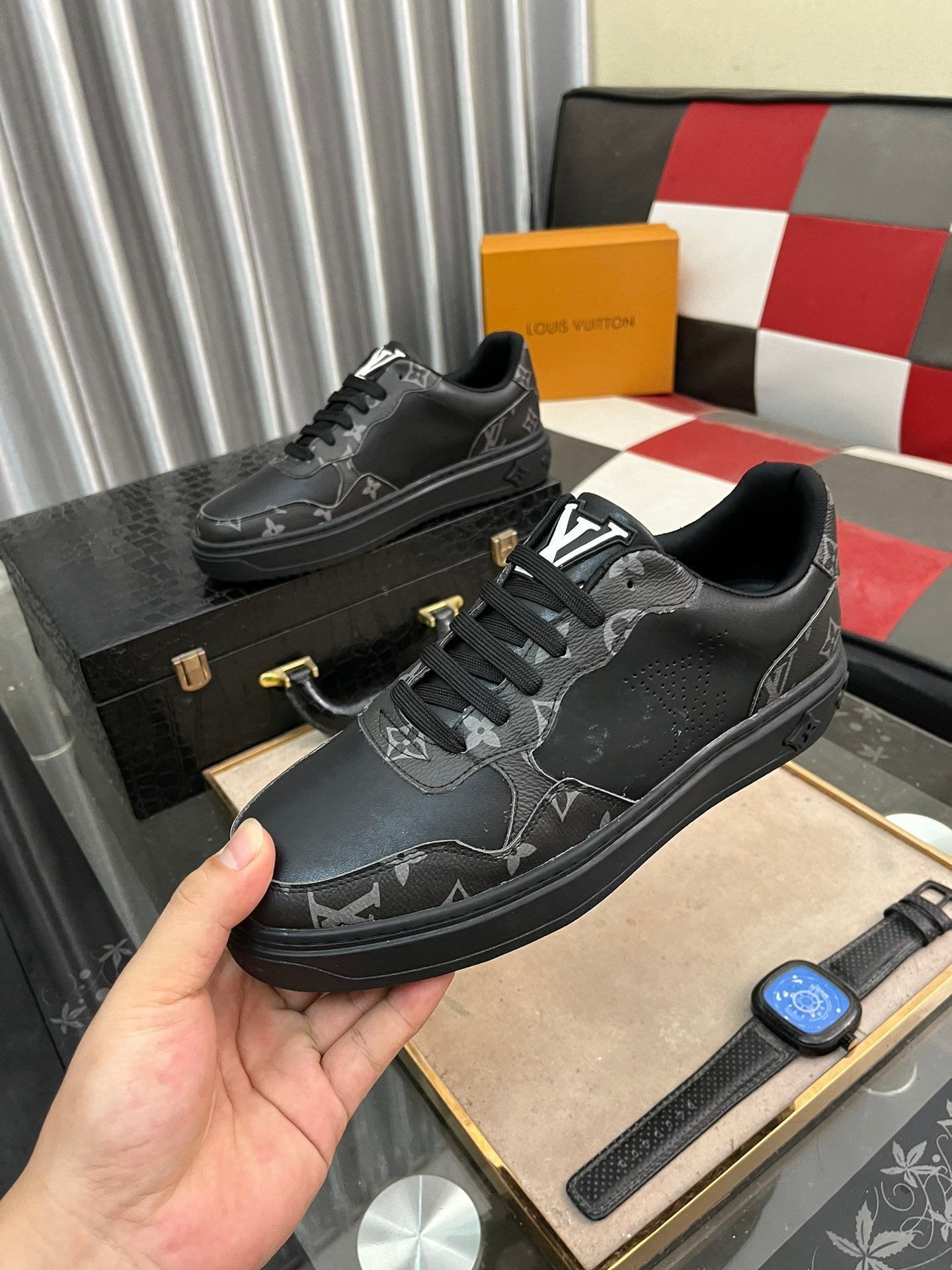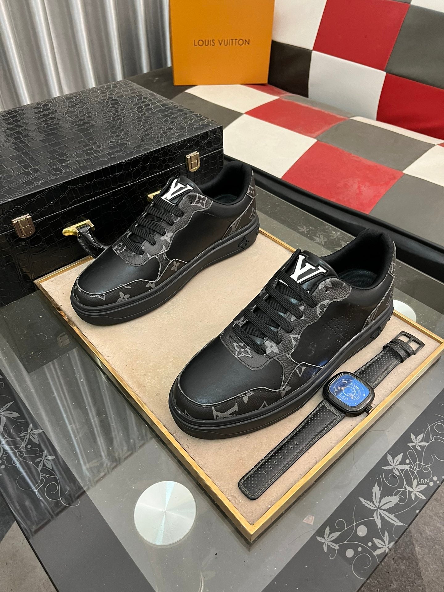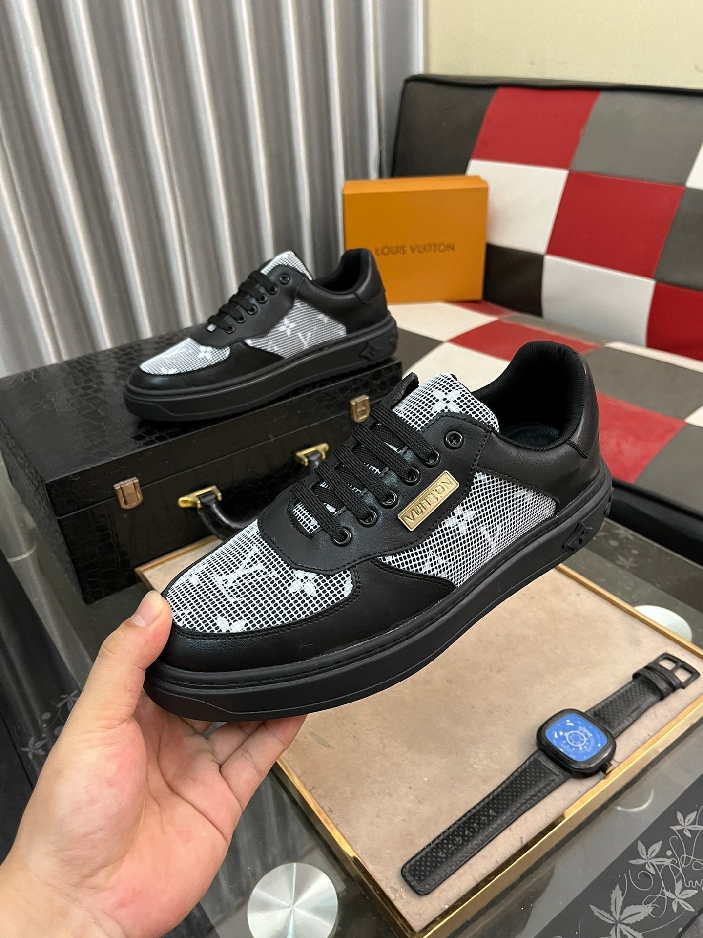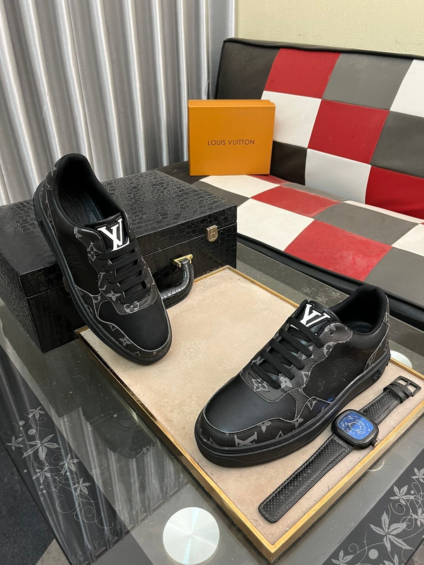 LV TRAINER SHOES IN BLACK EMBOSSED SOFT LAMBSKIN