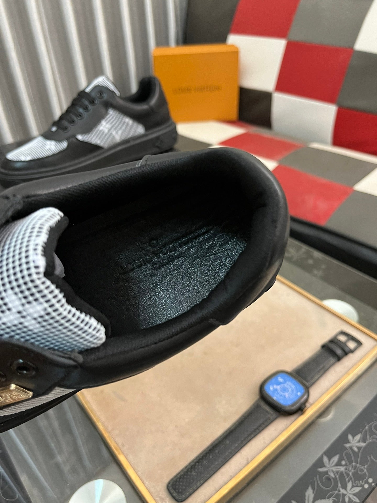 LV TRAINER SHOES IN BLACK MIX GREY EMBOSSED LAMBSKIN
