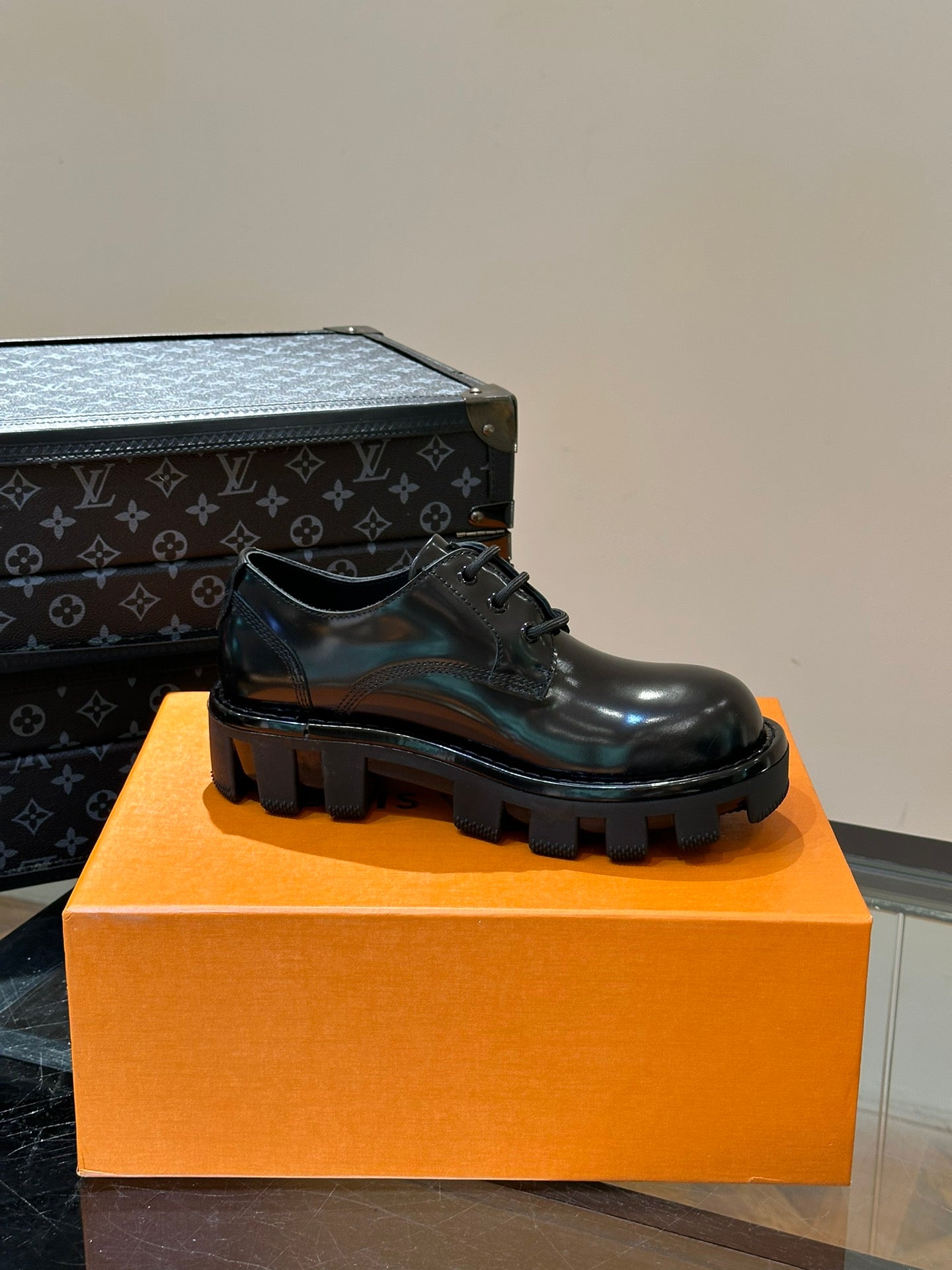 LV LACE-UP SHOES IN BLACK CALFSKIN
