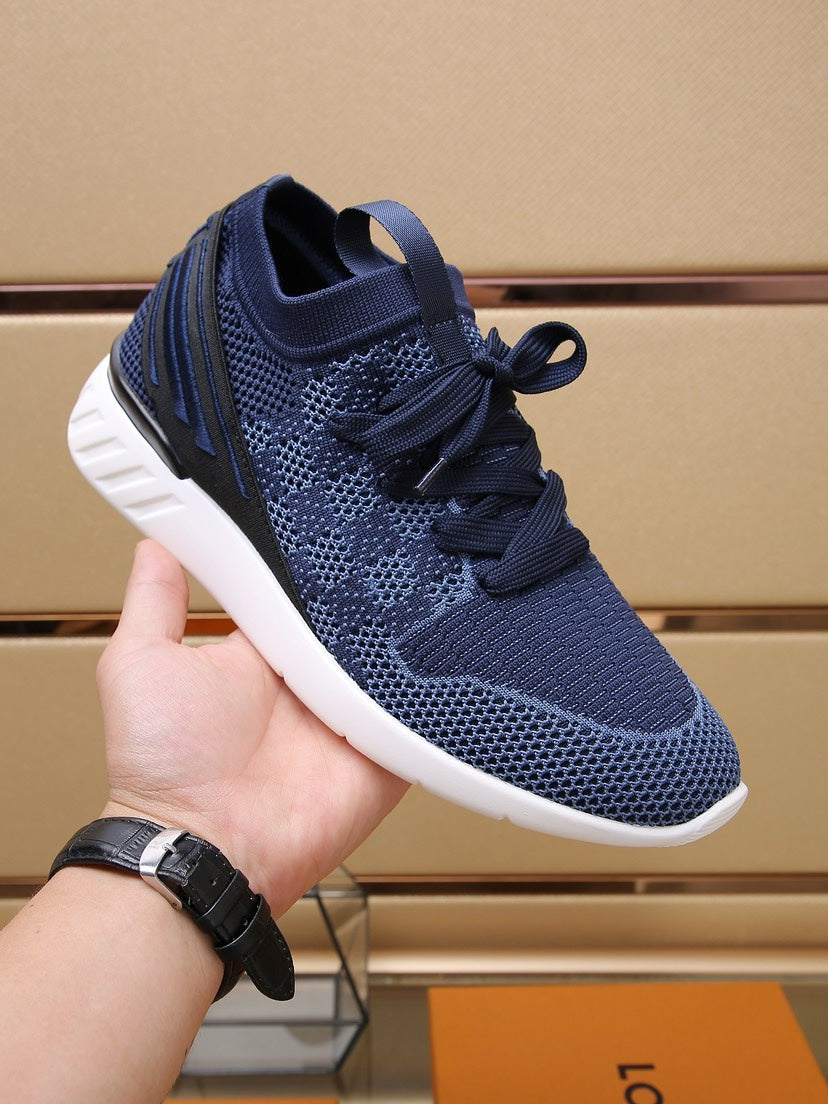 LV TRAINERS DAMIER NAVY BLUE MESH FABRIC