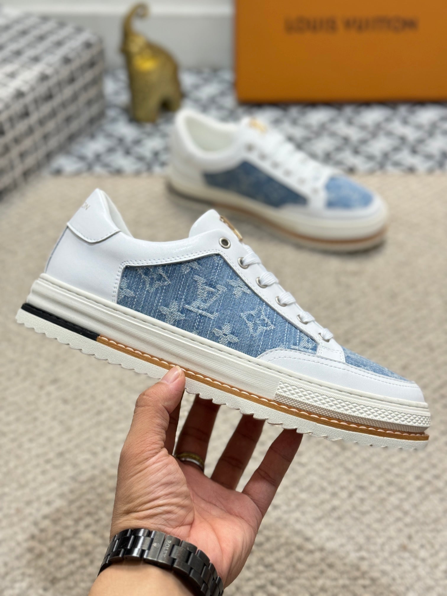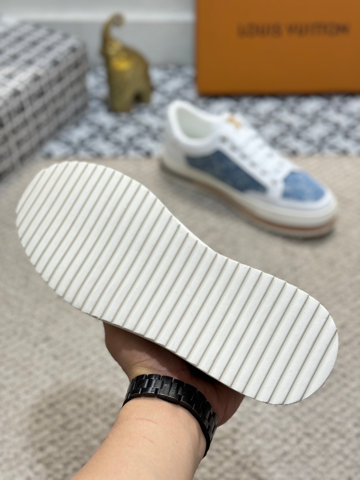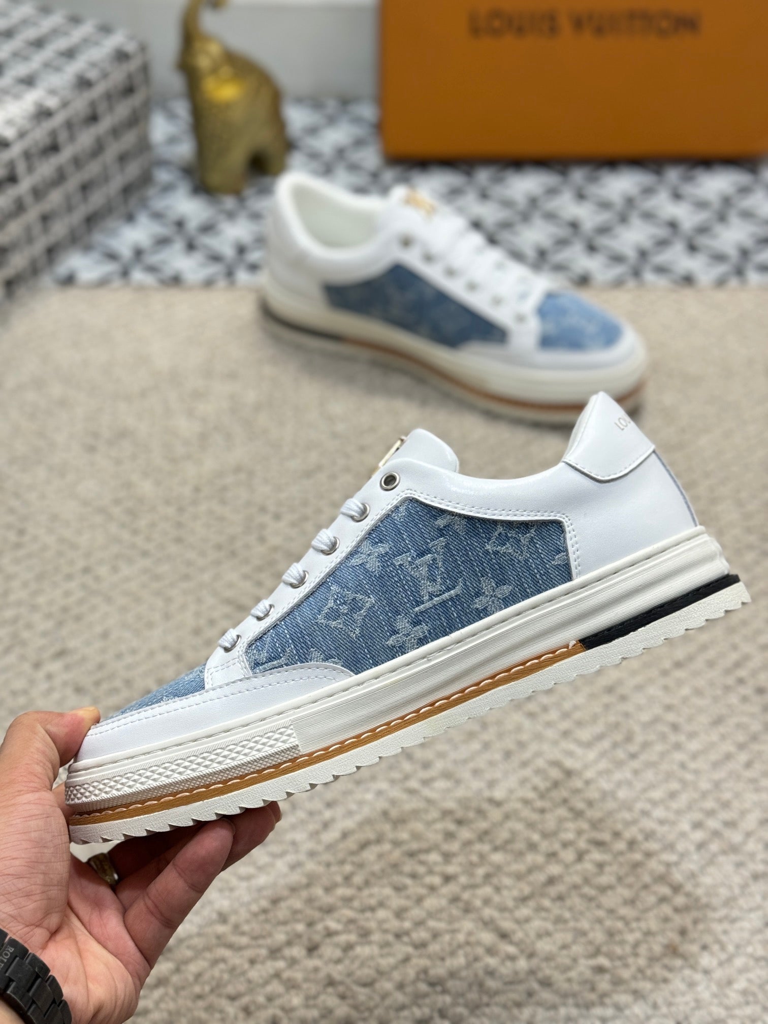 LV TRAINER SHOES IN WHITE MIX BLUE CALFSKIN