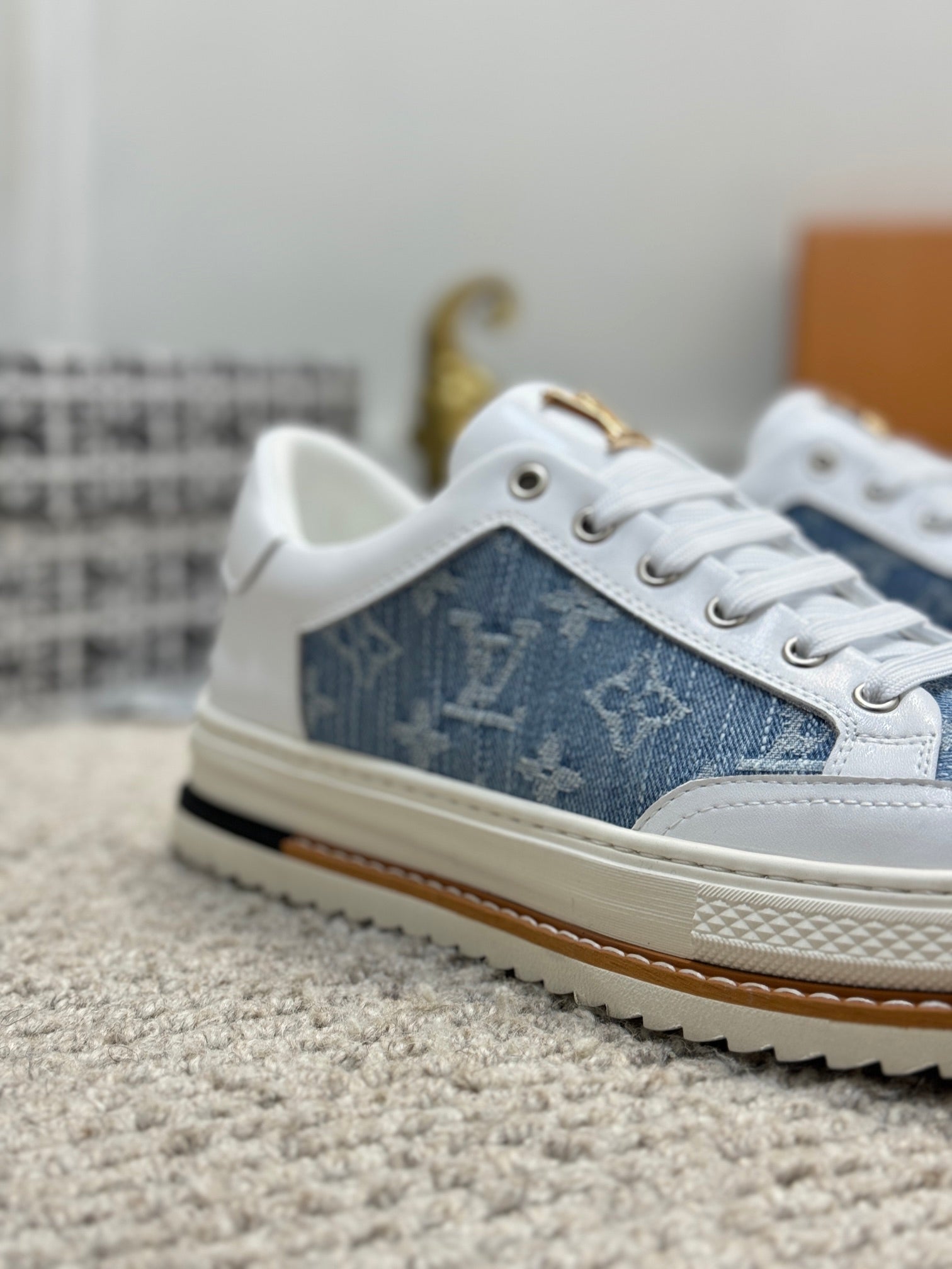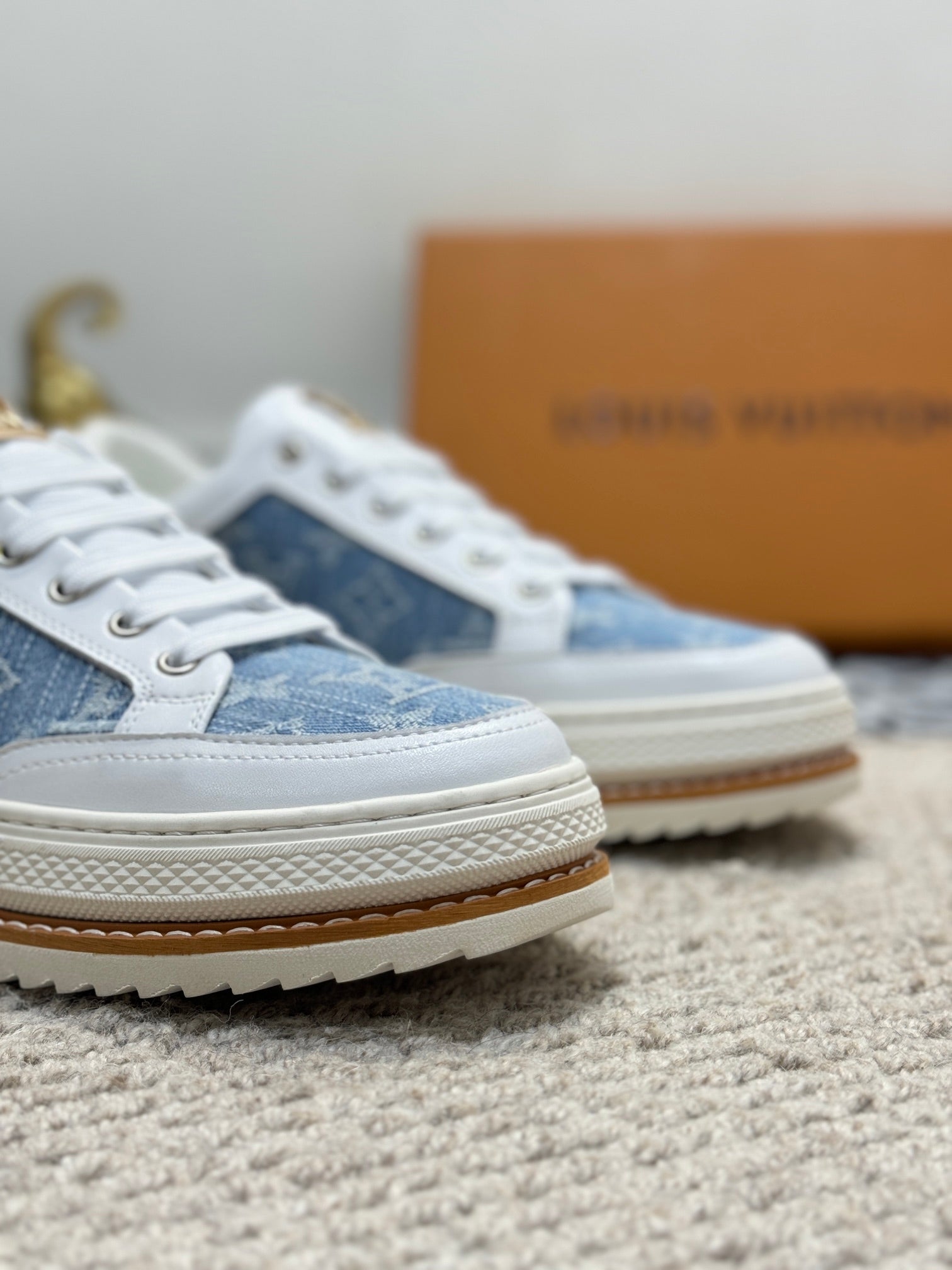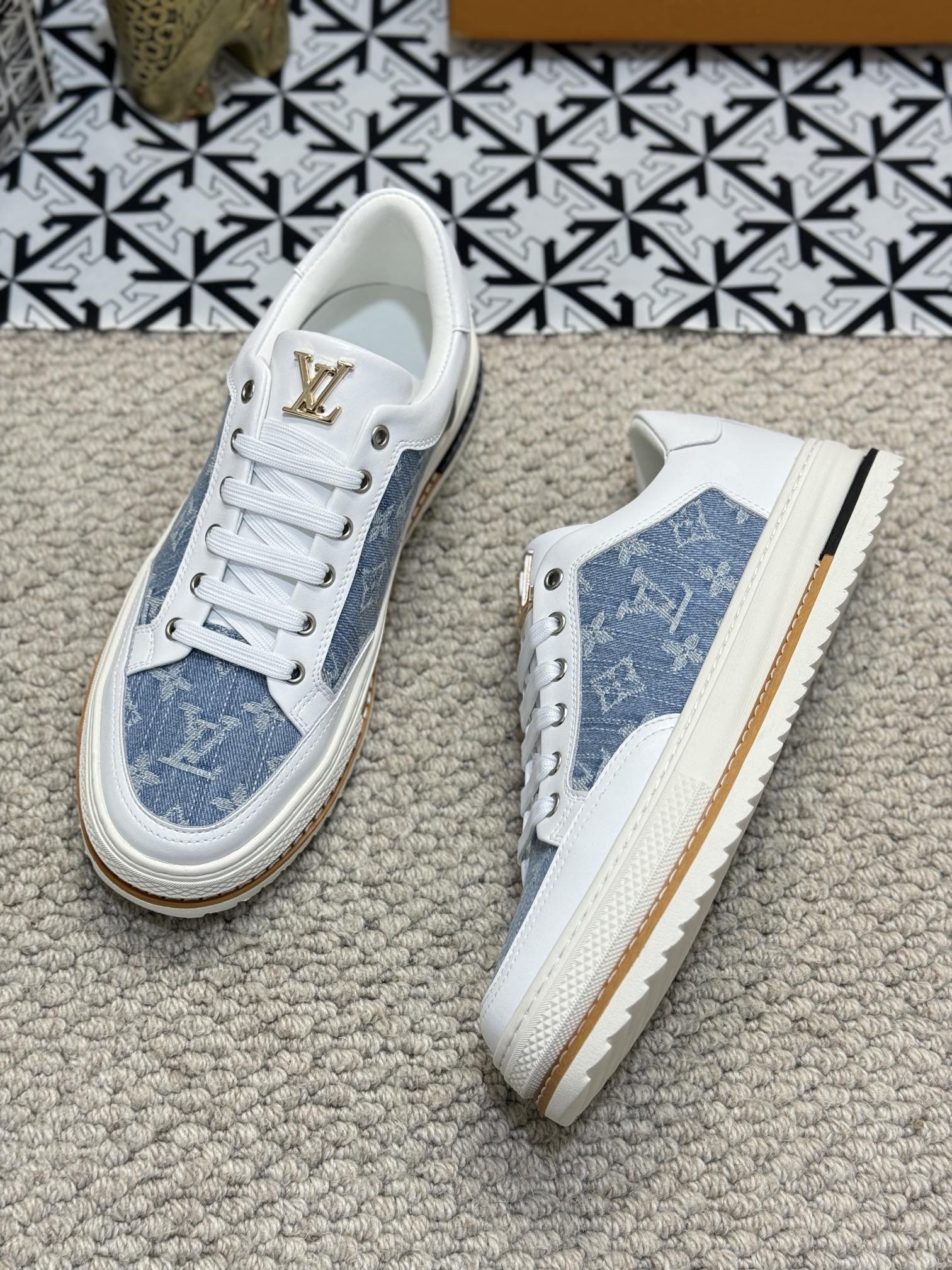 LV TRAINER SHOES IN WHITE MIX BLUE CALFSKIN