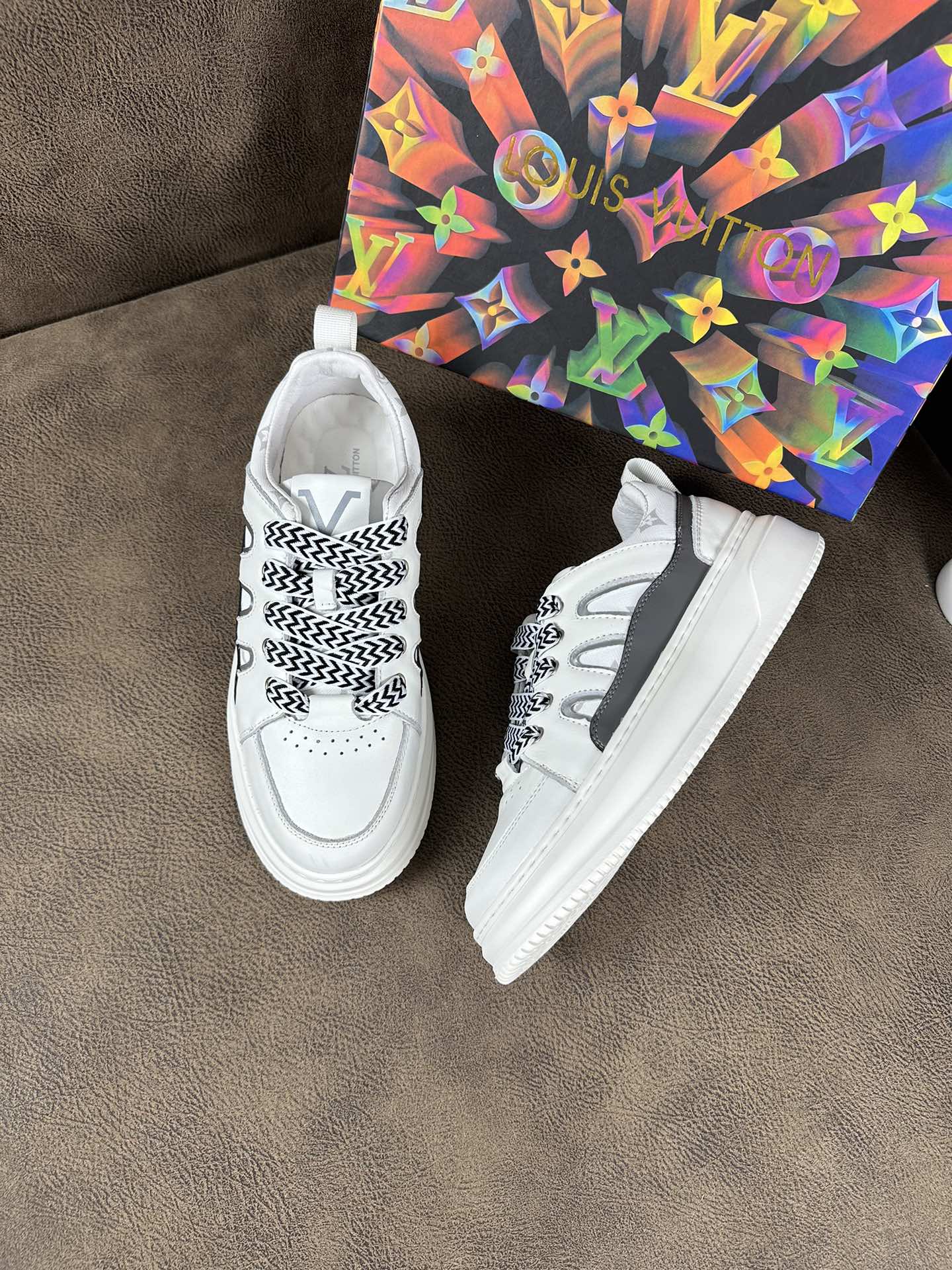 LV TRAINER SHOES IN WHITE AND BLACK CALFSKIN