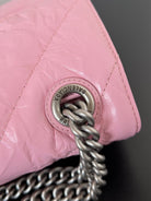 CRUSH CHAINED BAG 25 IN PINK QUILTED CRUSHED CALFSKIN SILVER HARDWARE