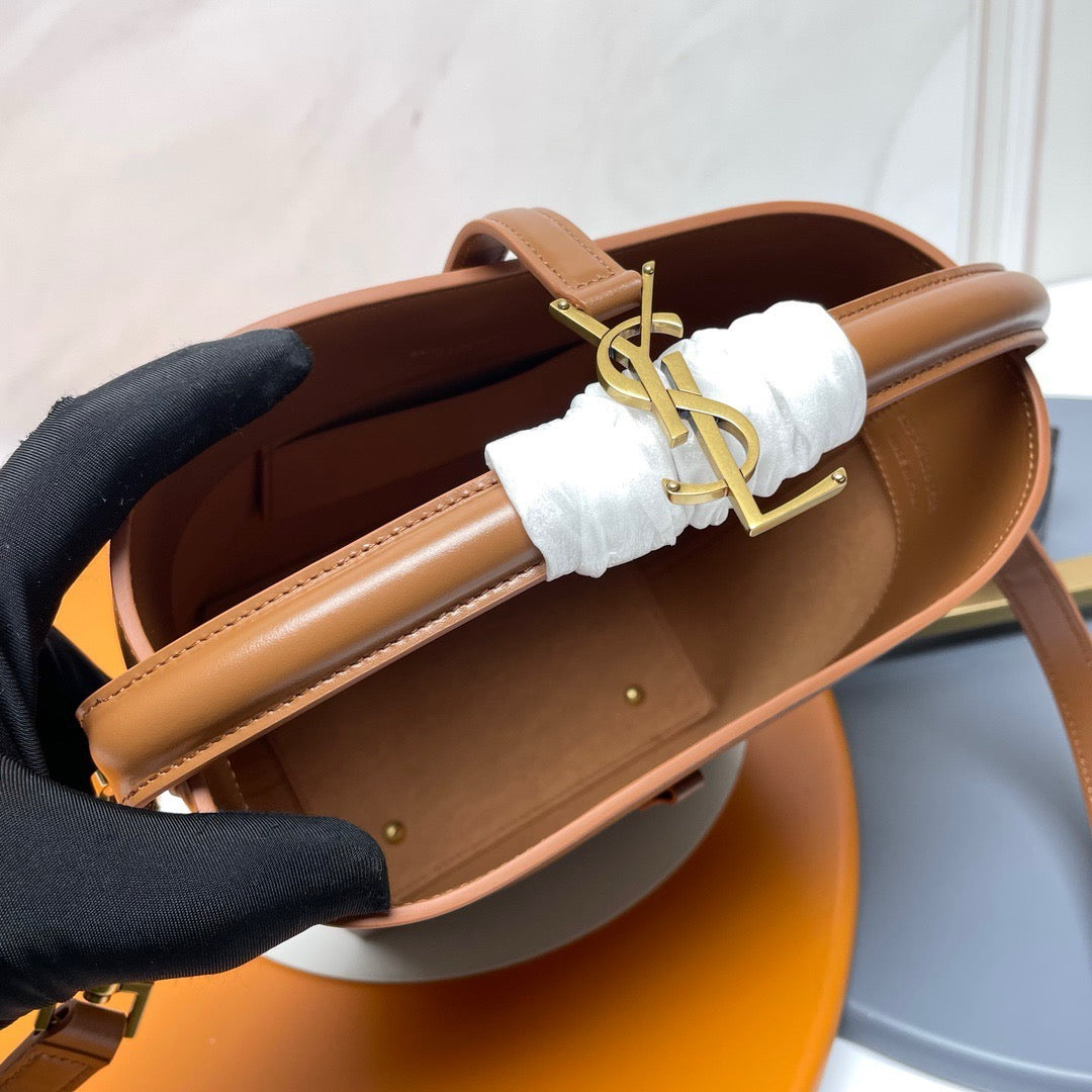 YSL Solferino Small Satchel Bag Brown Gold Calfskin 339437