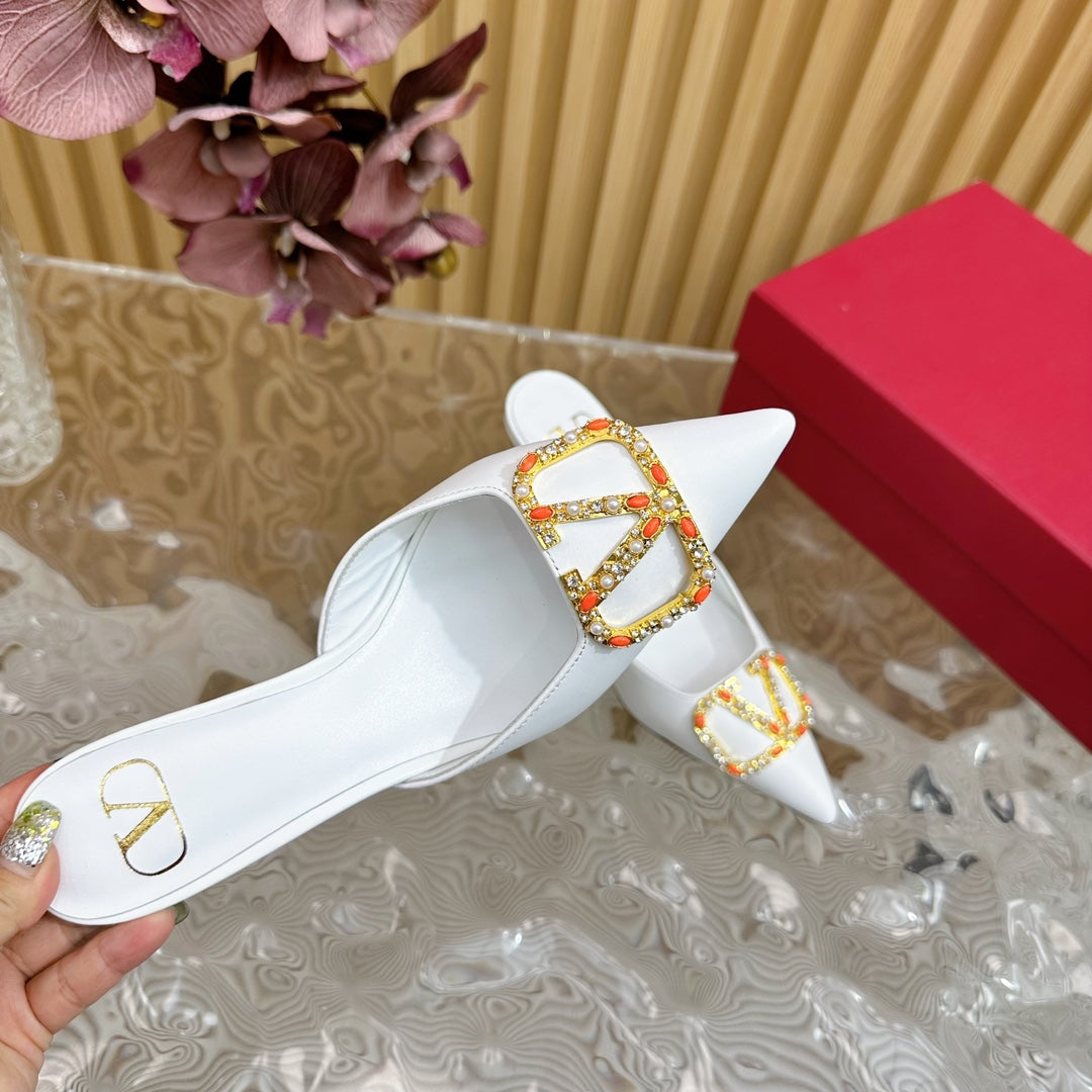 HIGH PUMP MULE 80MM WHITE CALFSKIN