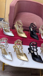 Valentino Rockstud Caged Pumps 95mm Black Beige Leather