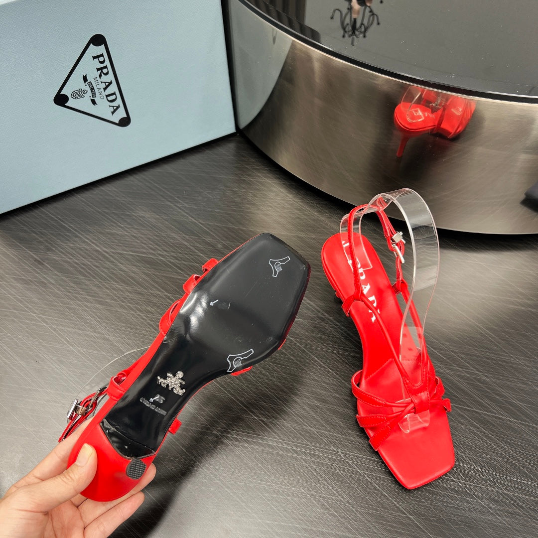 PRA TRIANGLE HEEL SATIN SANDALS CRIMSON