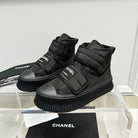 CC High Top Sneaker Thick-Soled Black Rain Velvet Fabric
