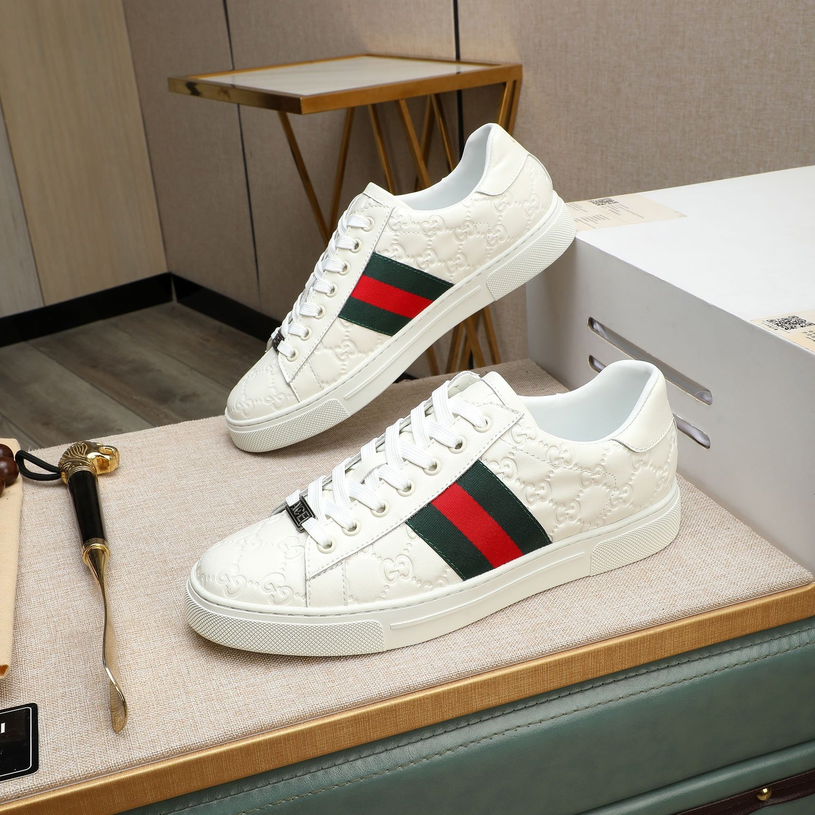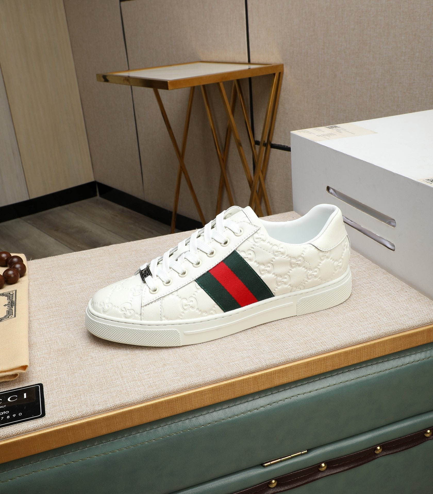 GG Men's ACE Sneaker White Embossed Calfskin 516600