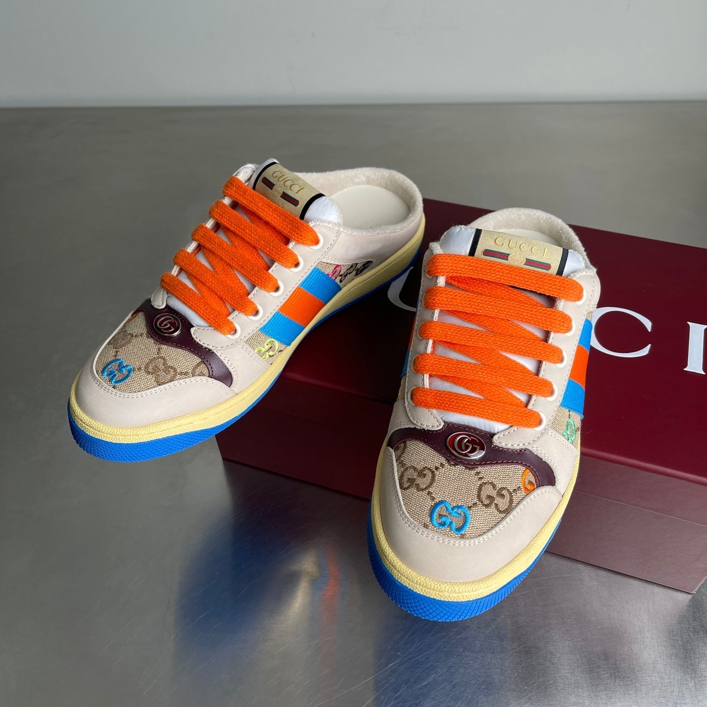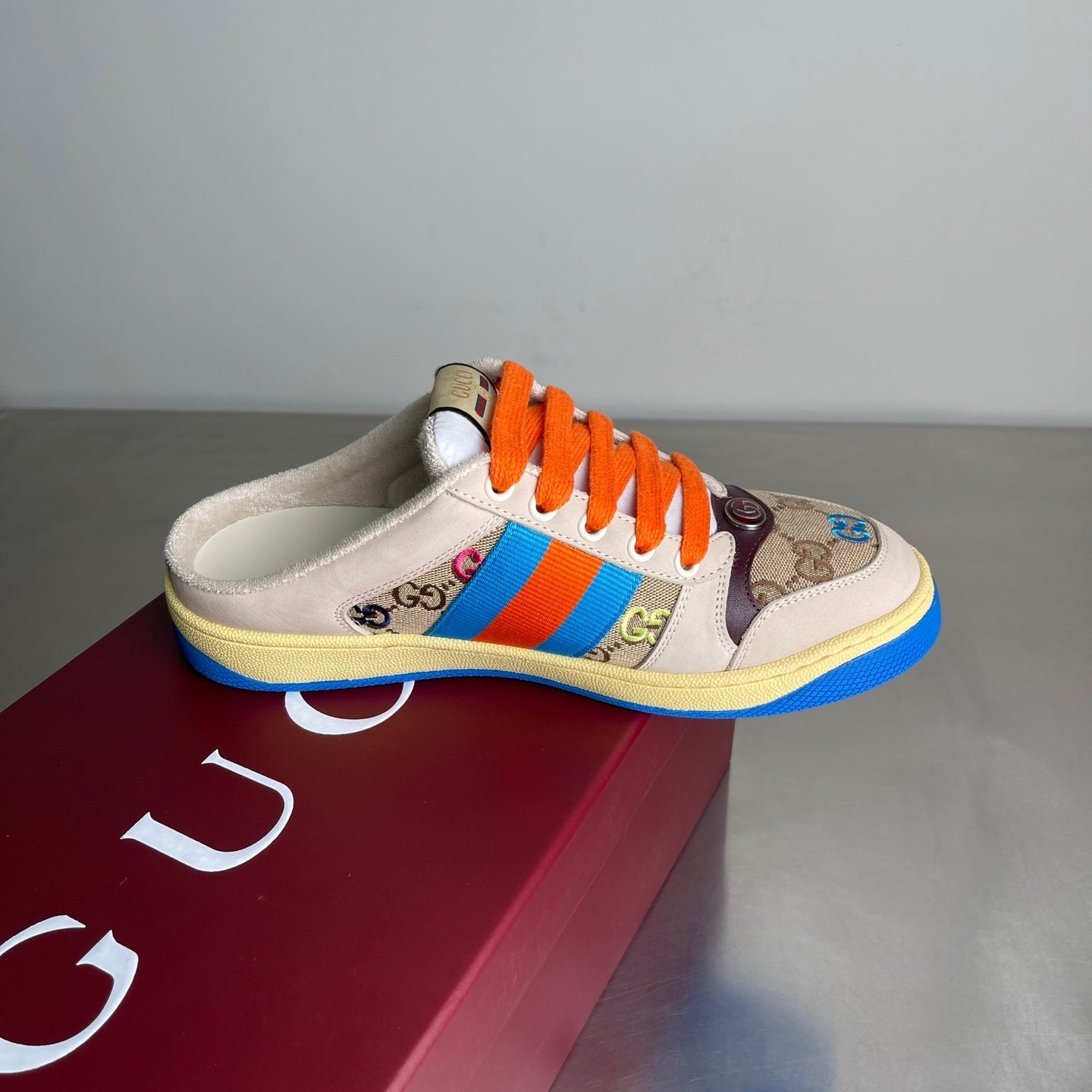 GG Men's Screener Mules Multicolor Suede Denim 722596