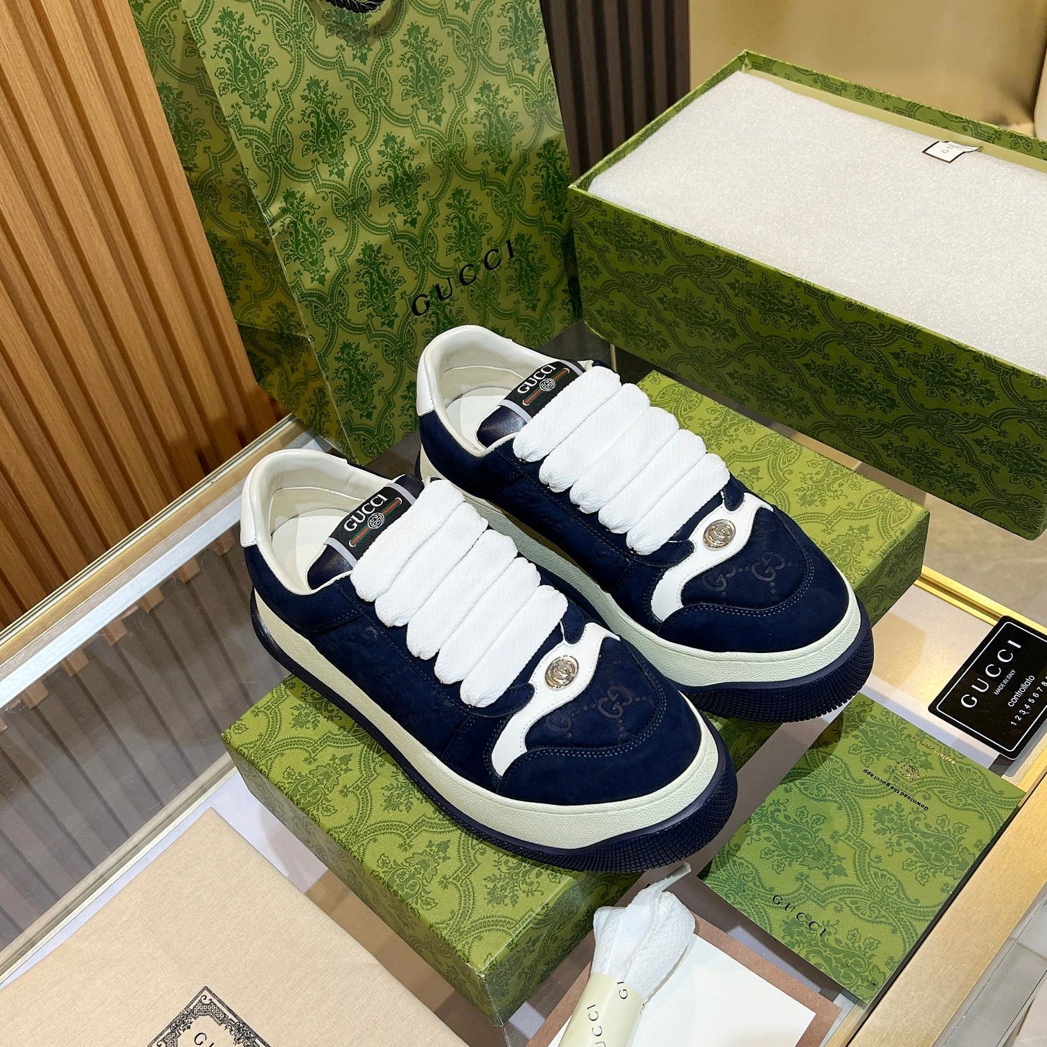 GG Men's Screener Sneaker Blue Canvas Sheepskin 523610