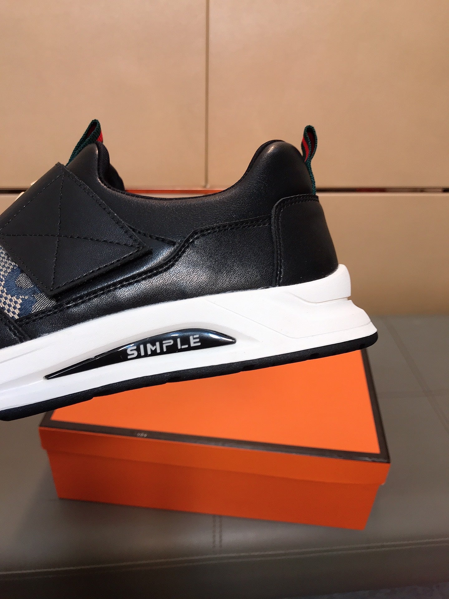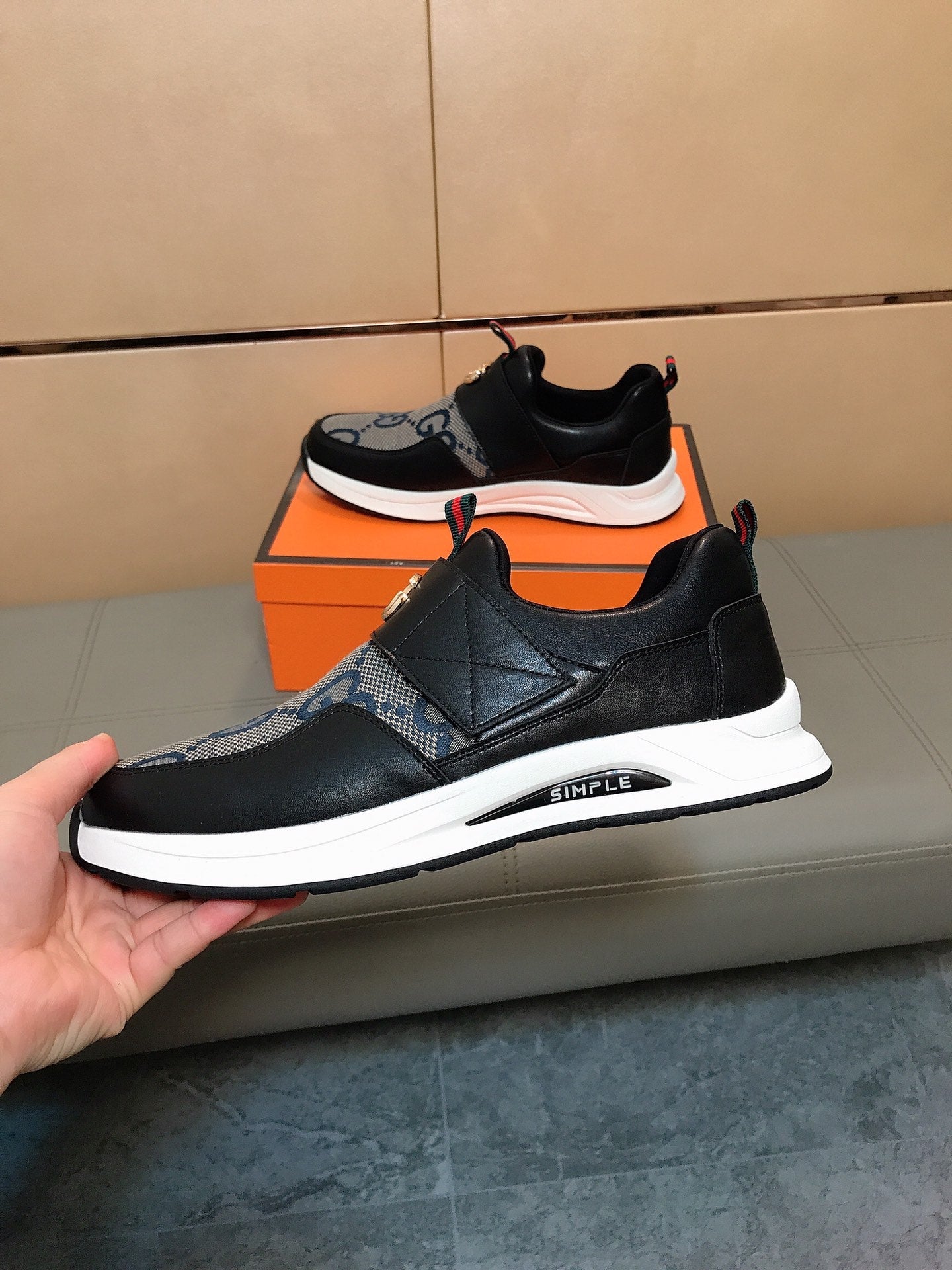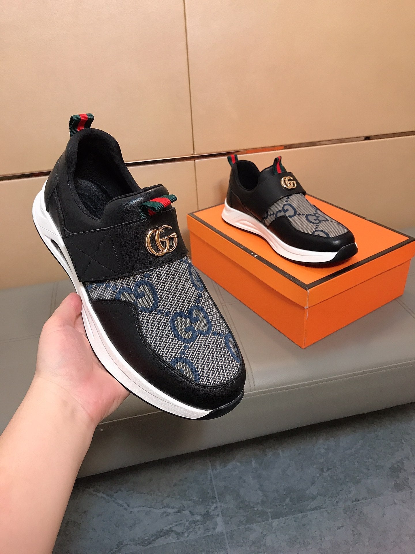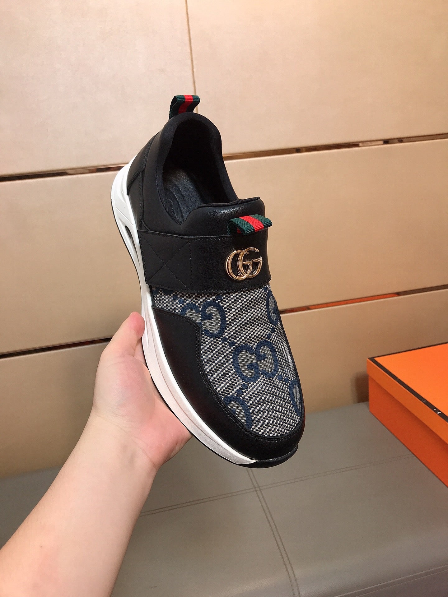 GG Men's Slip on Black Blue Cowhide Canvas 530403