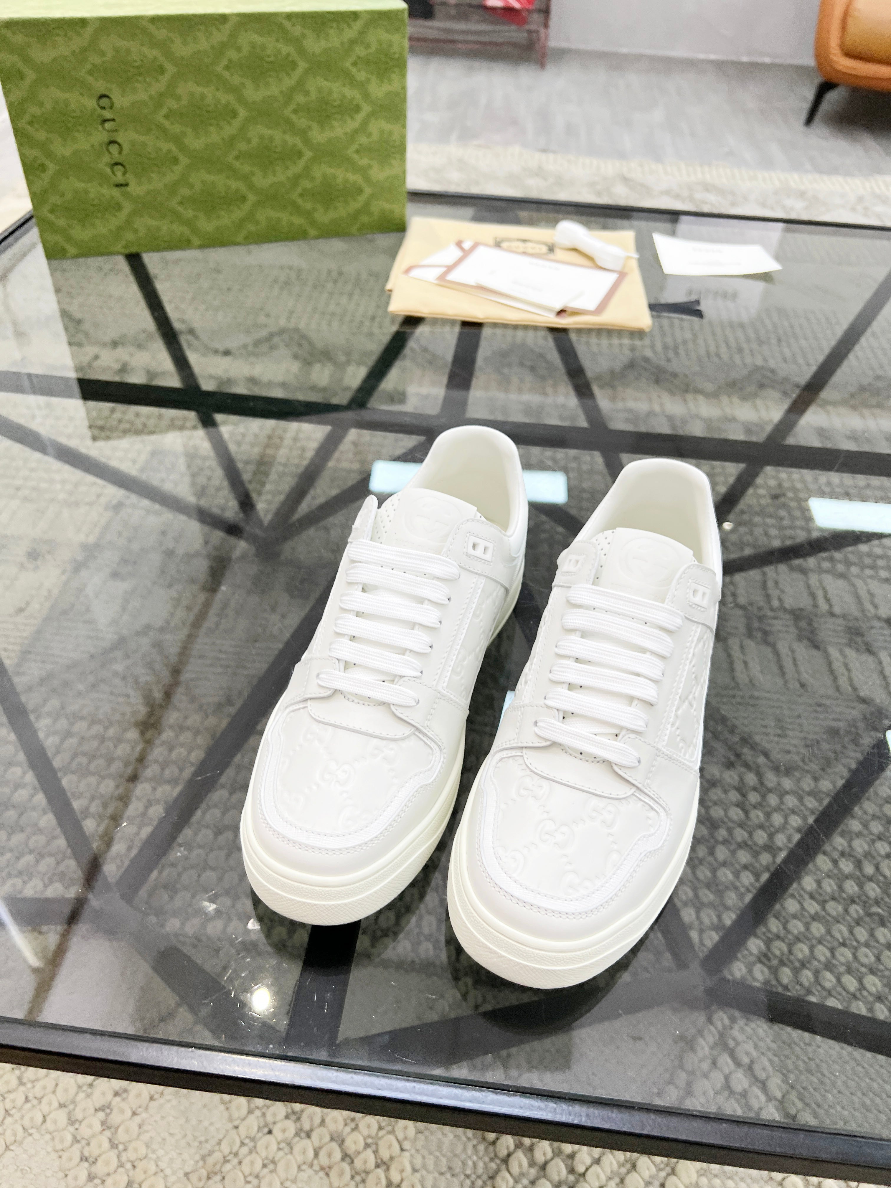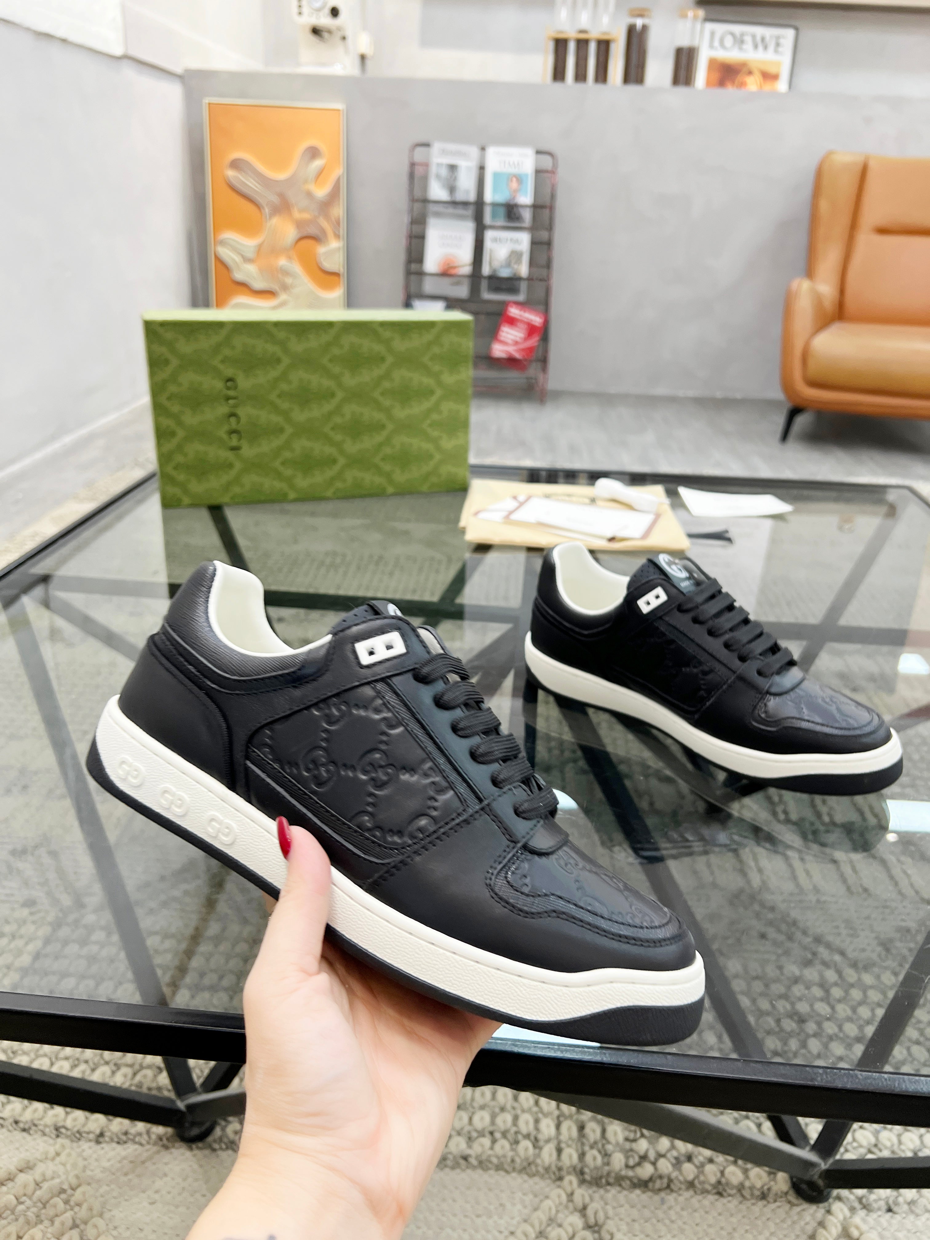 GG Men's Sneaker Black White Embossed Cowhide 525909