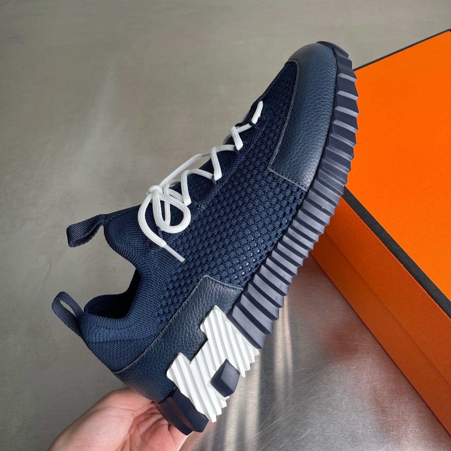 HM Men's 25 Lift Sneaker Navy Blue Mesh Calfskin 703773
