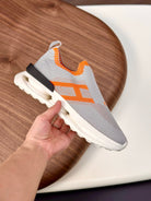 HM Men's Slip on Sneaker Grey Orange Flyknit Fabric 690060