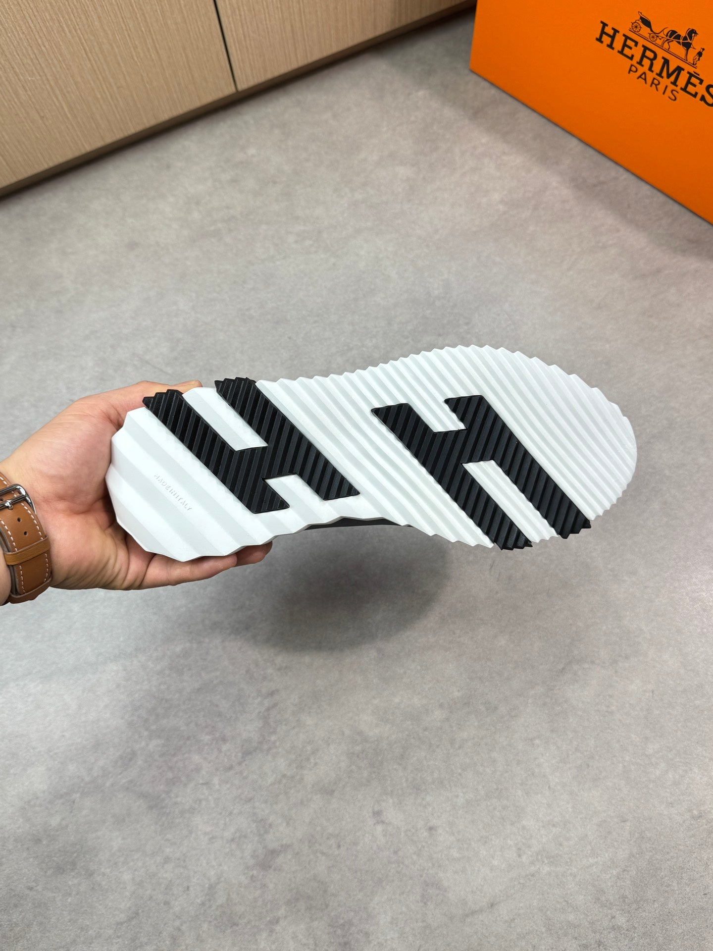 HM Men's Bouncing Sneaker White Black Calfskin Suede 696022