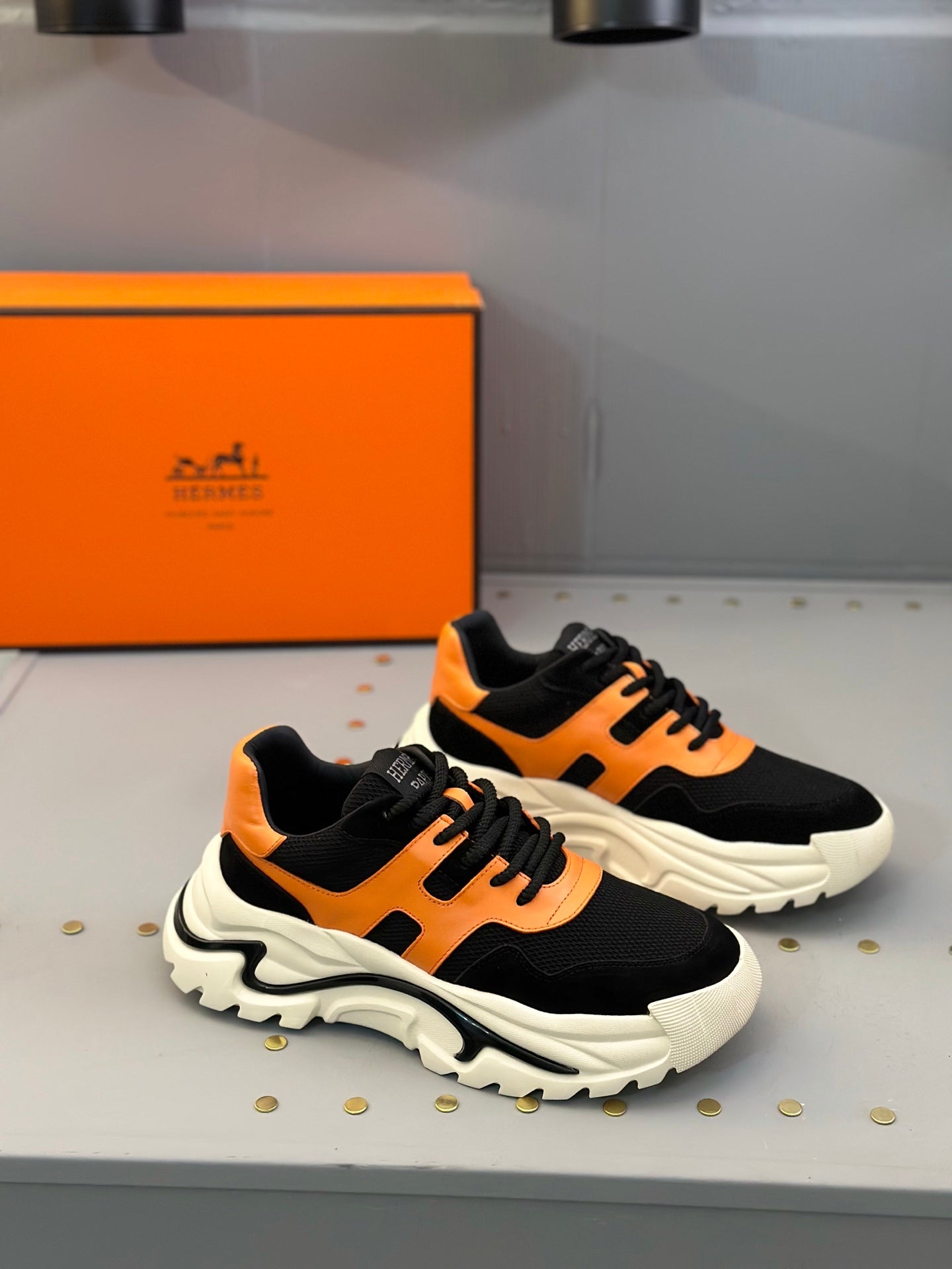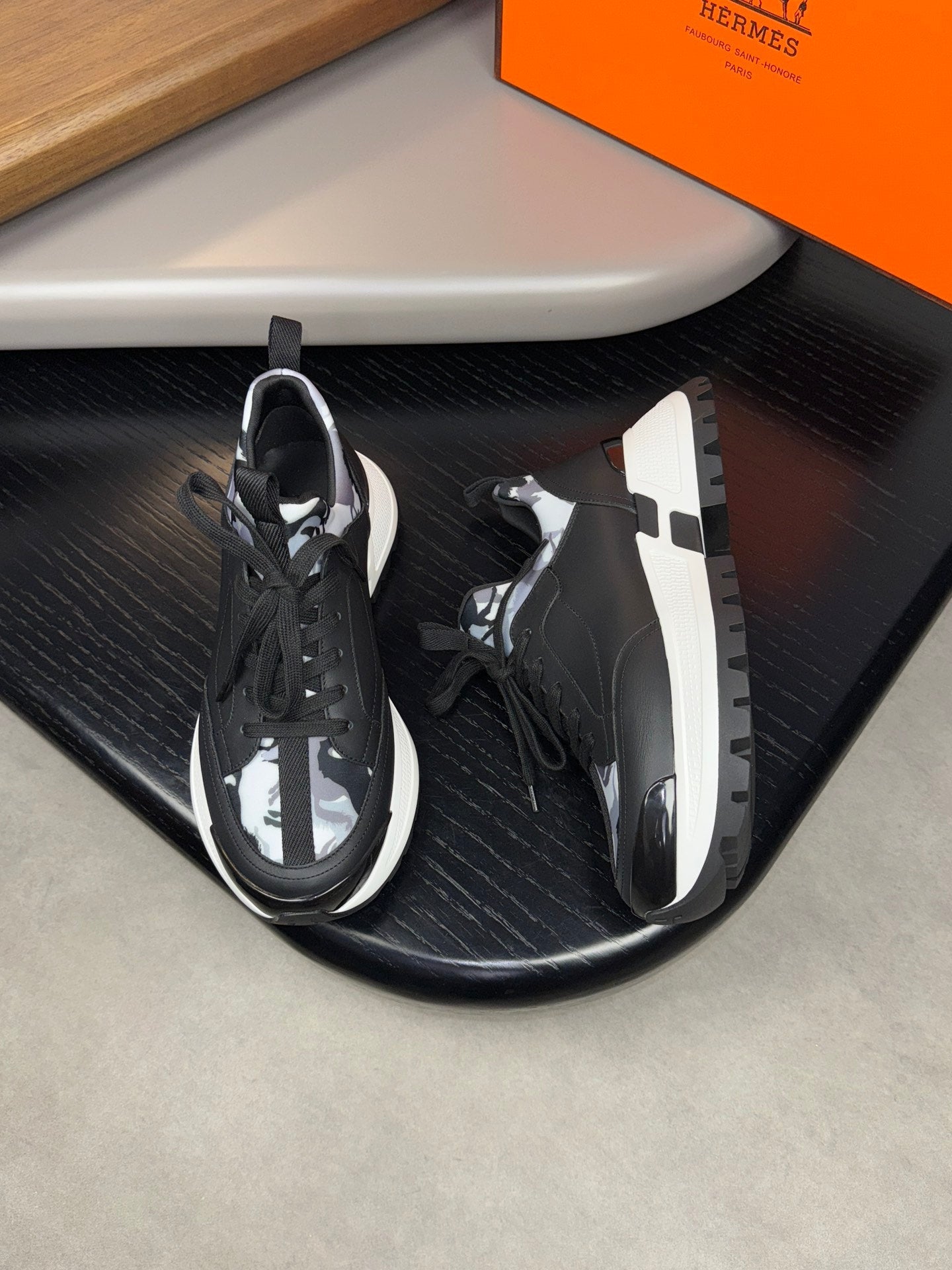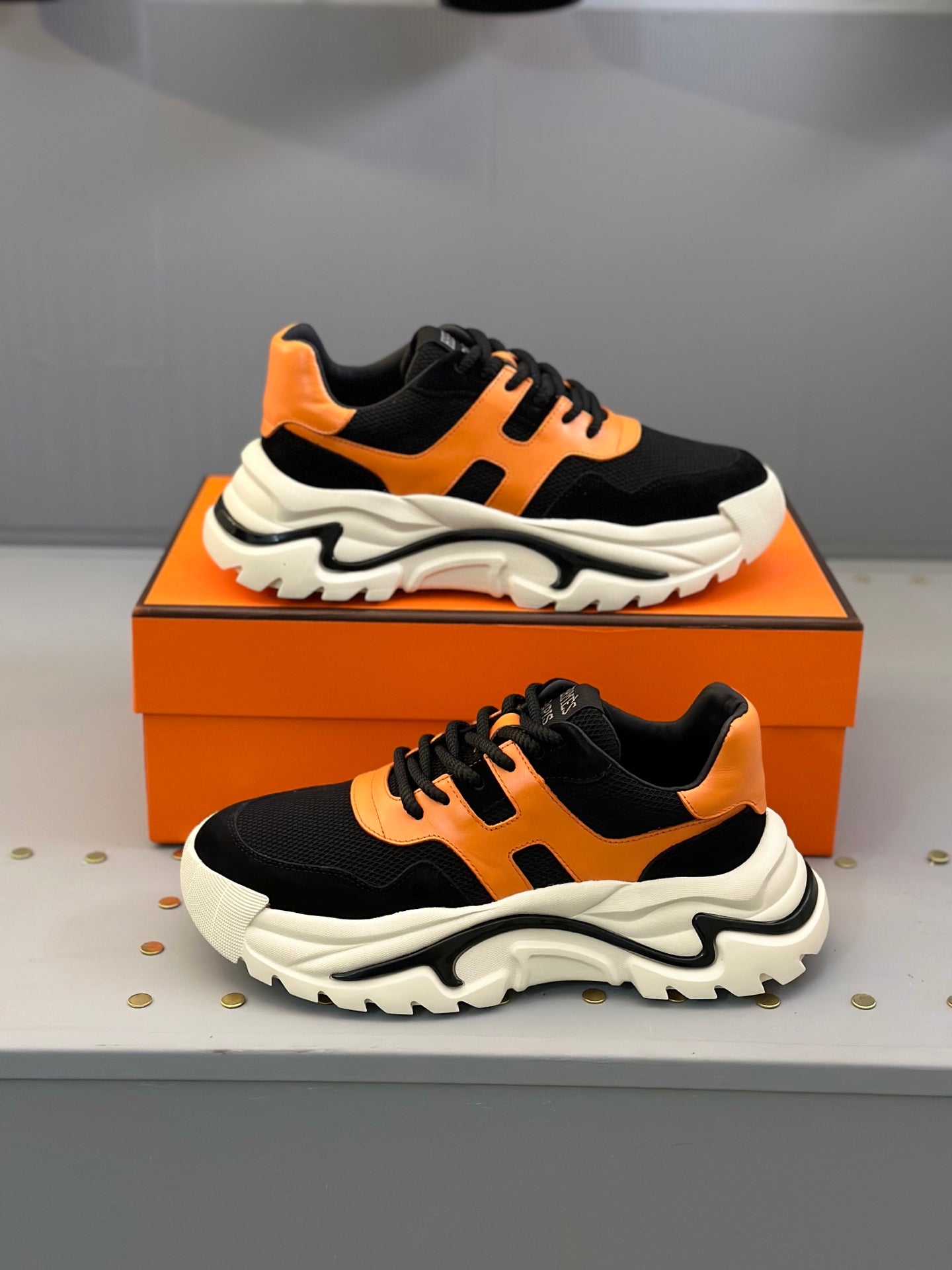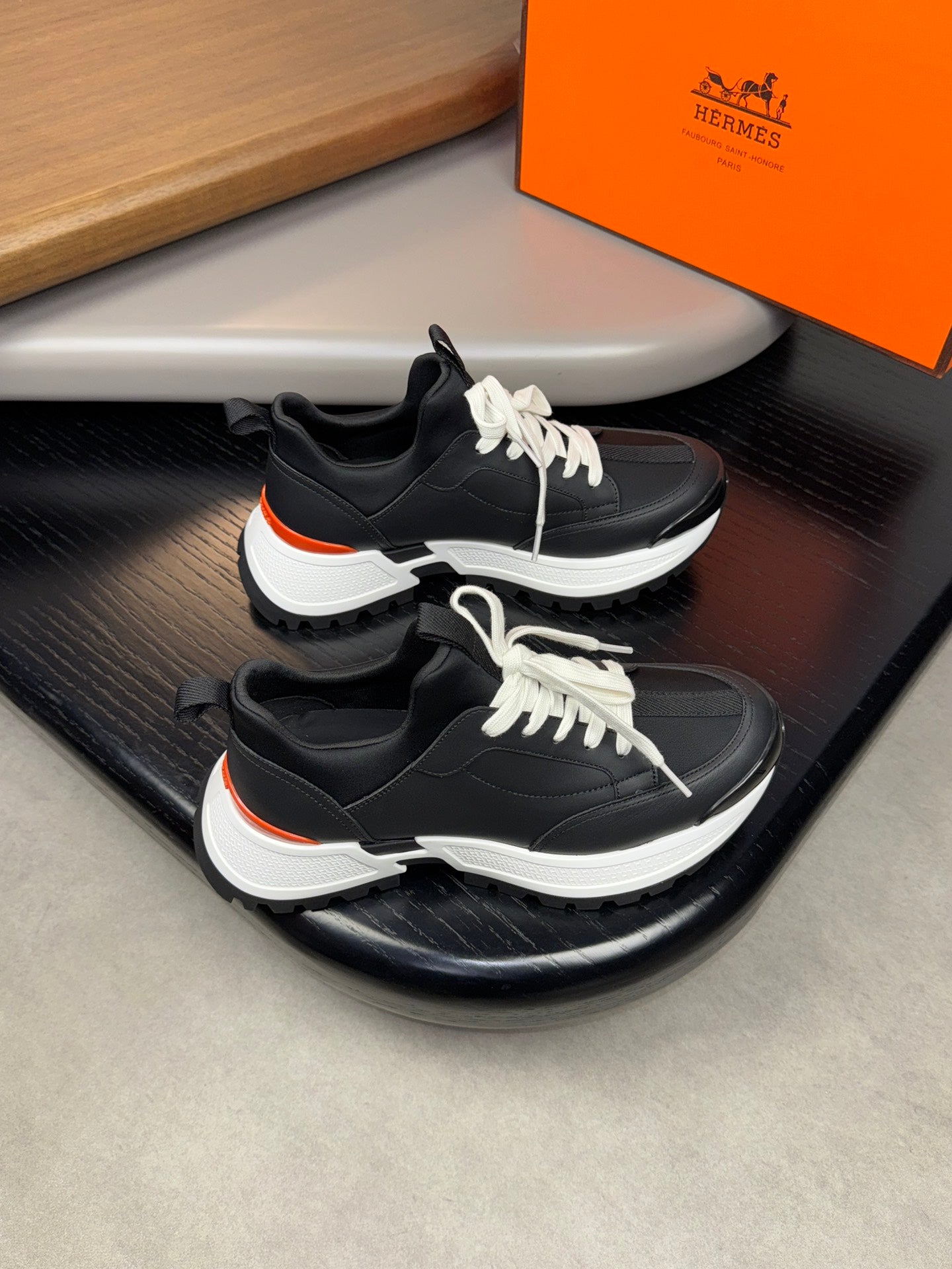 HM Men's Sneaker Black Orange Mesh Calfskin 541264