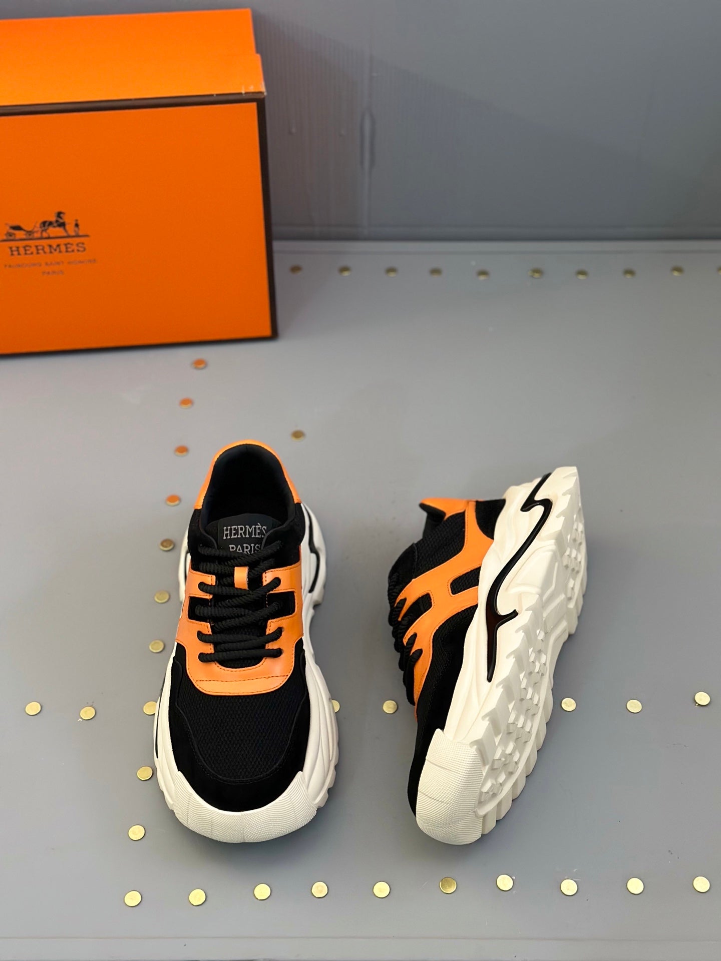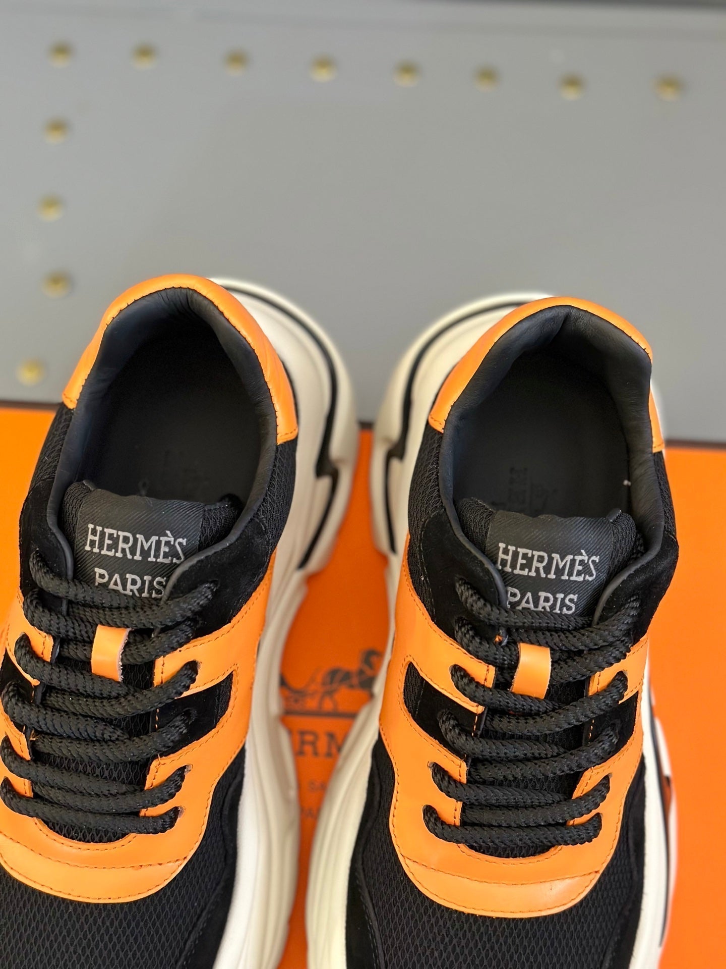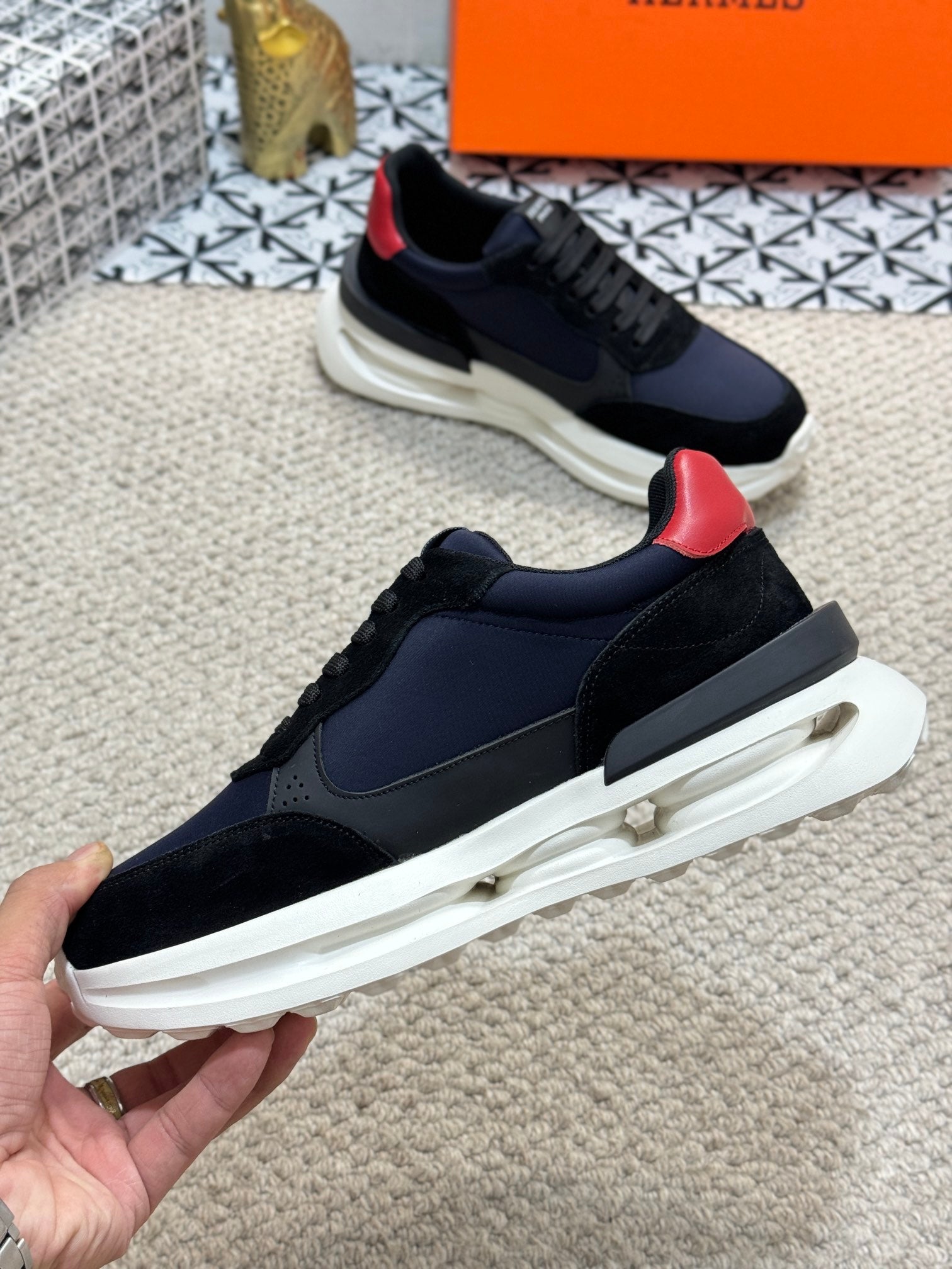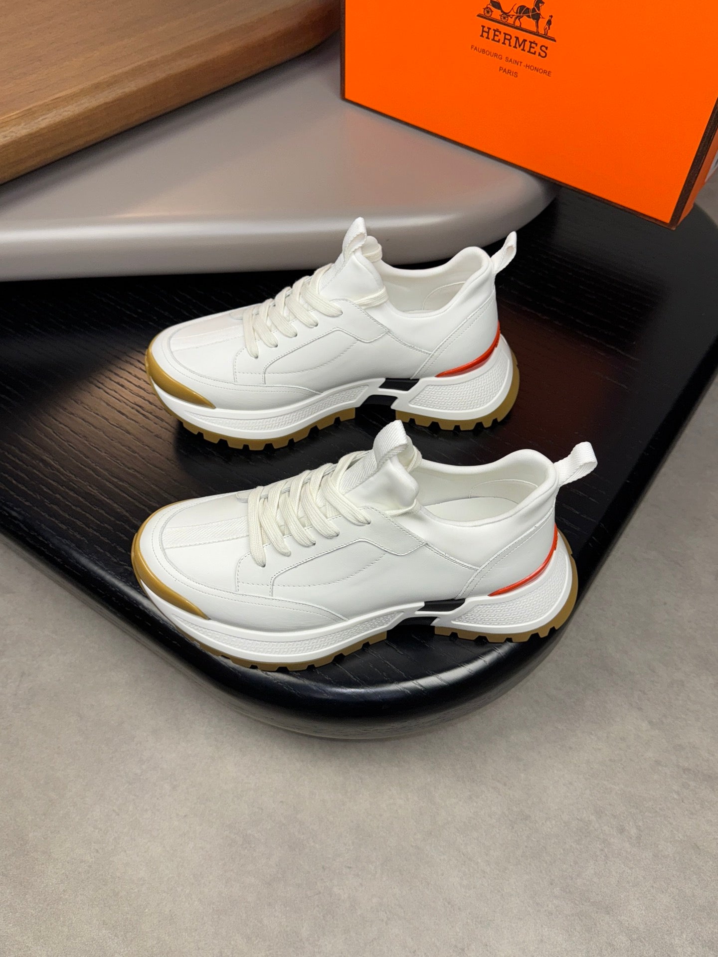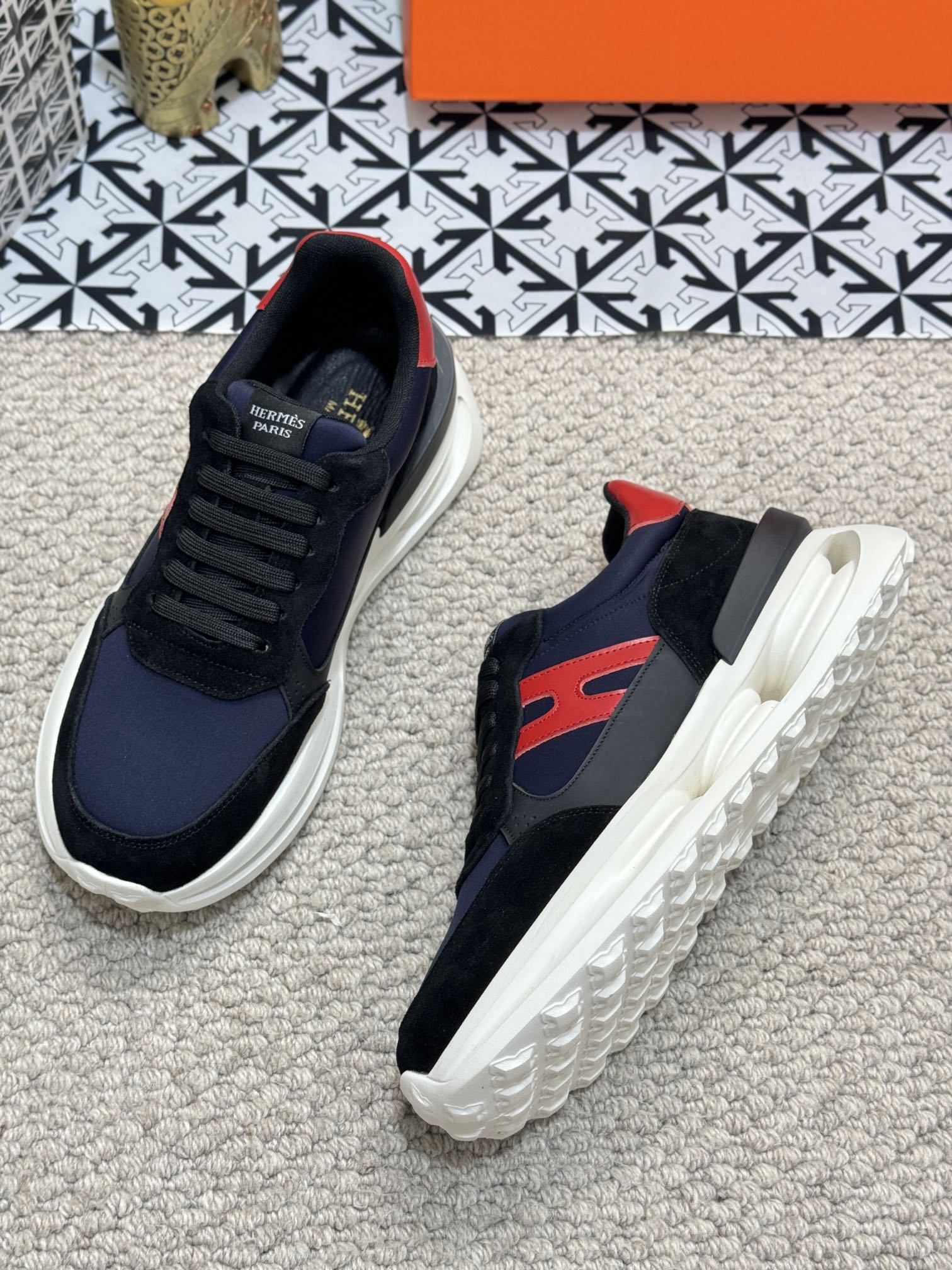 HM Men's Sneaker Black Orange Mesh Calfskin 541264