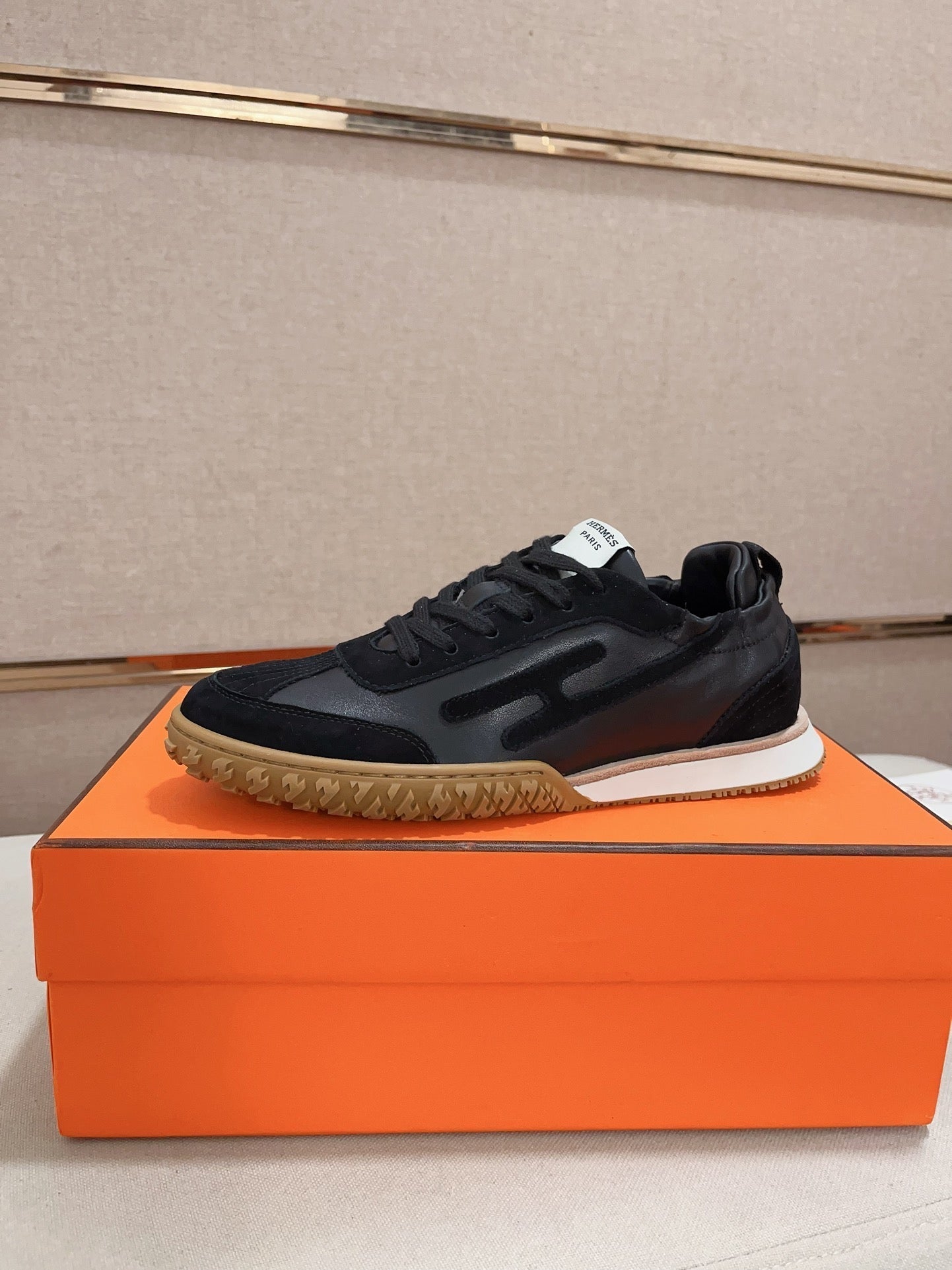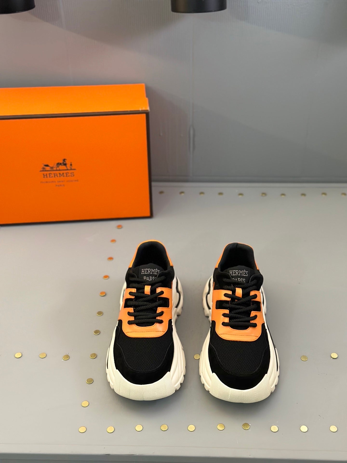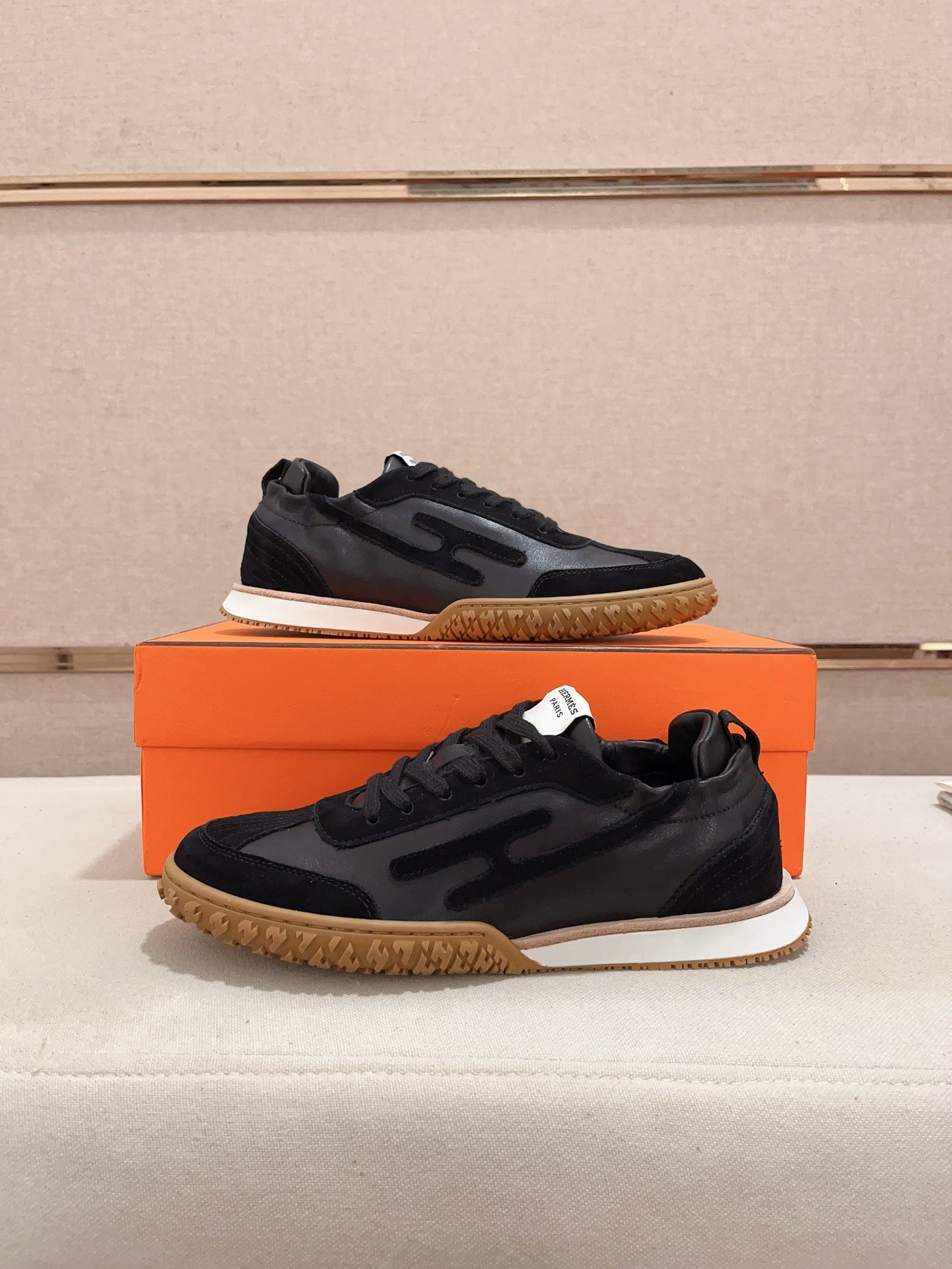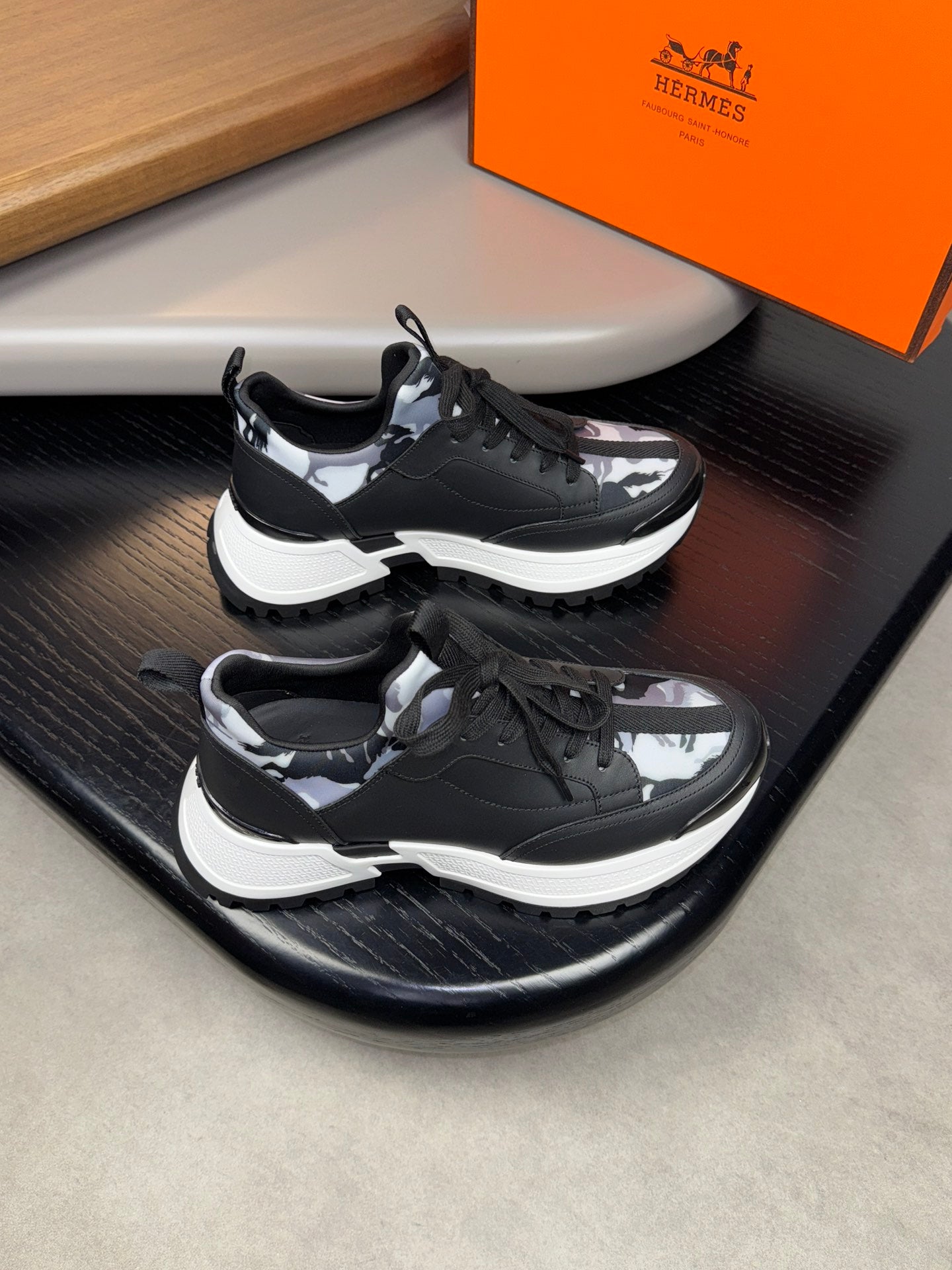 HM Men's Sneaker Black Orange Mesh Calfskin 541264