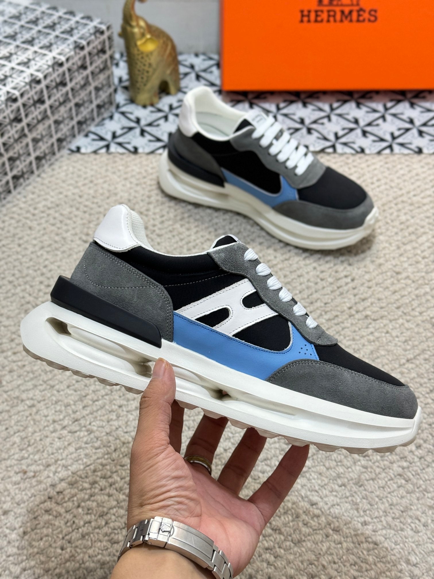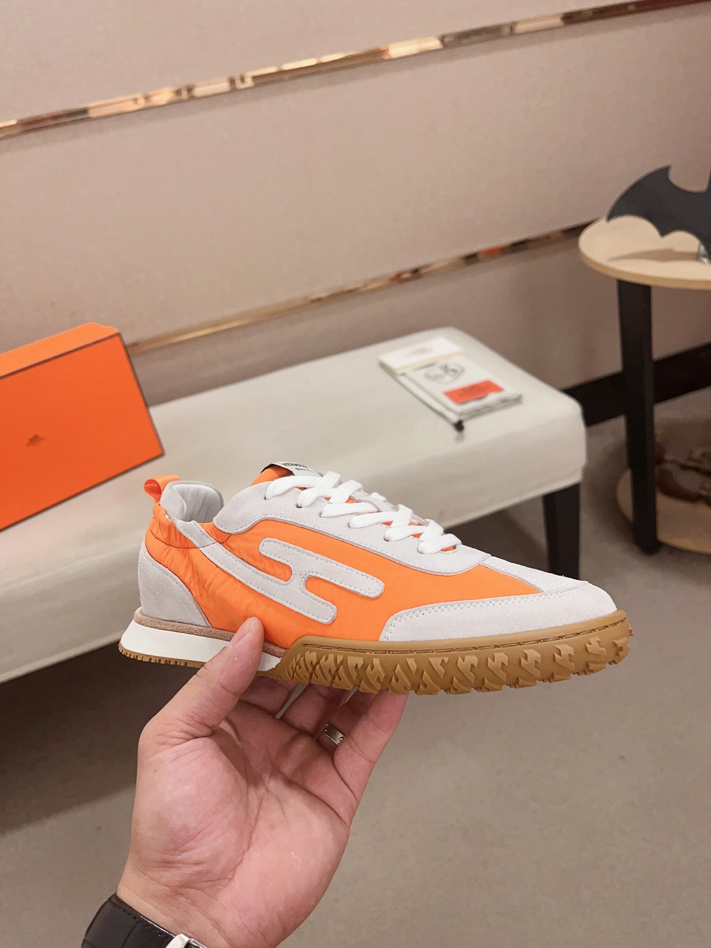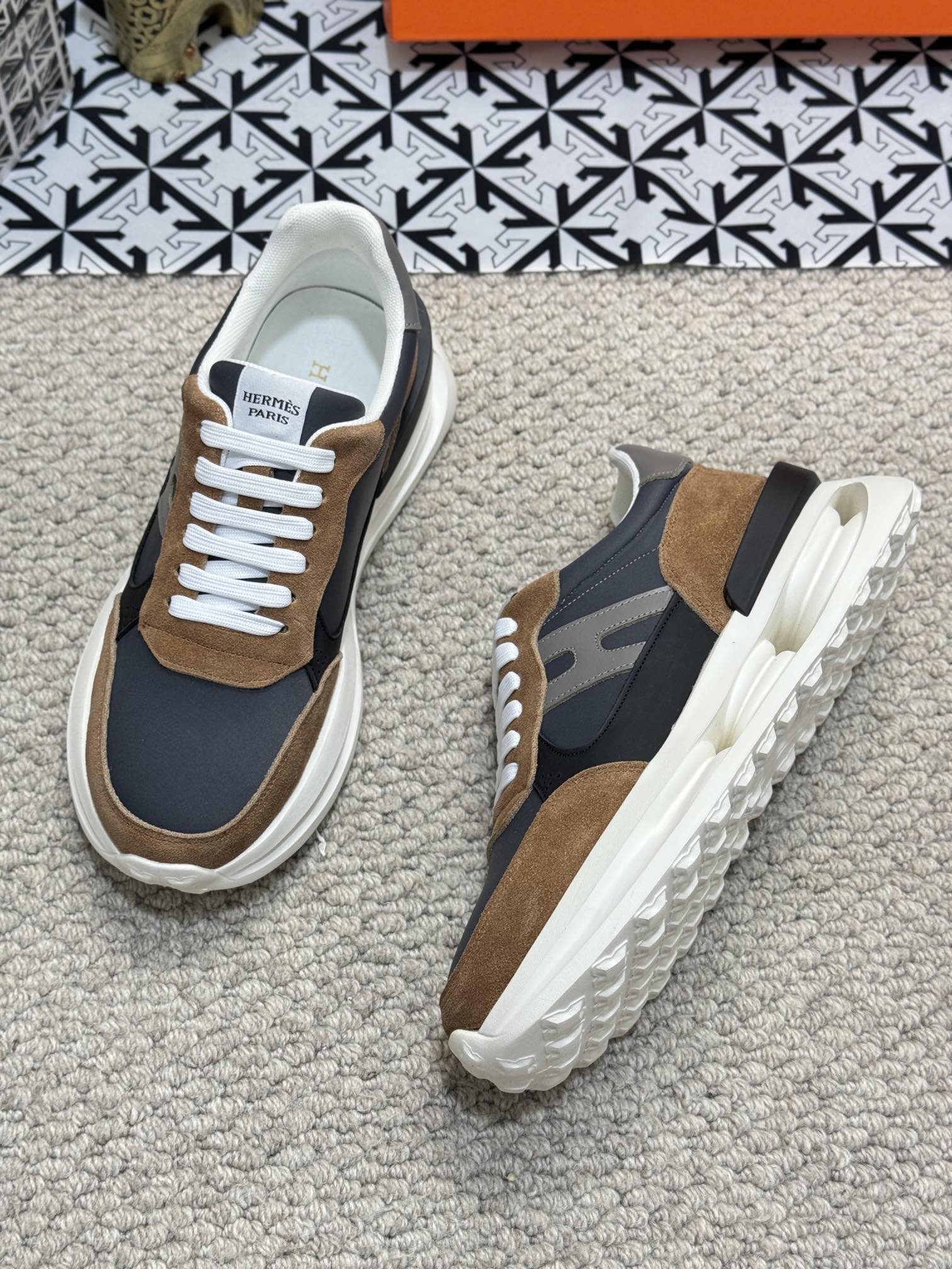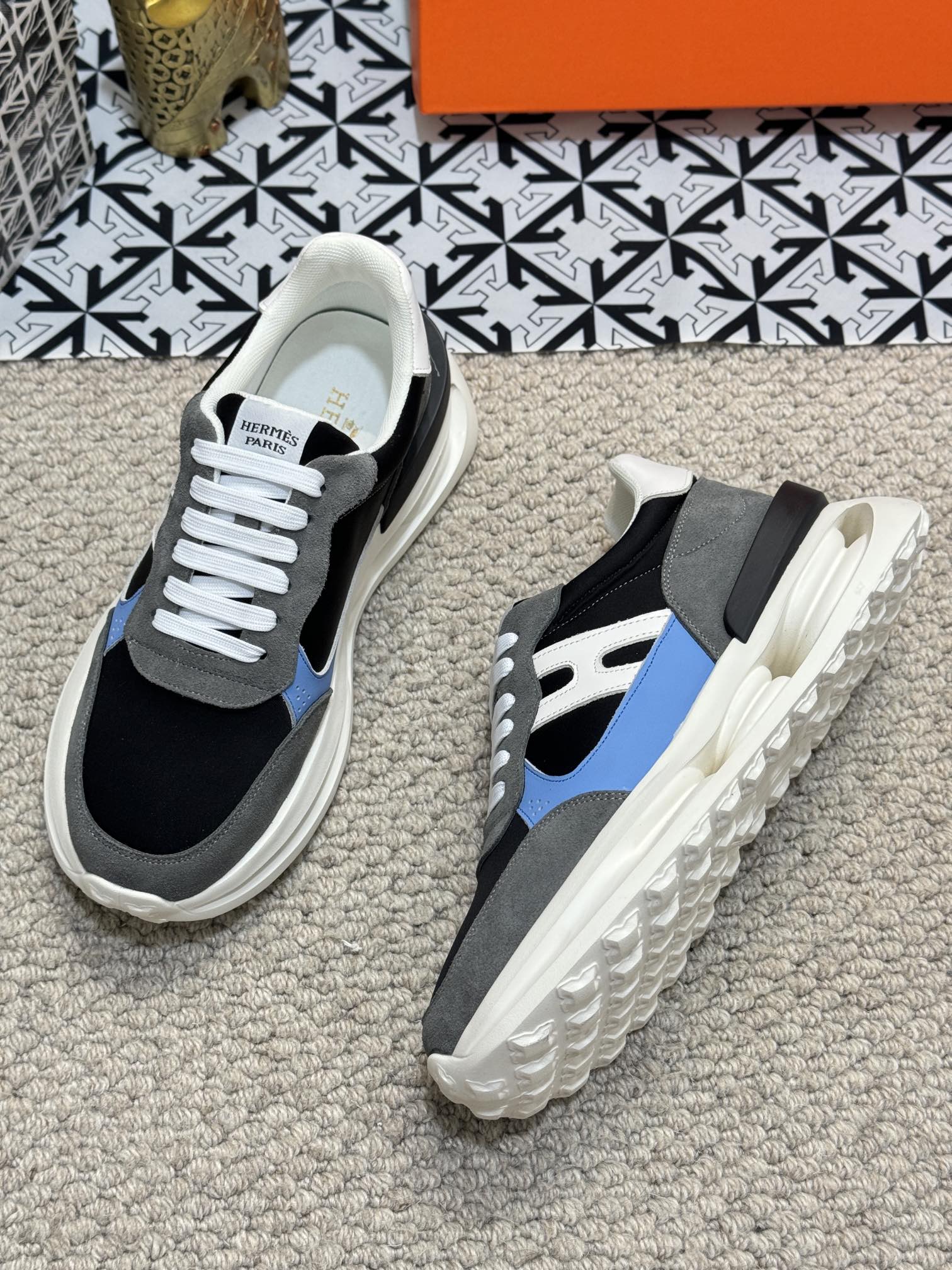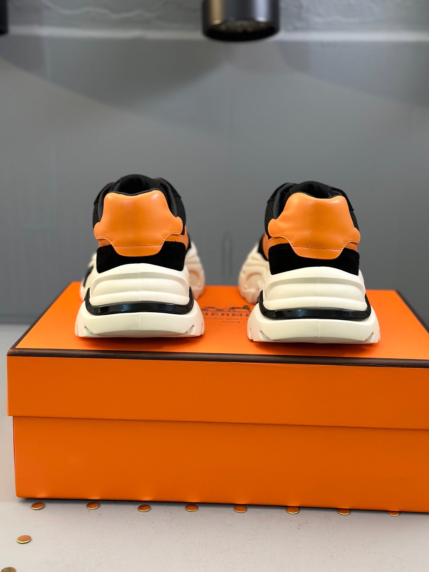 HM Men's Sneaker Black Orange Mesh Calfskin 541264