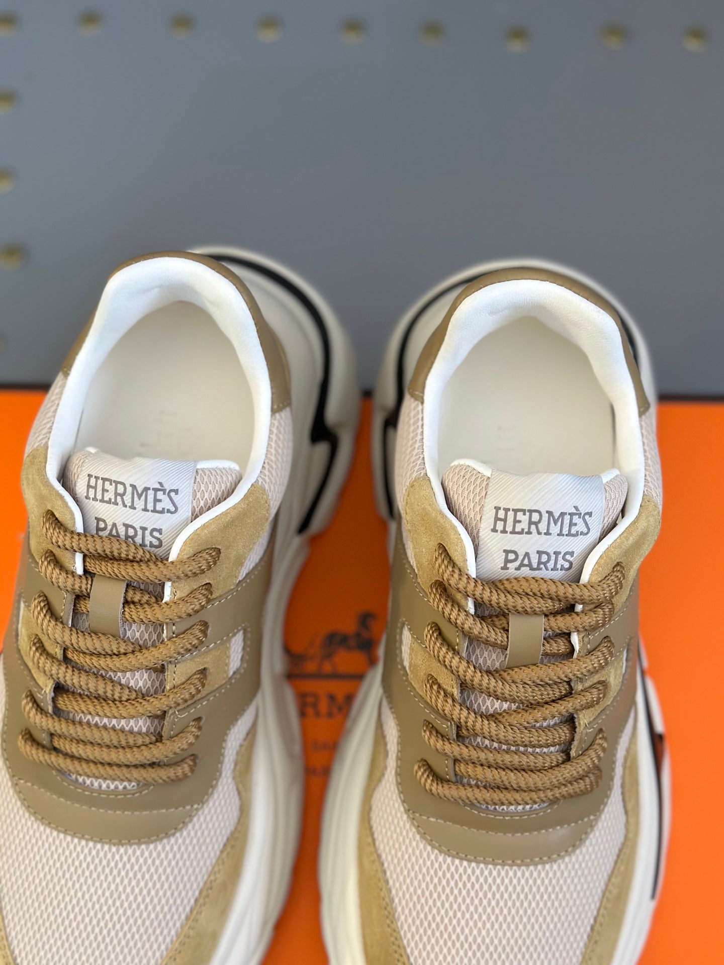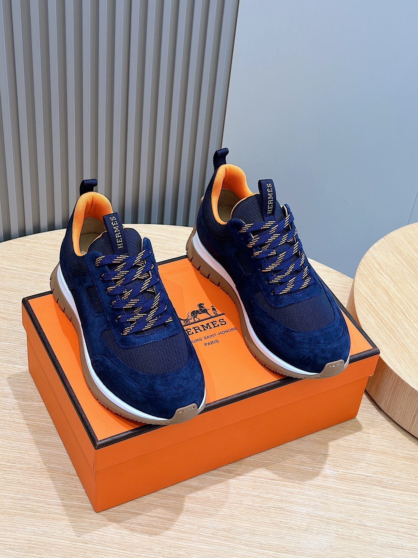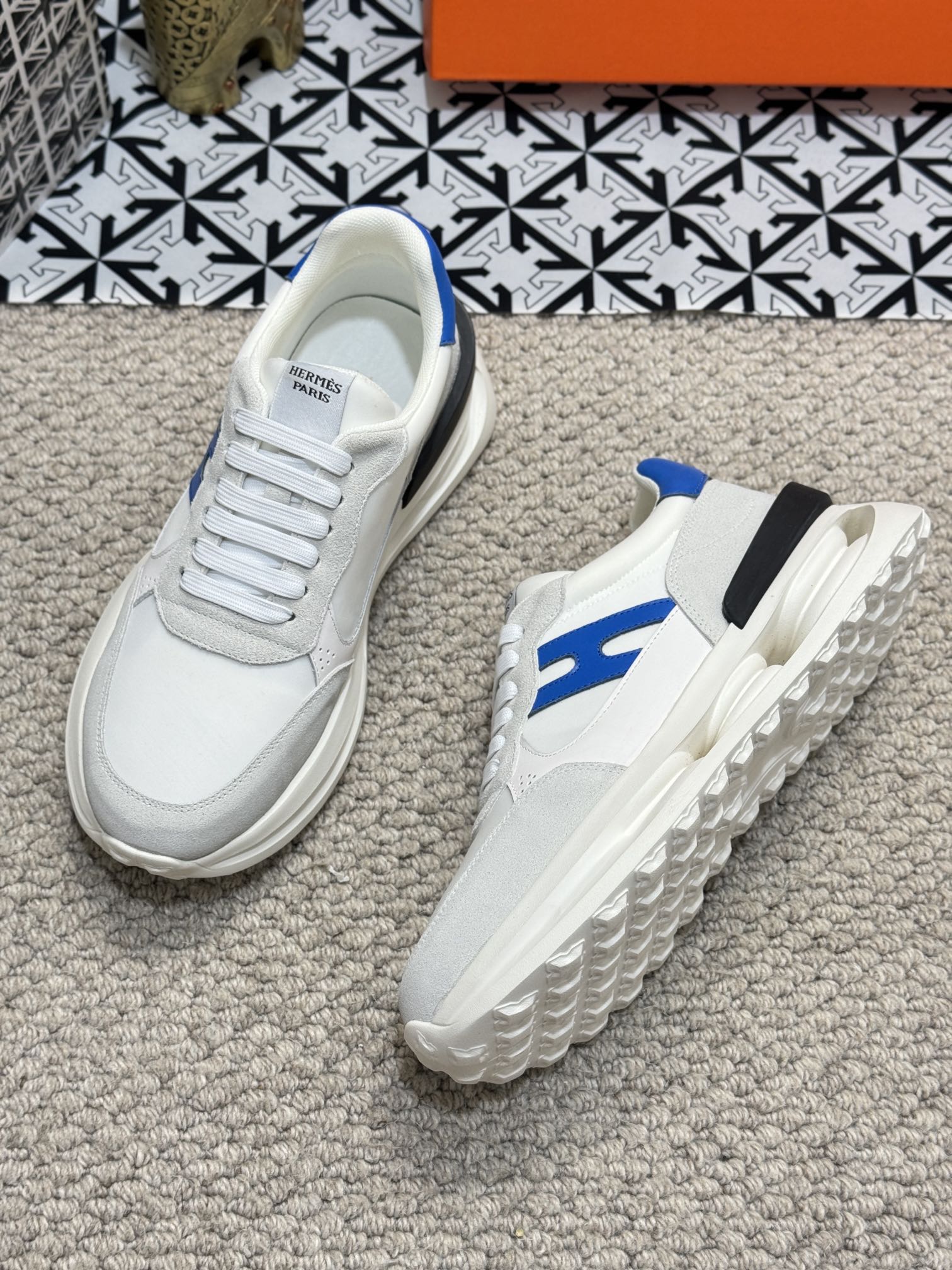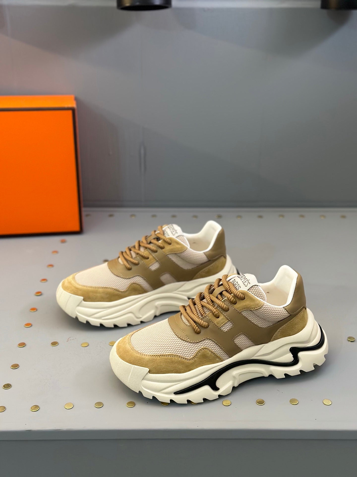 HM Men's Sneaker Black Orange Mesh Calfskin 541264