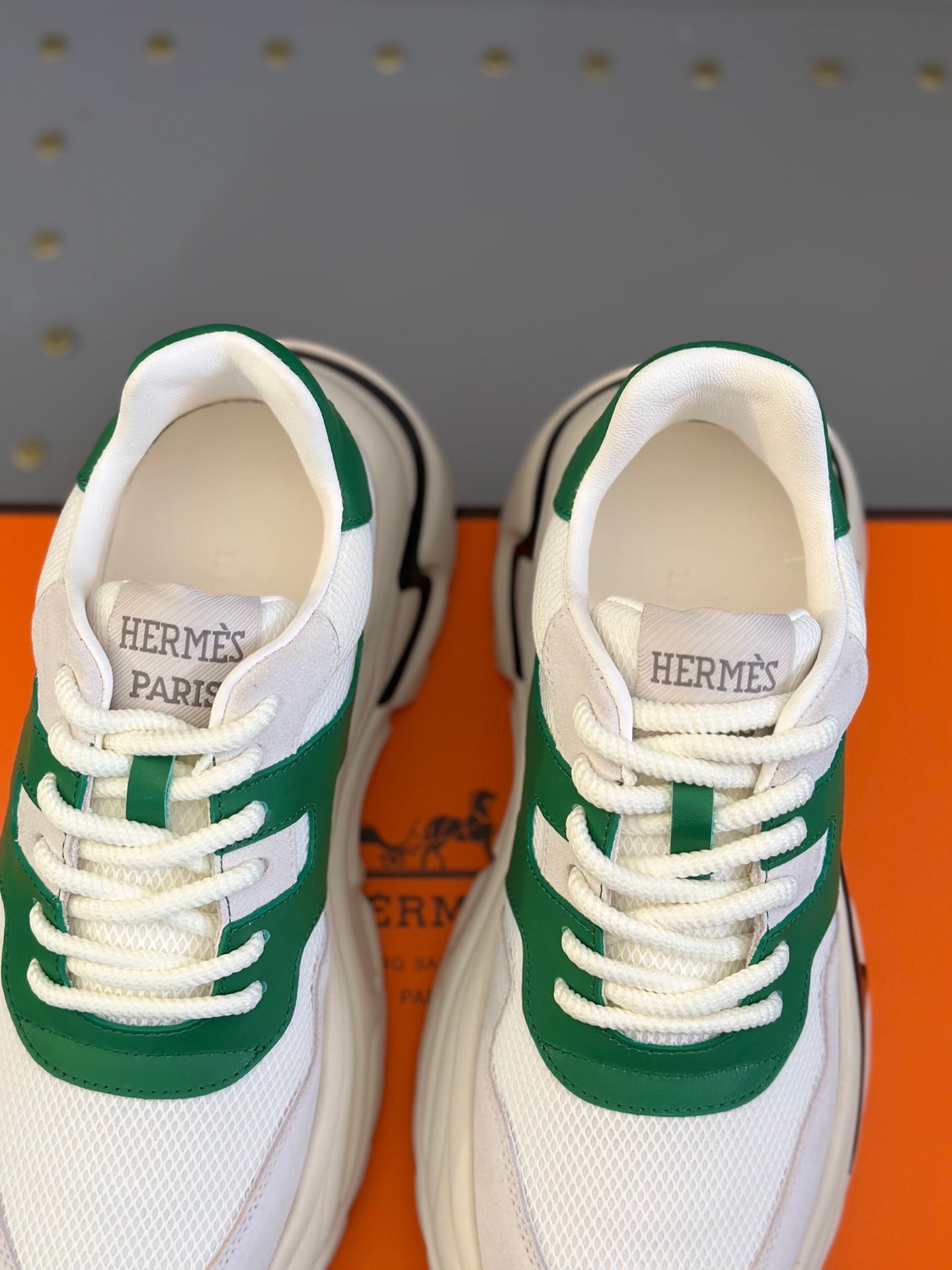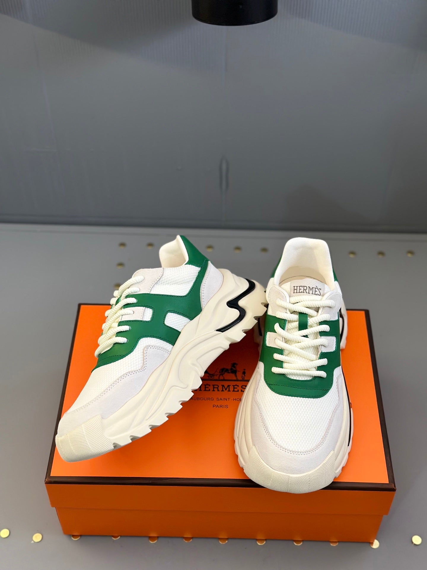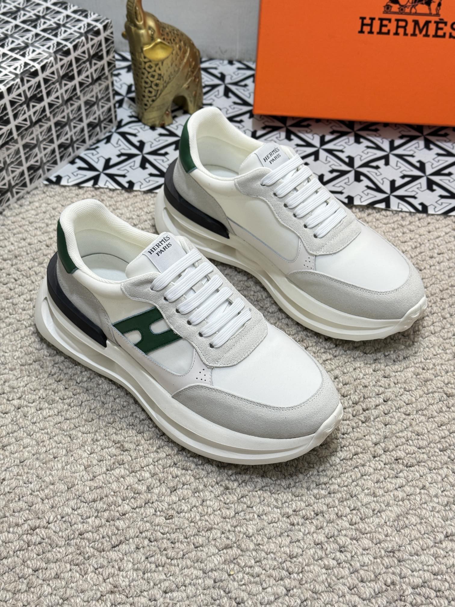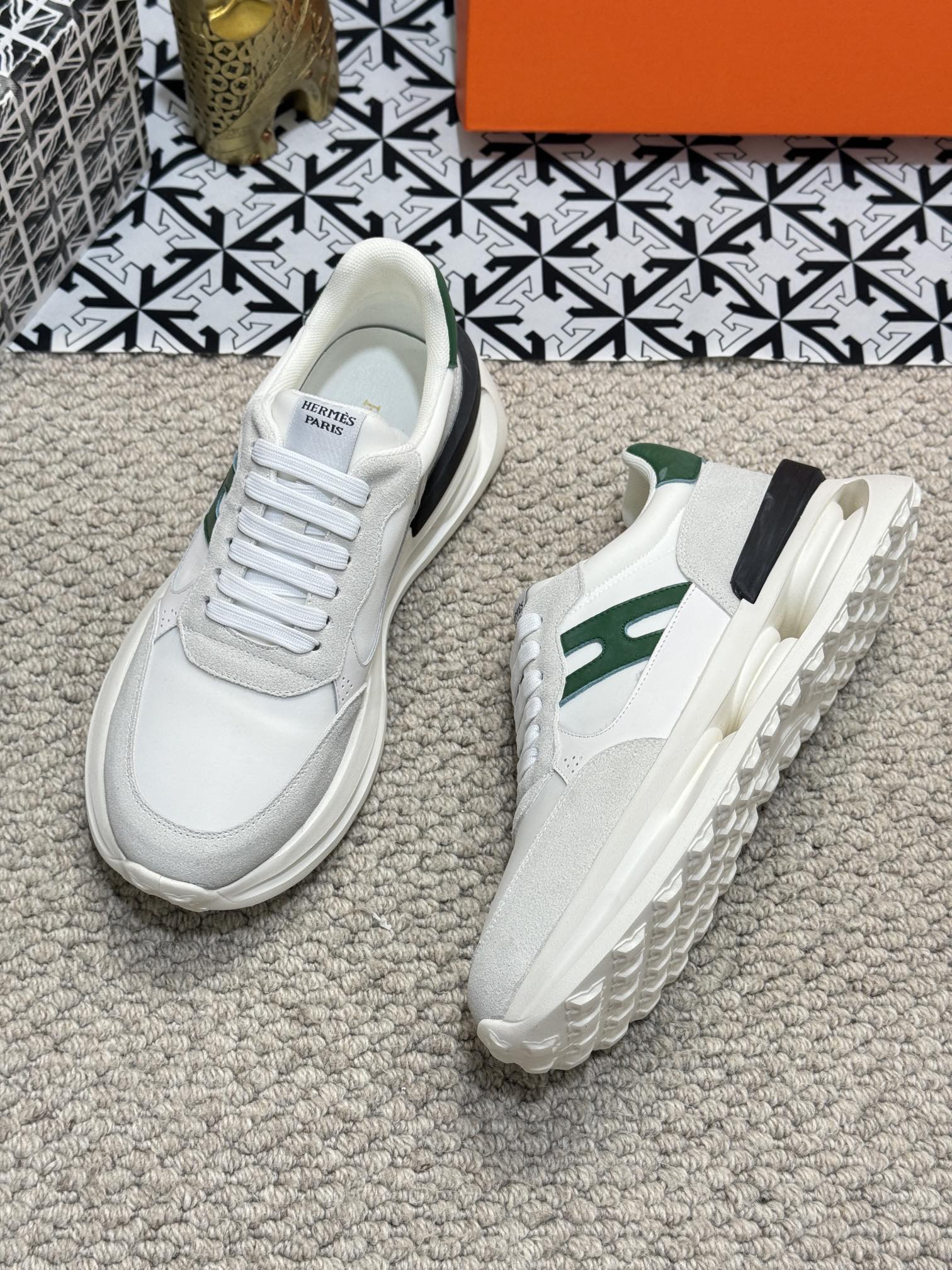 HM Men's Sneaker White Green Mesh Calfskin 541263