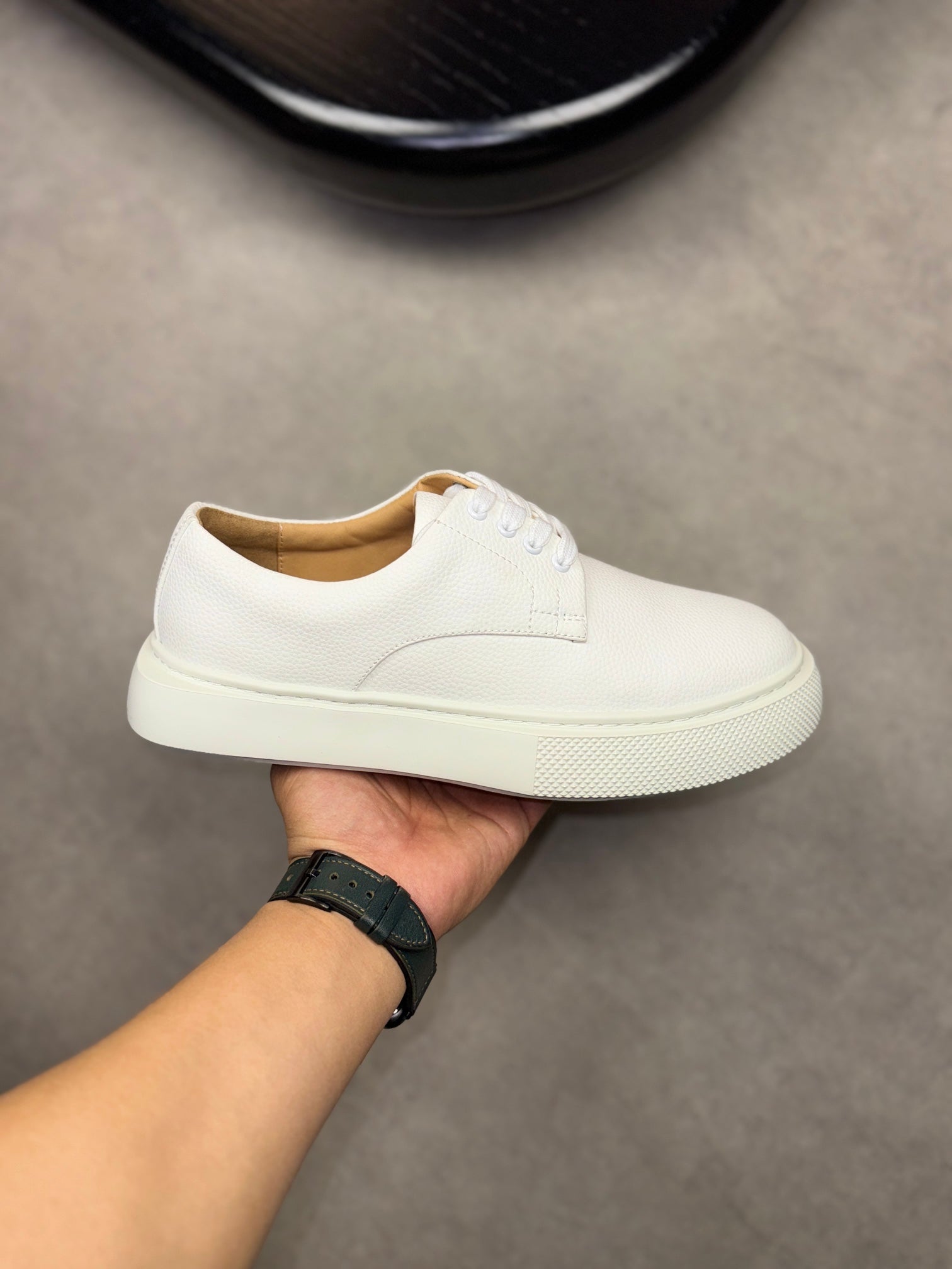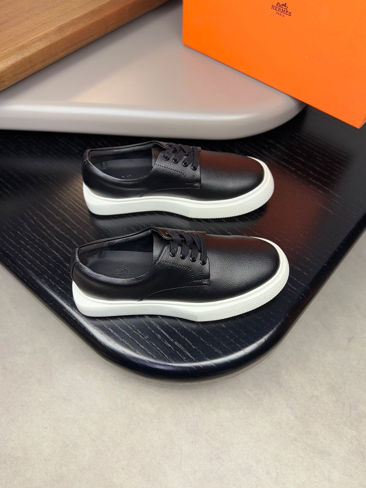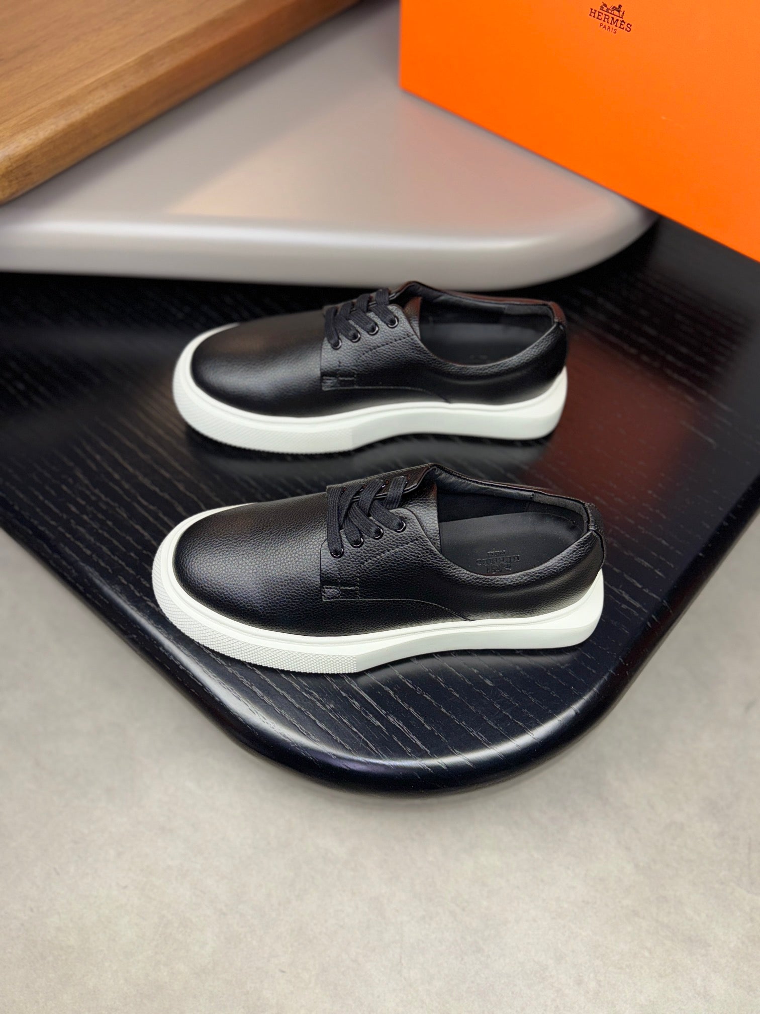 HM Men's 25 Sneaker White Black Cowhide 465307