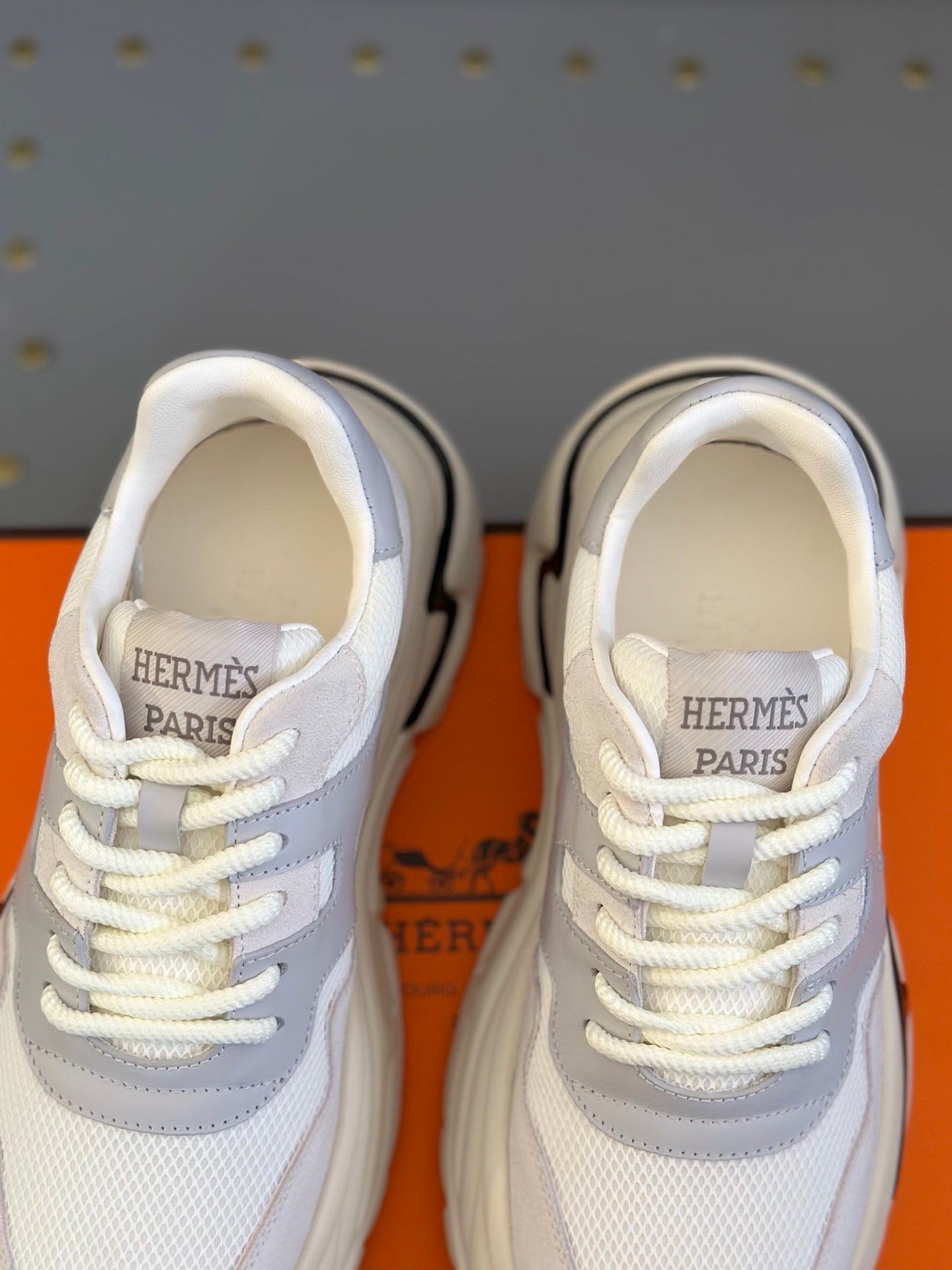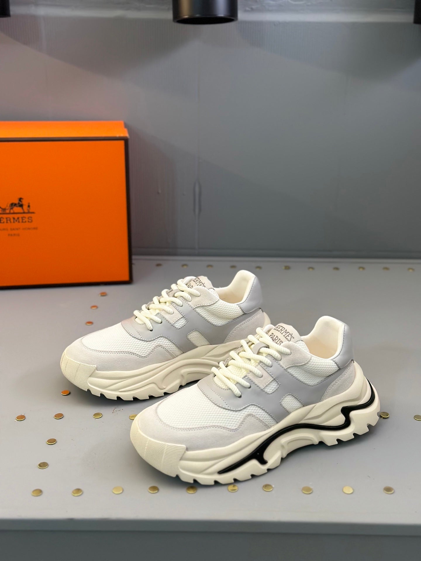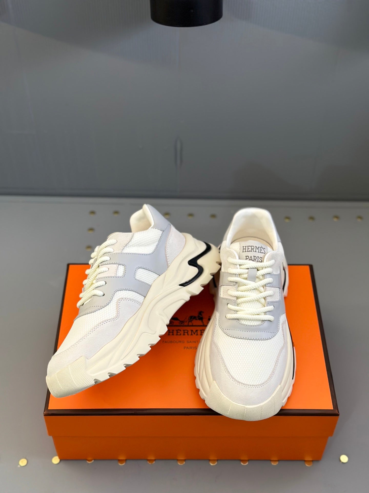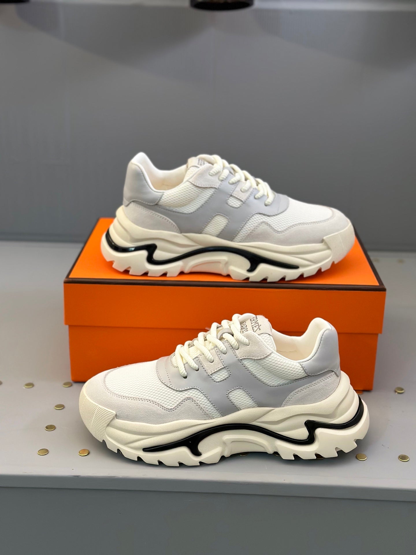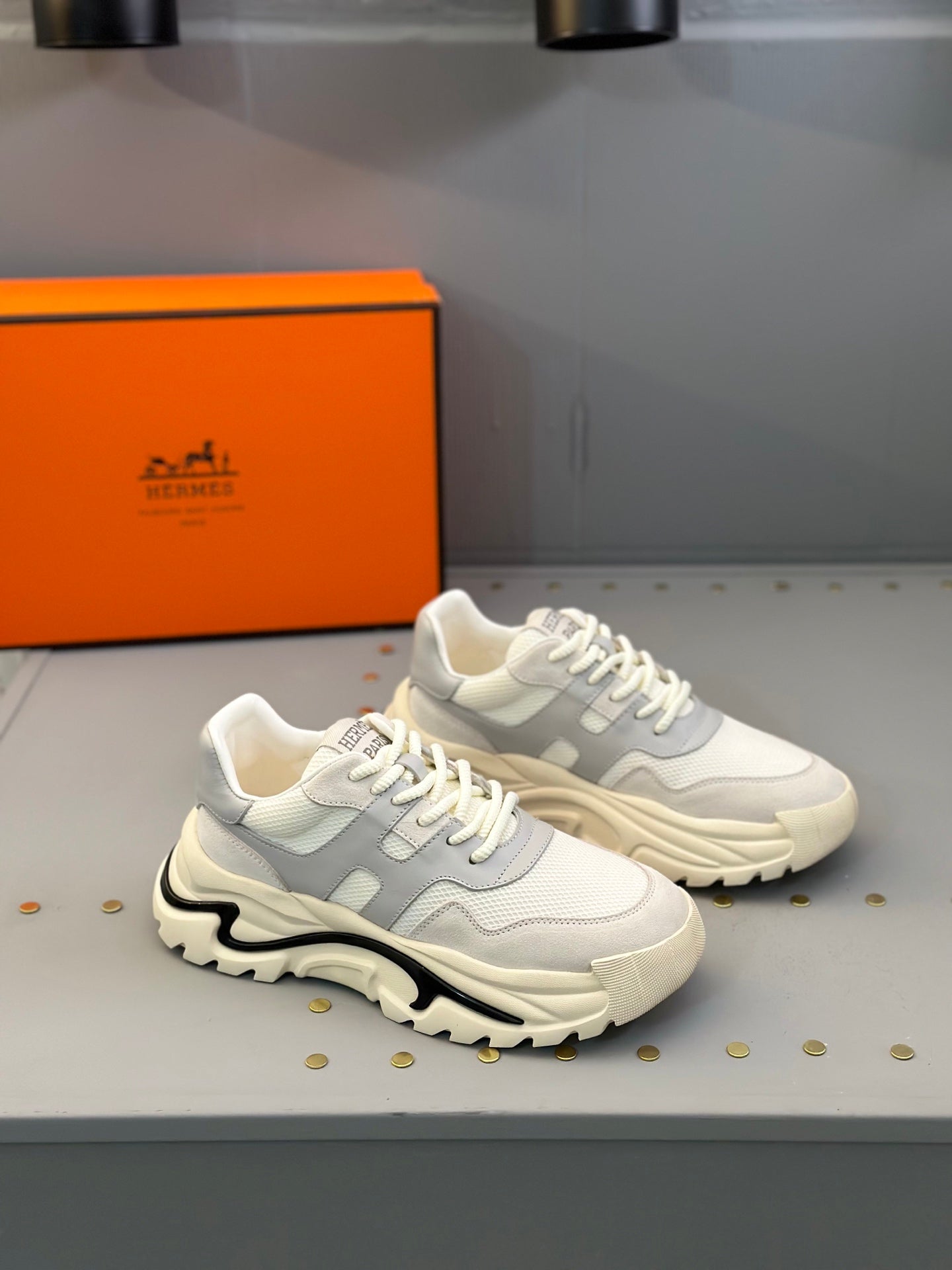 HM Men's Sneaker White Grey Mesh Calfskin 541262