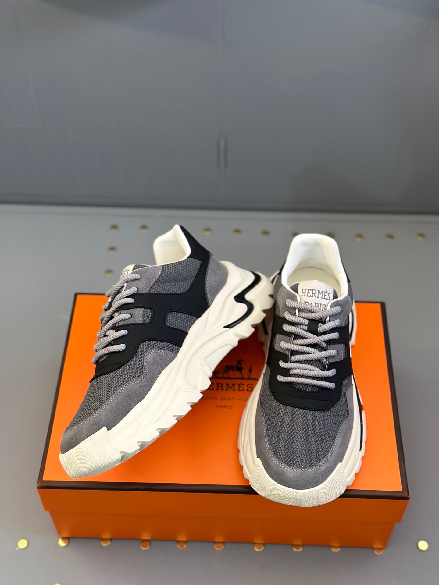 HM Men's Sneaker Grey Black Mesh Calfskin 541267