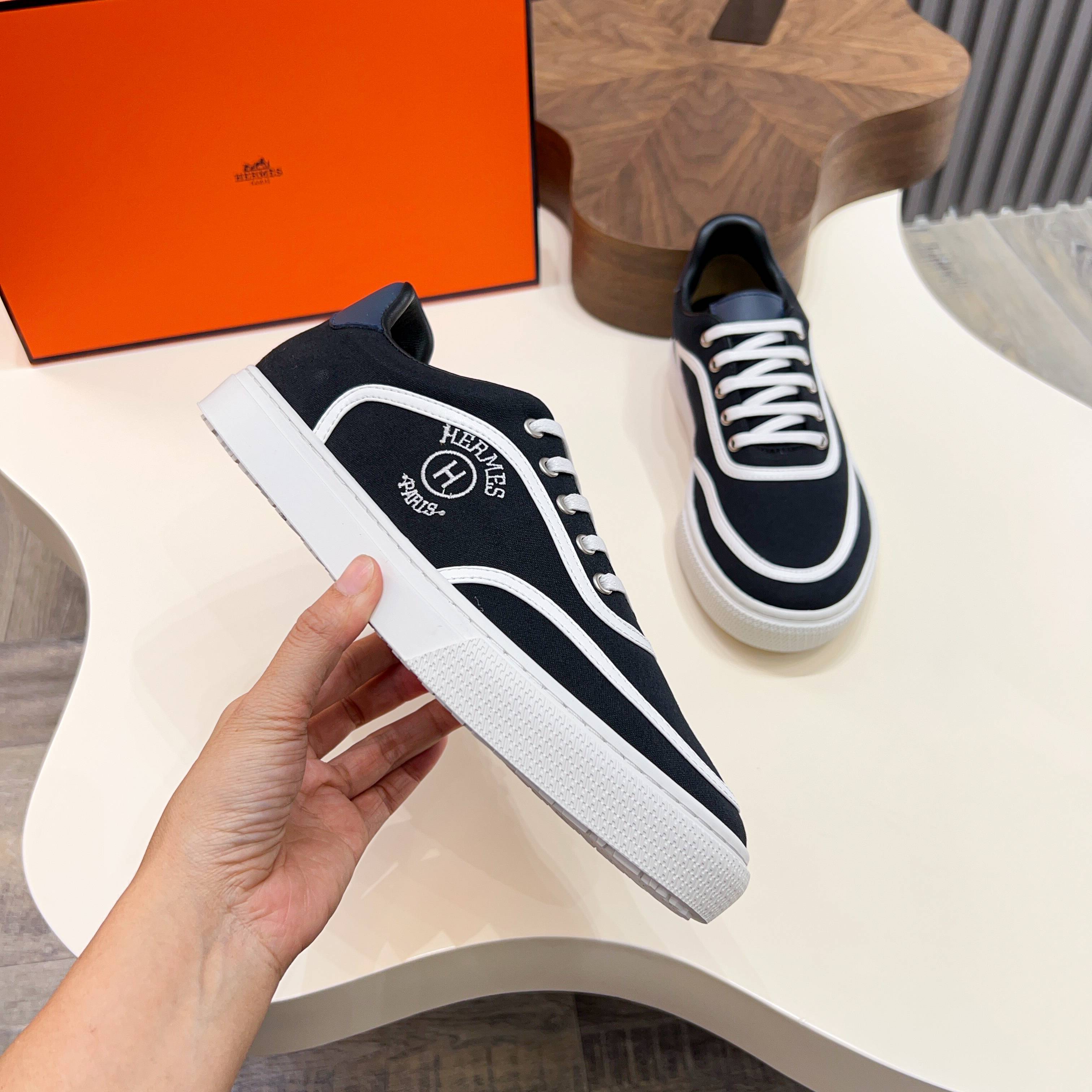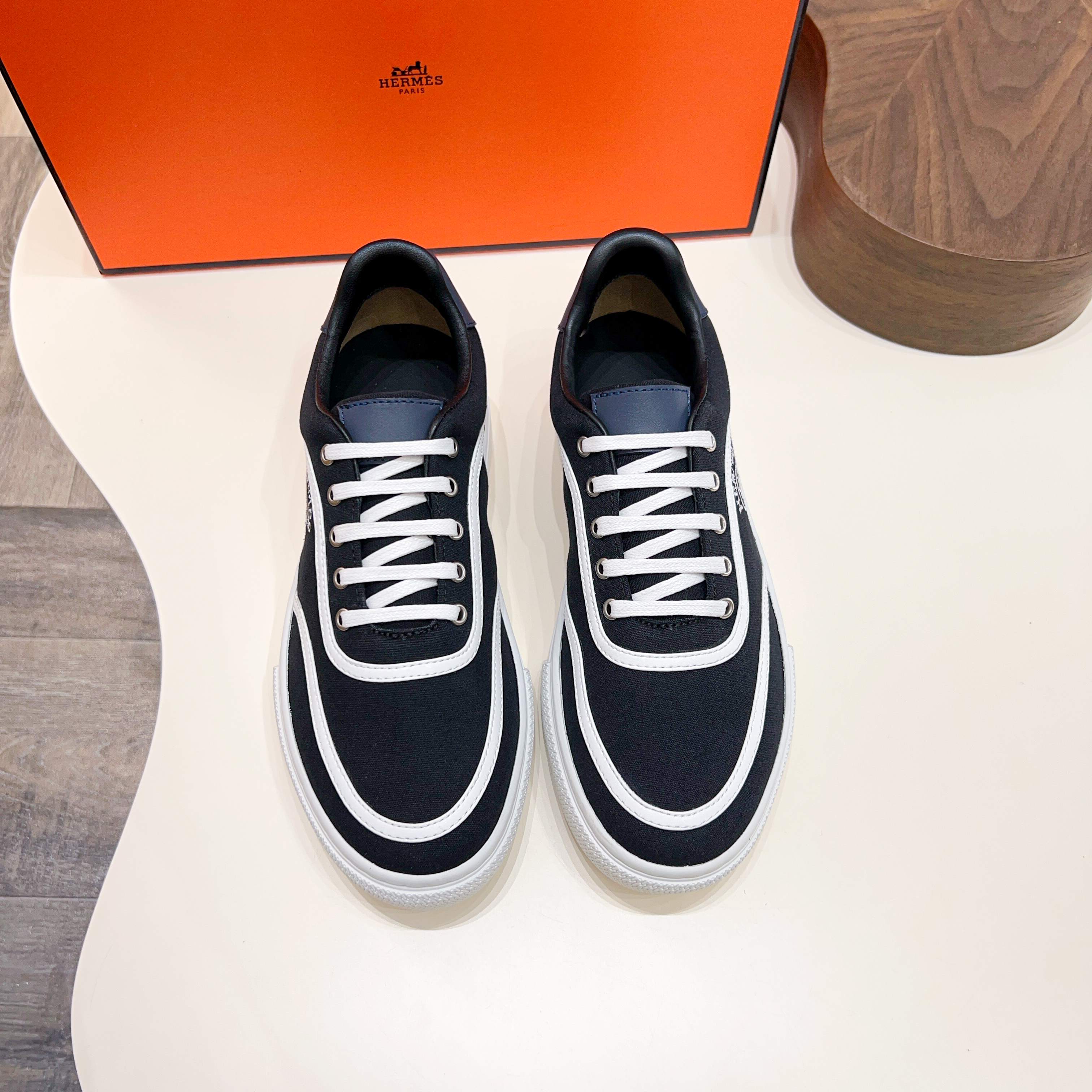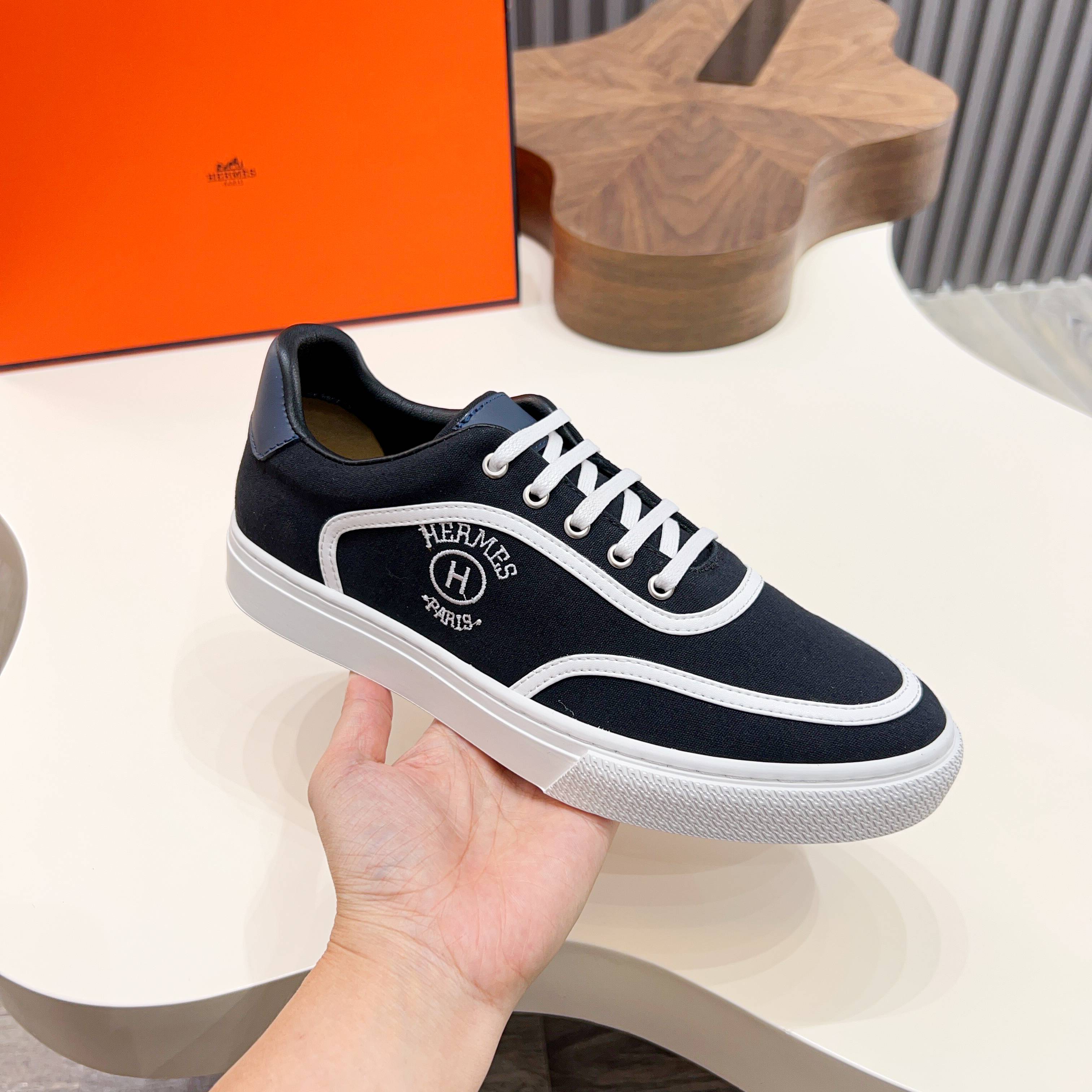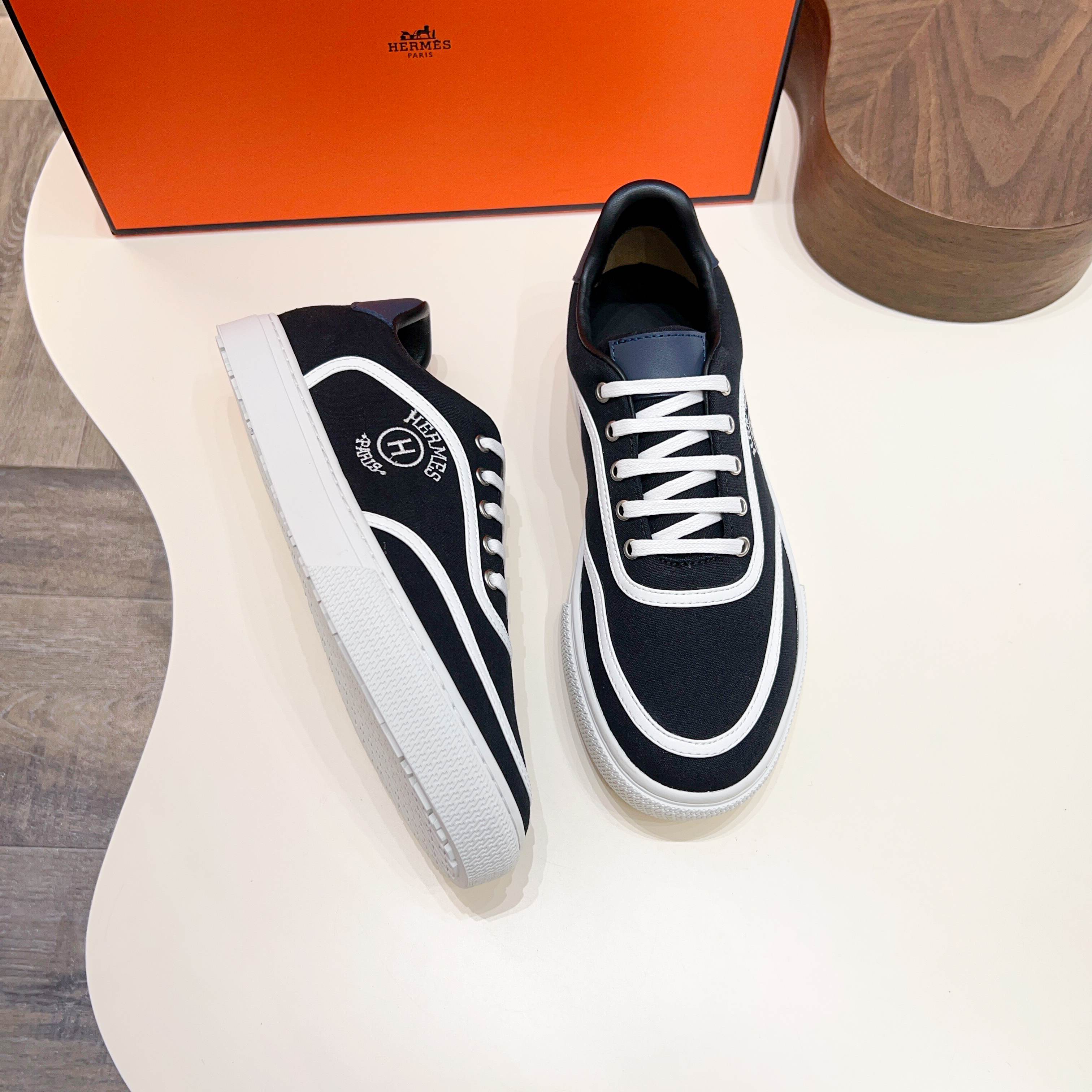 HM Men's Bouncing Sneaker Black White Calfskin Fabric 754131