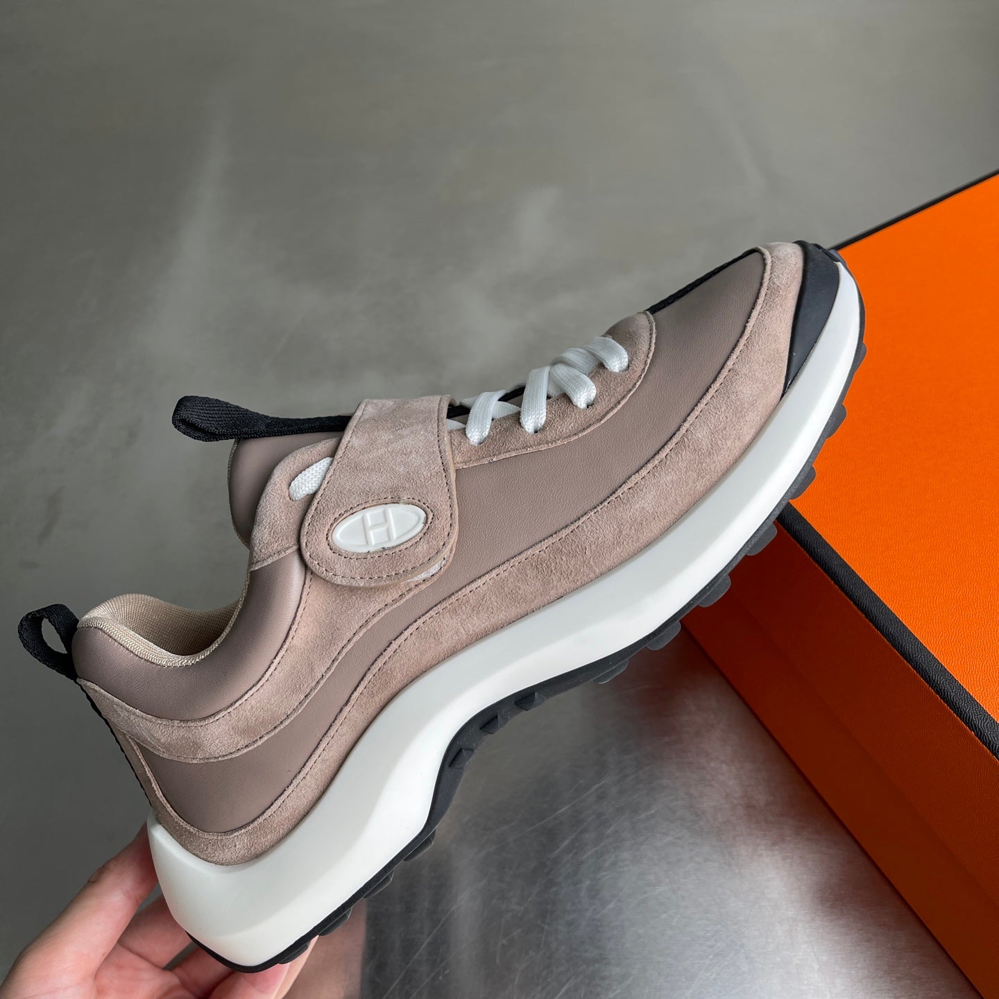 HM Men's Loop Sneaker Beige Calfskin Suede 741459