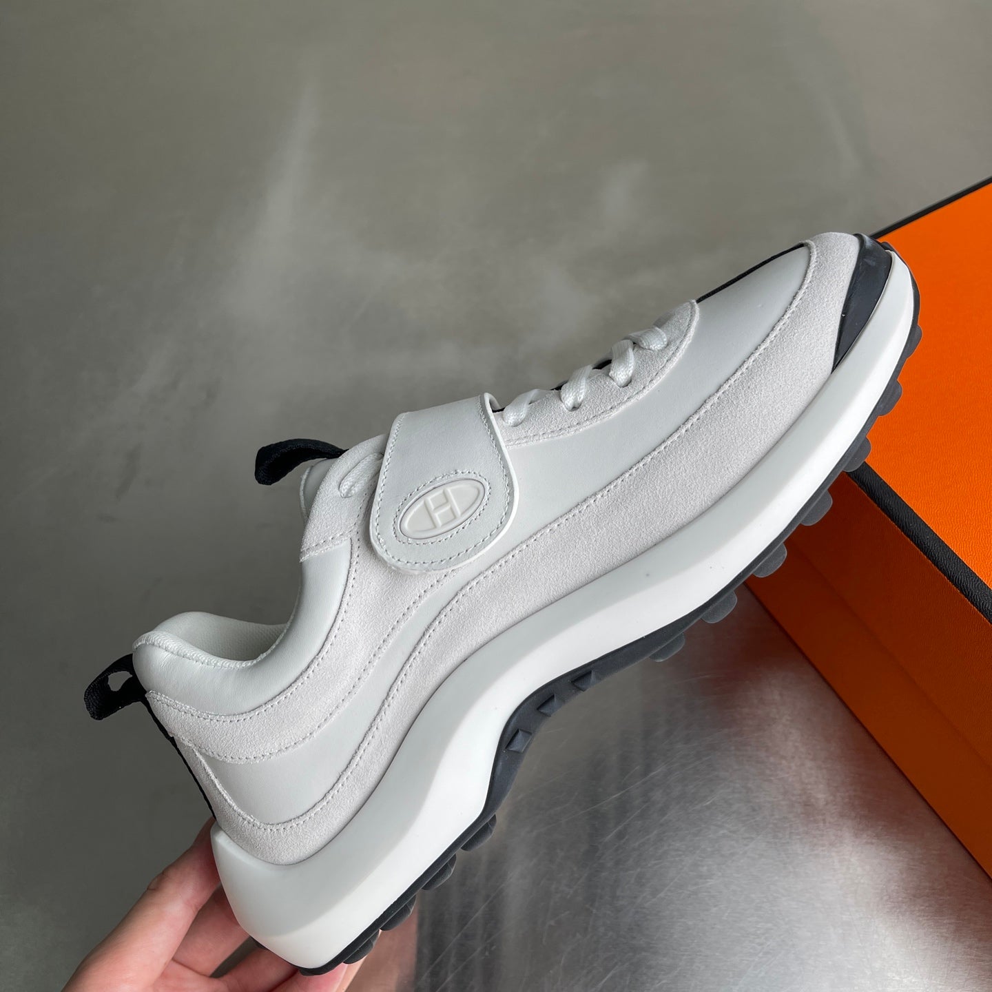 HM Men's Loop Sneaker White Calfskin Suede 741464