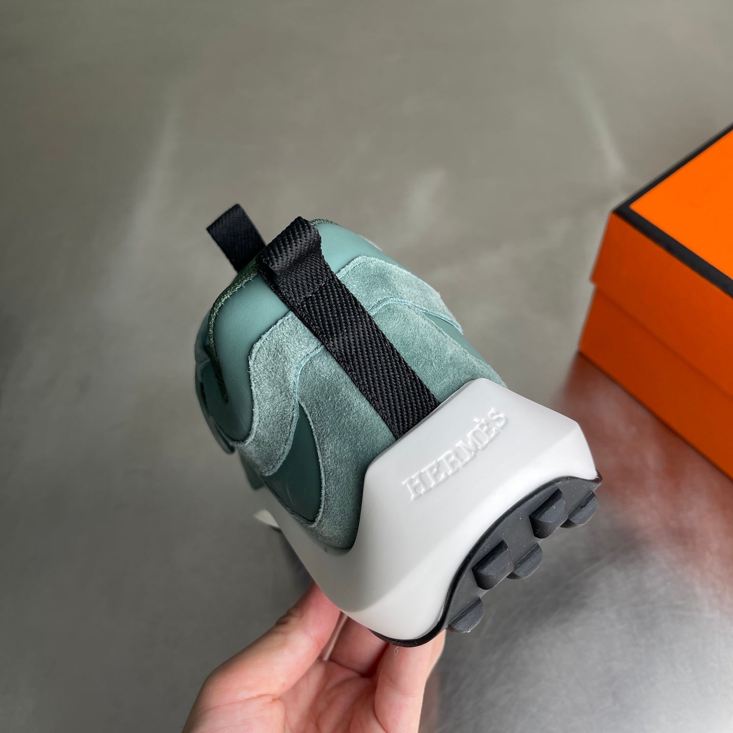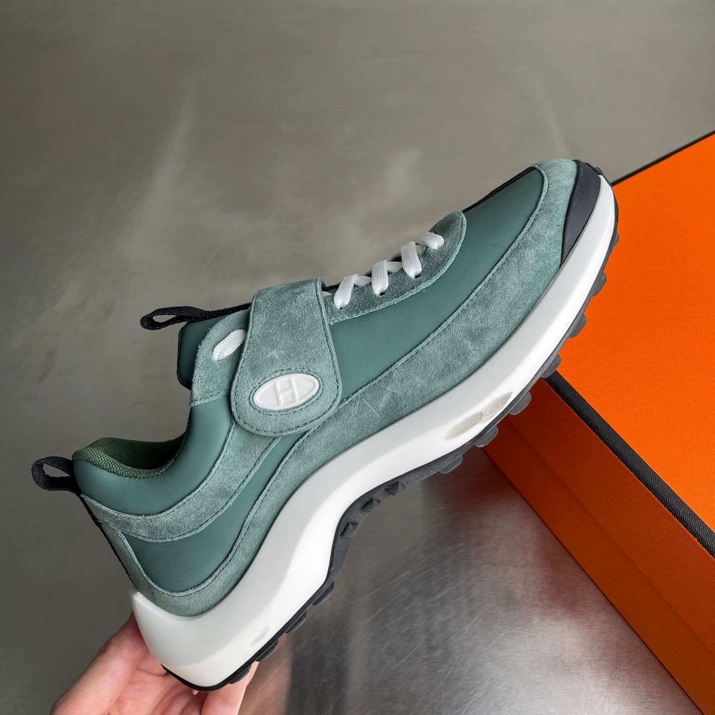 HM Men's Loop Sneaker Light Green Calfskin Suede 741465