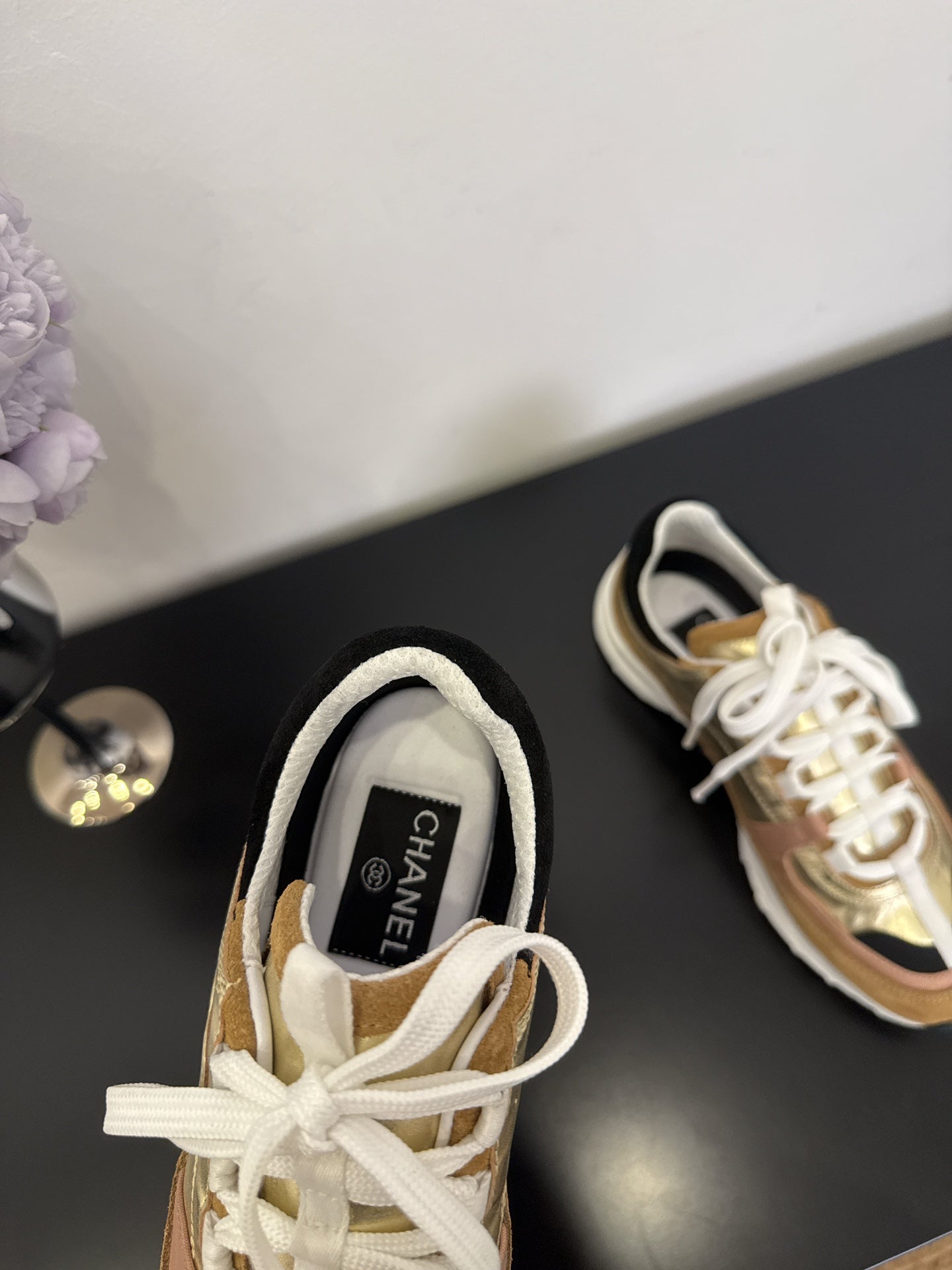 CC SNEAKER IN GOLD CALFSKIN AND SUEDE