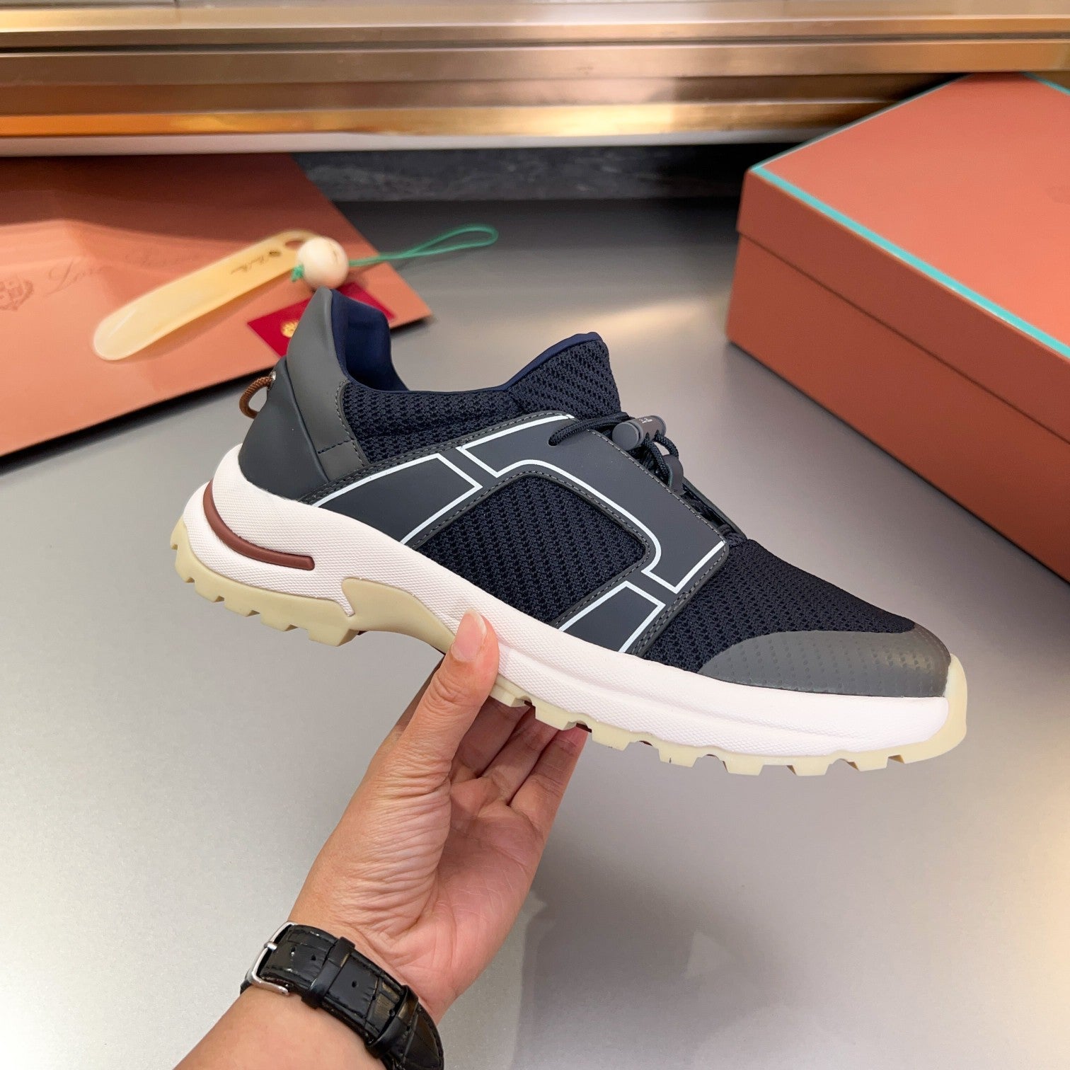 LP BRUNELLO SNEAKERS MULTI - CHARCOAL AND NAVY MESH CALFSKIN